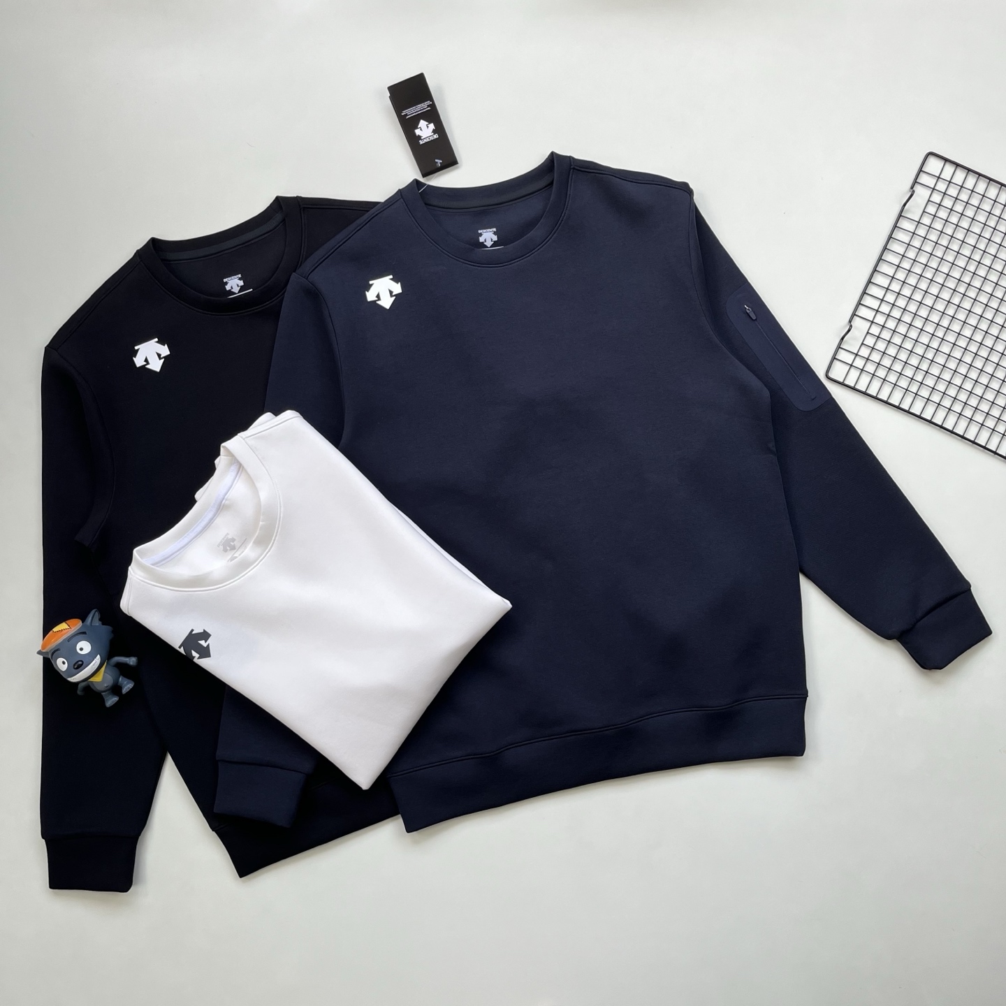 The Descente high-end air cotton crew neck sweatshirt is crafted from newly developed 60-count 340g Feilo cotton fabric, offering exceptional softness and comfort with a superior drape. Its exquisite, simple design is suitable for both men and women, making it an excellent choice for personal use or as a high-quality gift.
