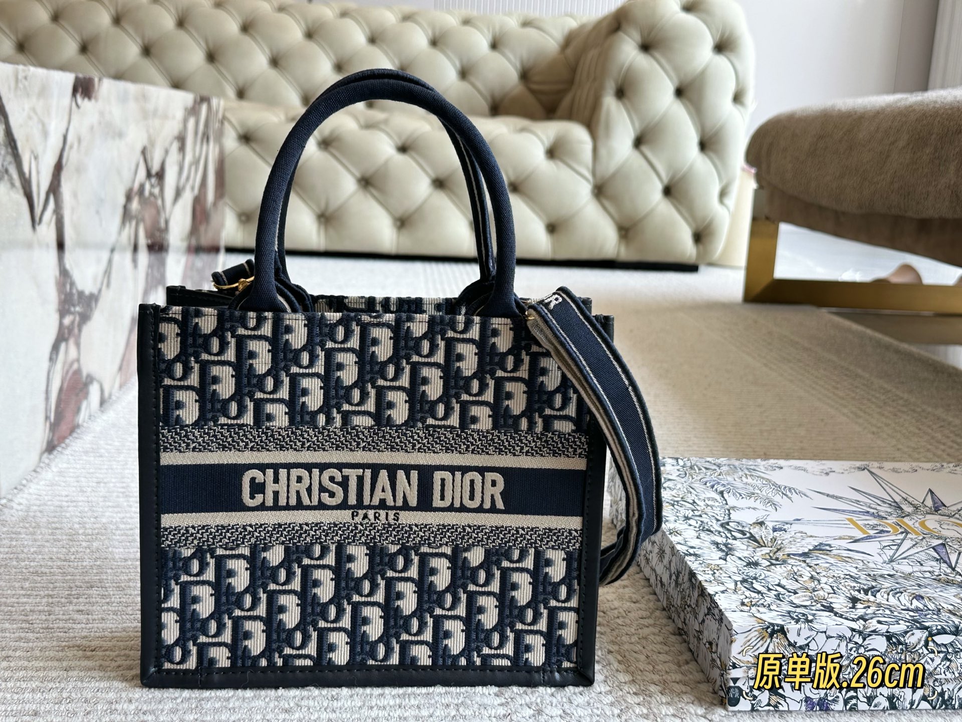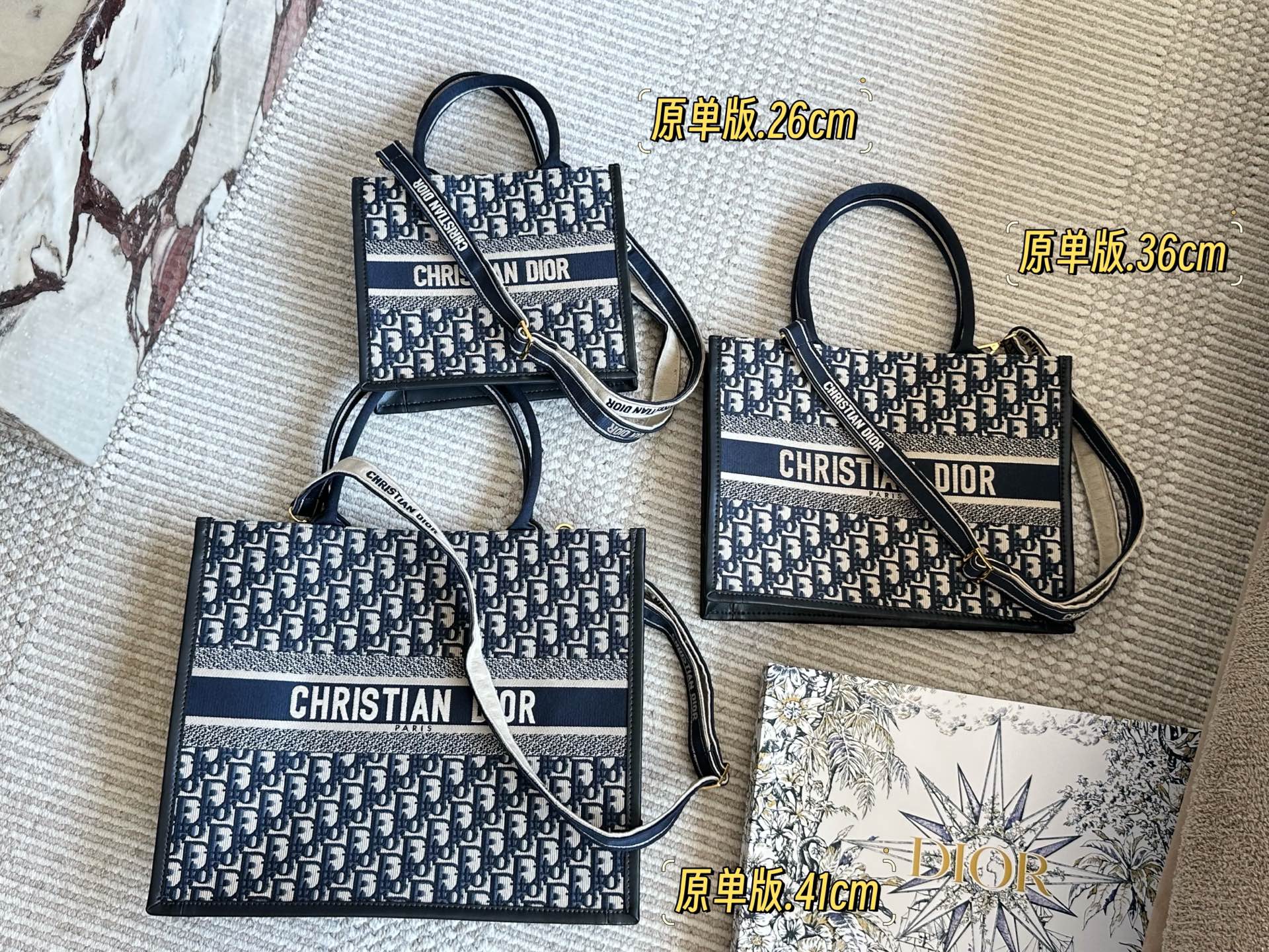 The Dior tote bag is a stylish and functional accessory. Features exquisite embroidery and is perfect for everyday use. Size: 26.5*21cm, 36*28cm, 41*35cm.