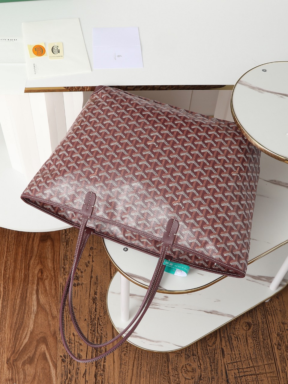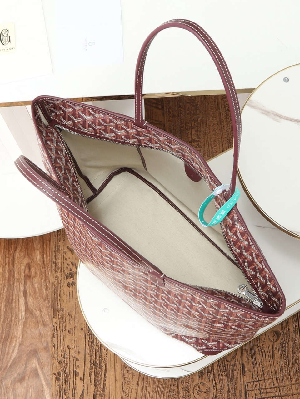 I absolutely love my Goyard Artois tote! The burgundy color is so rich and elegant, and the quality is outstanding. The zip closure gives me peace of mind when I'm traveling, and the detachable pouch is perfect for organizing my essentials. Highly recommend!
