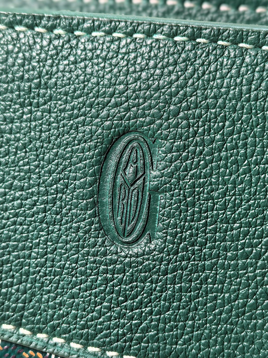 I absolutely love this bag! The green color is so unique and the Goyardine canvas is beautiful. It's the perfect size for my everyday essentials and I love that it has a zipper closure for security.