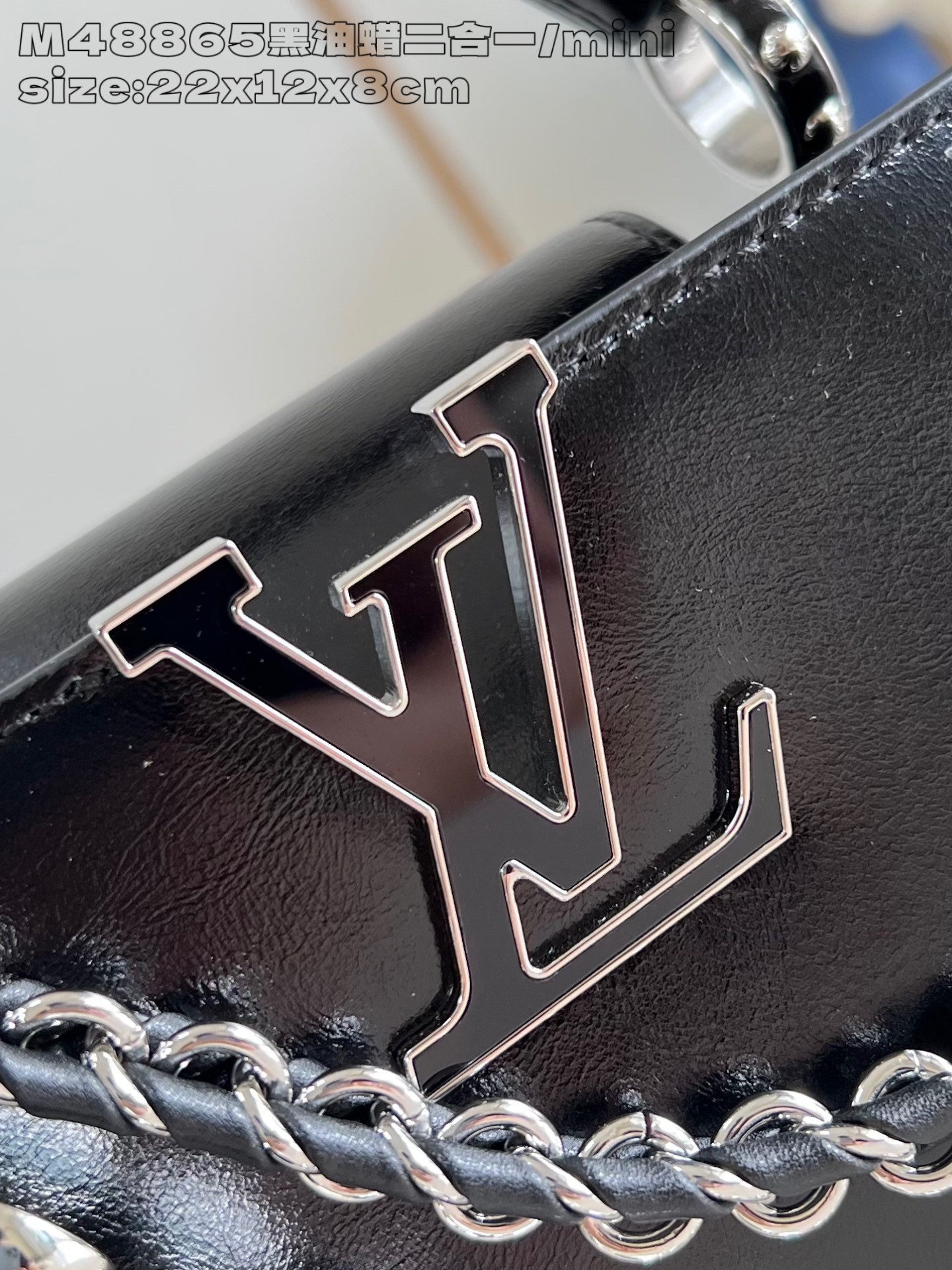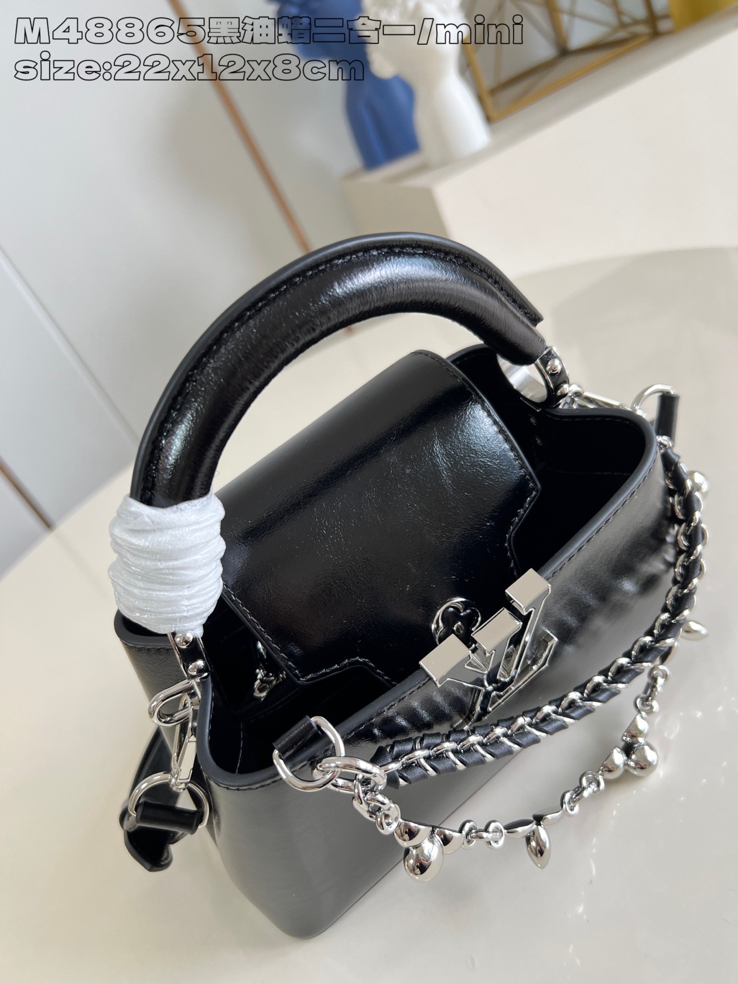 I am absolutely in love with this Capucines mini bag! It's the perfect size for a night out, and the quality is outstanding. The chain detail adds a touch of elegance. Highly recommend!