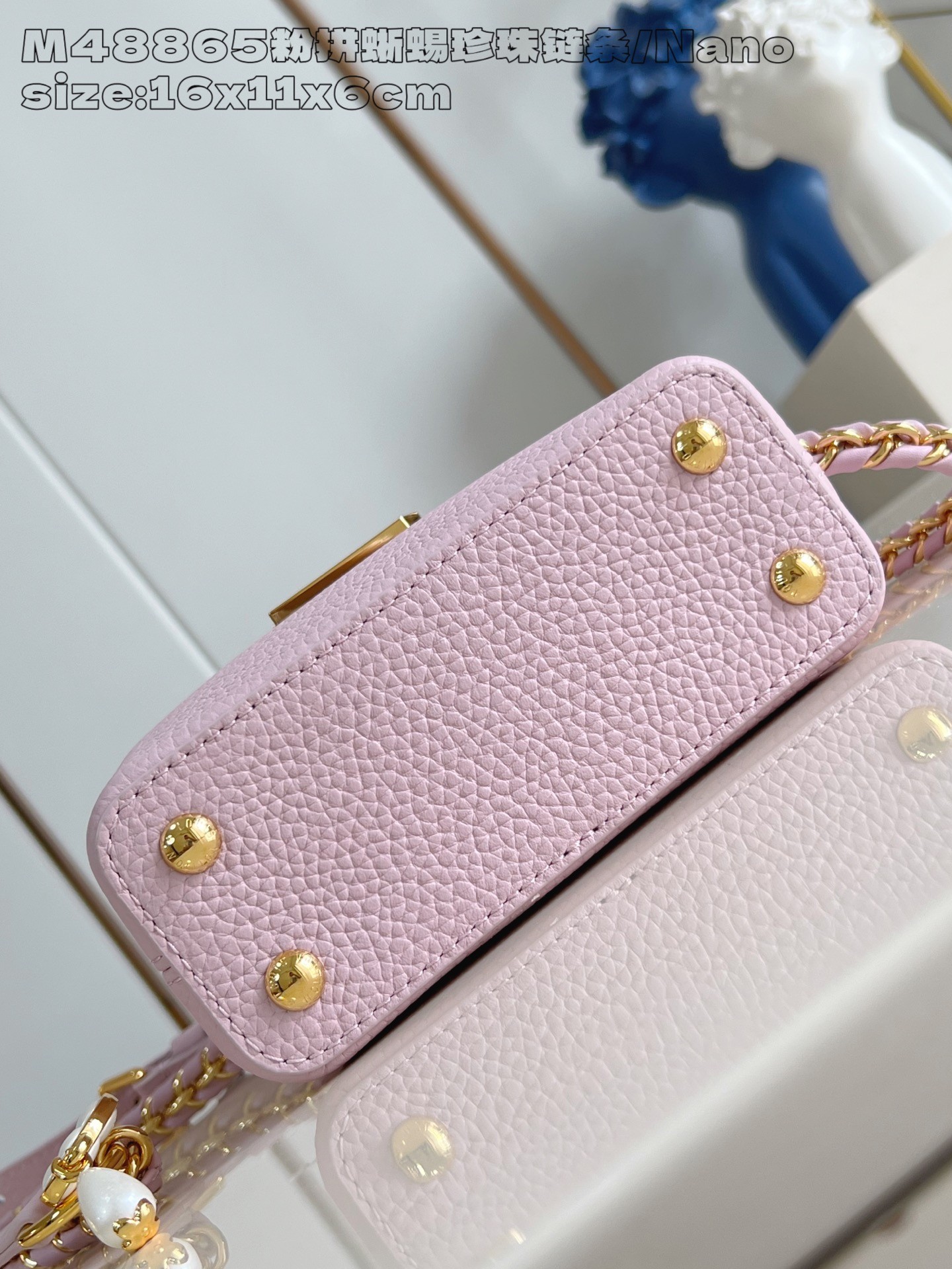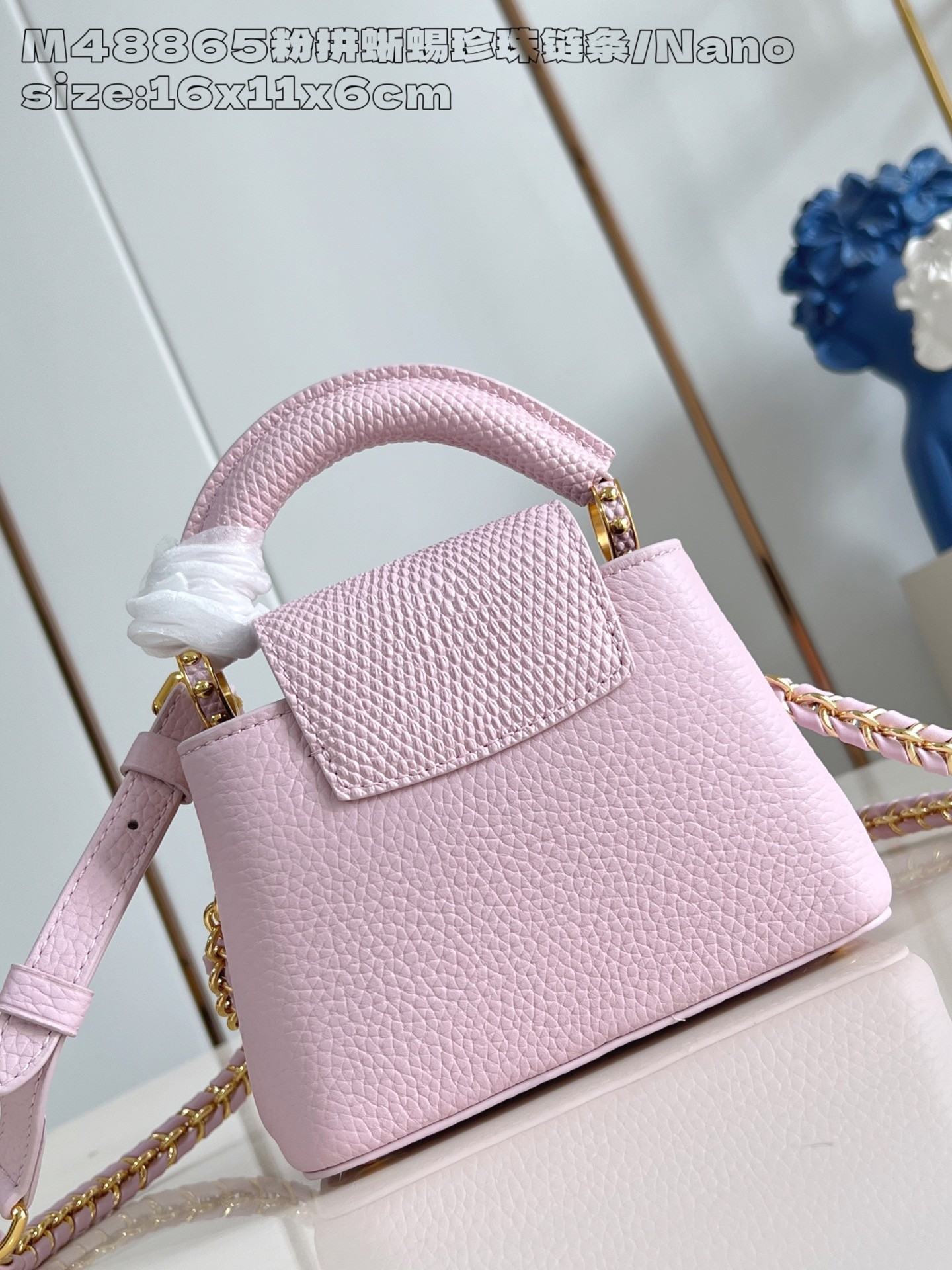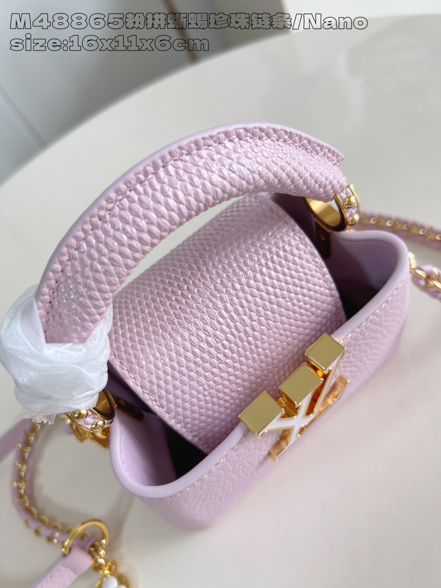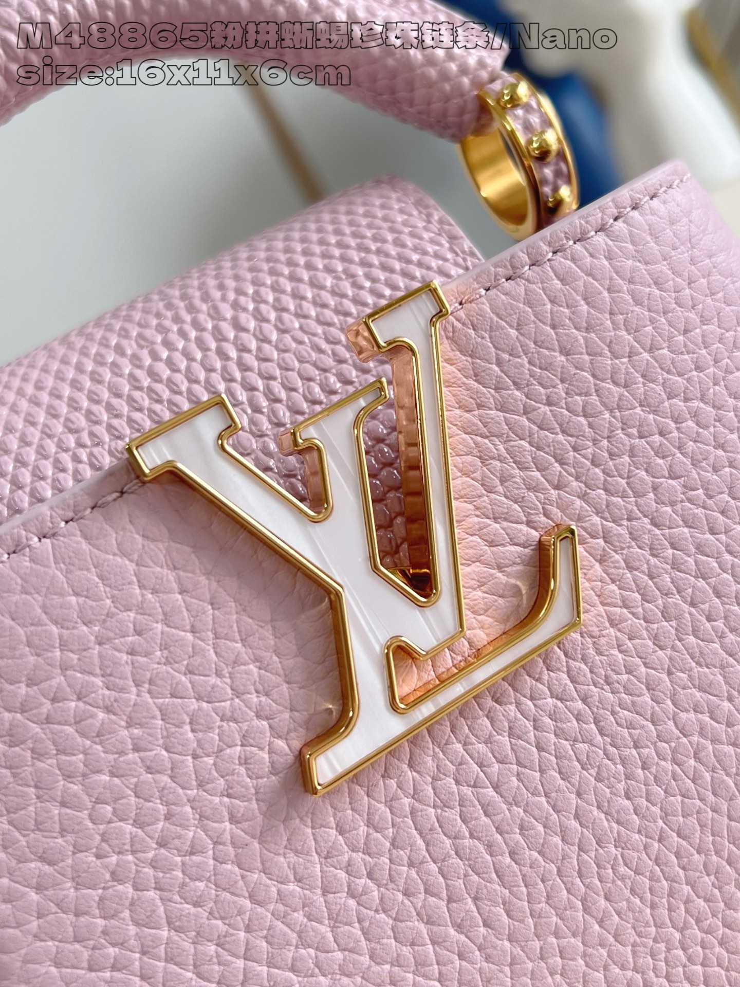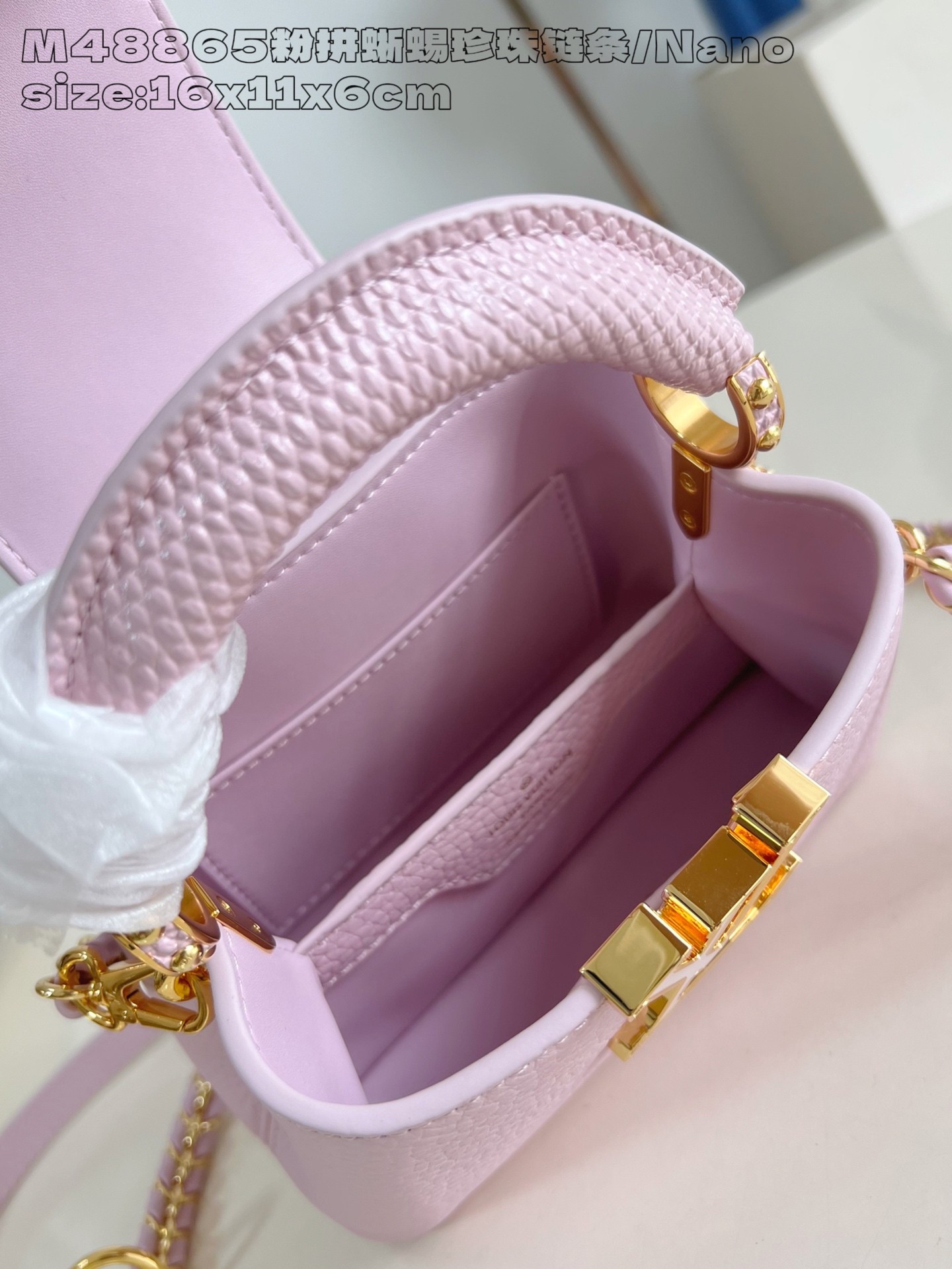 This exquisite Capucines Nano handbag is a testament to Louis Vuitton's dedication to luxury and craftsmanship. Perfectly sized for essentials, it adds a touch of elegance to any ensemble.