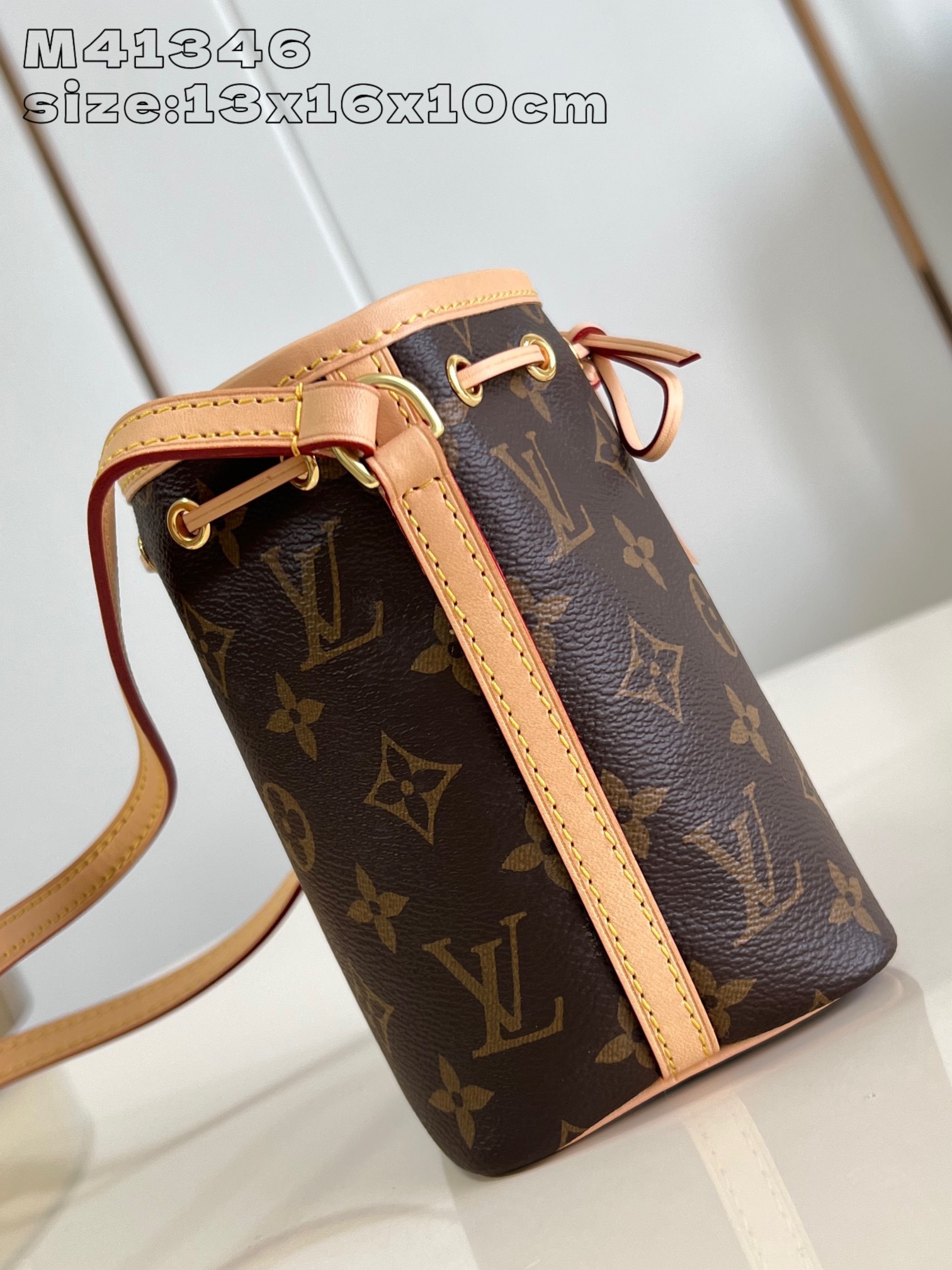 Tags: Everyday Essentials Bag, Louis Vuitton Nano Noe Bag, Mini Designer Handbag, Monogram Canvas Bucket Bag