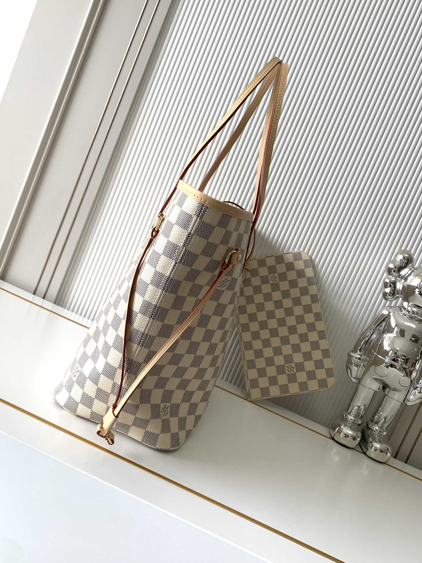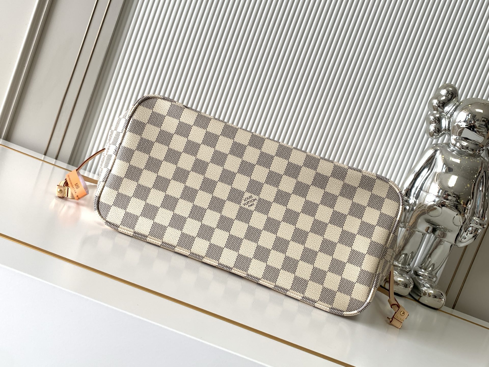 Louis Vuitton Neverfull MM Damier Azur Tote Bag, White/Grey, Medium