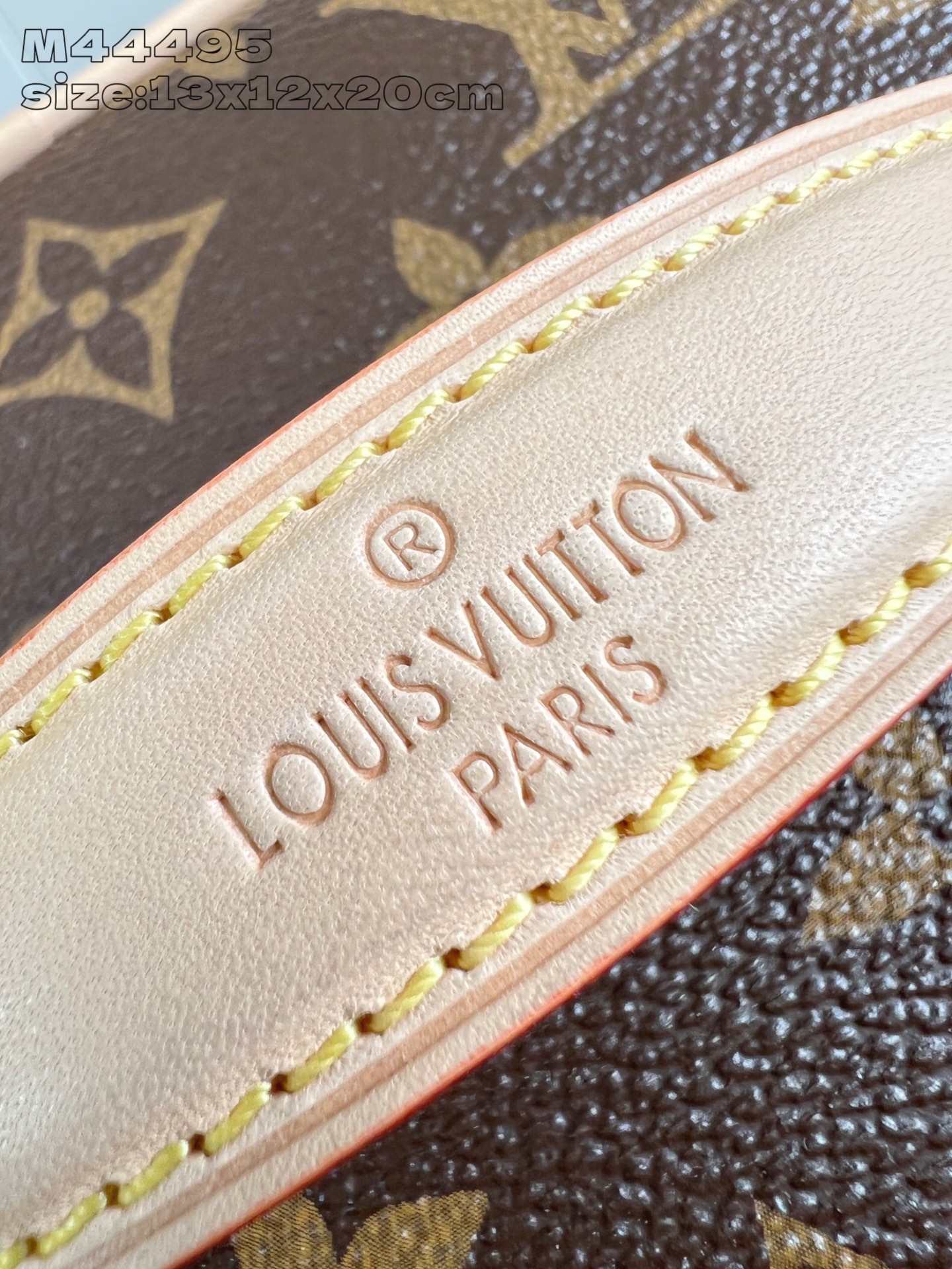 The Louis Vuitton Nice mini bag in Monogram canvas, perfect for holding your essentials. Features a leather handle and a double-zip closure.