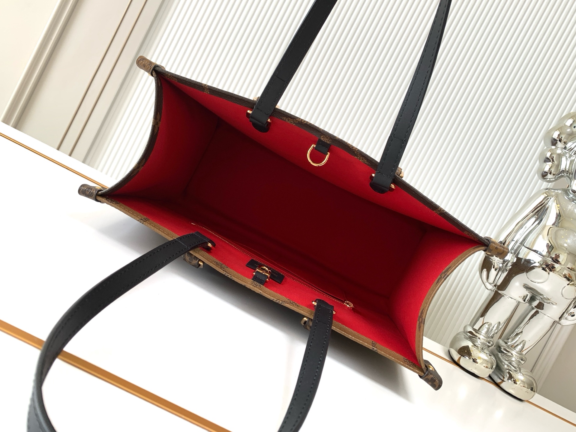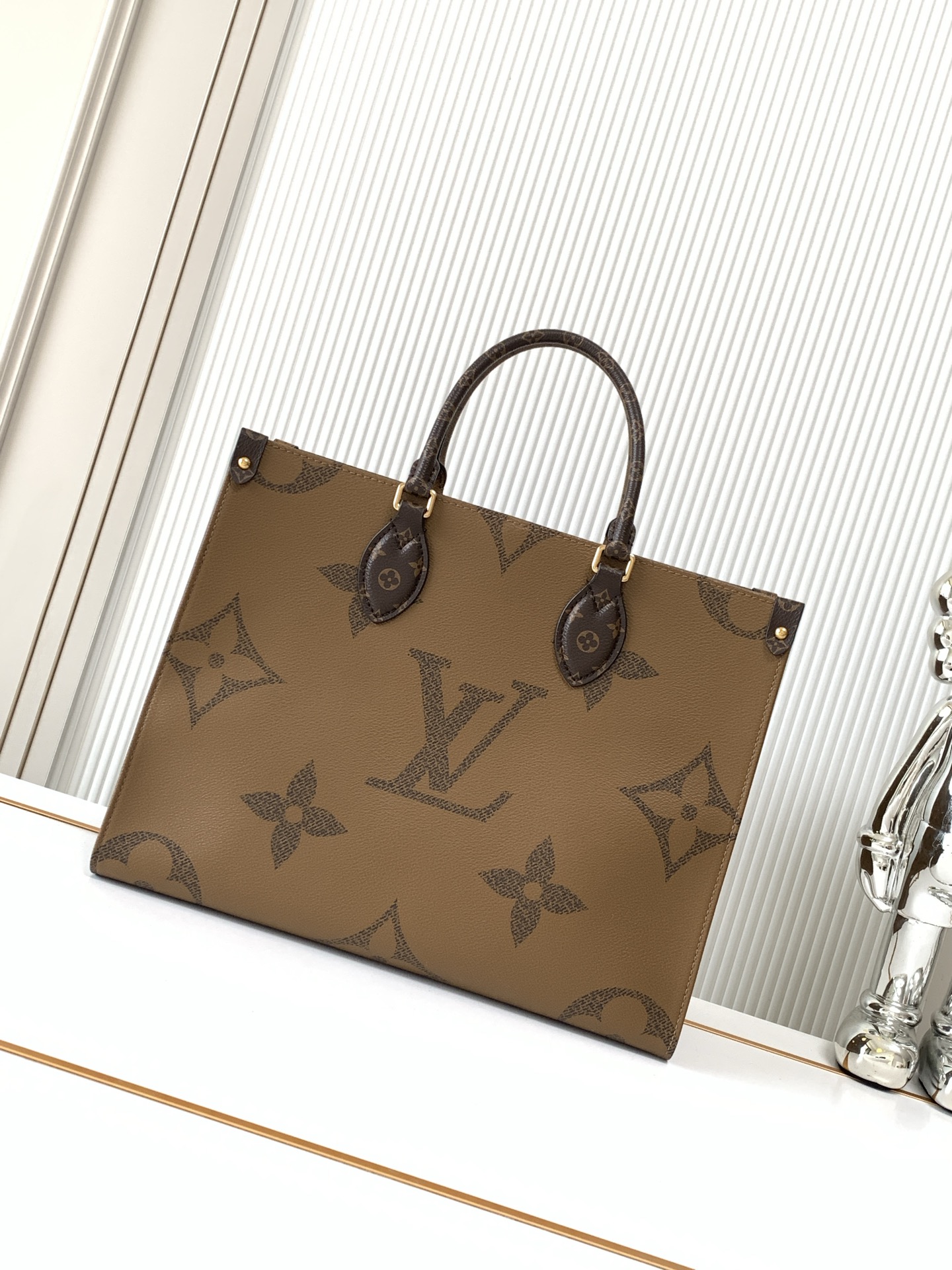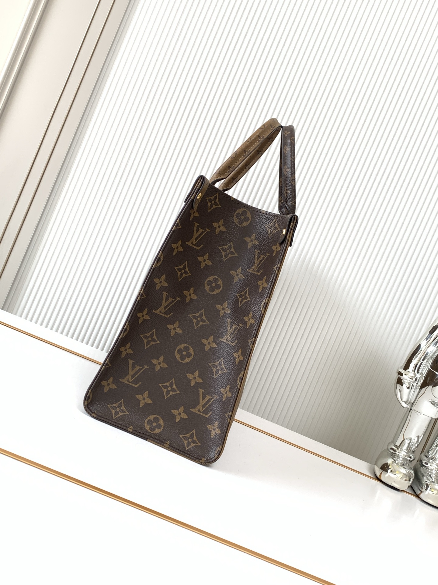 - Features classic Louis Vuitton Monogram canvas with Monogram Reverse canvas on the sides.