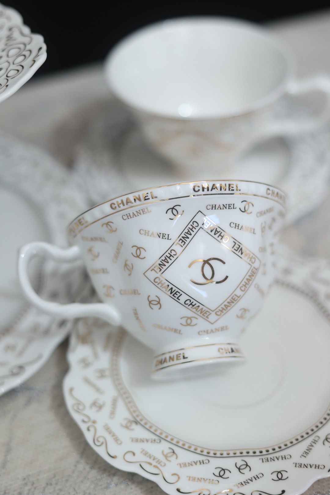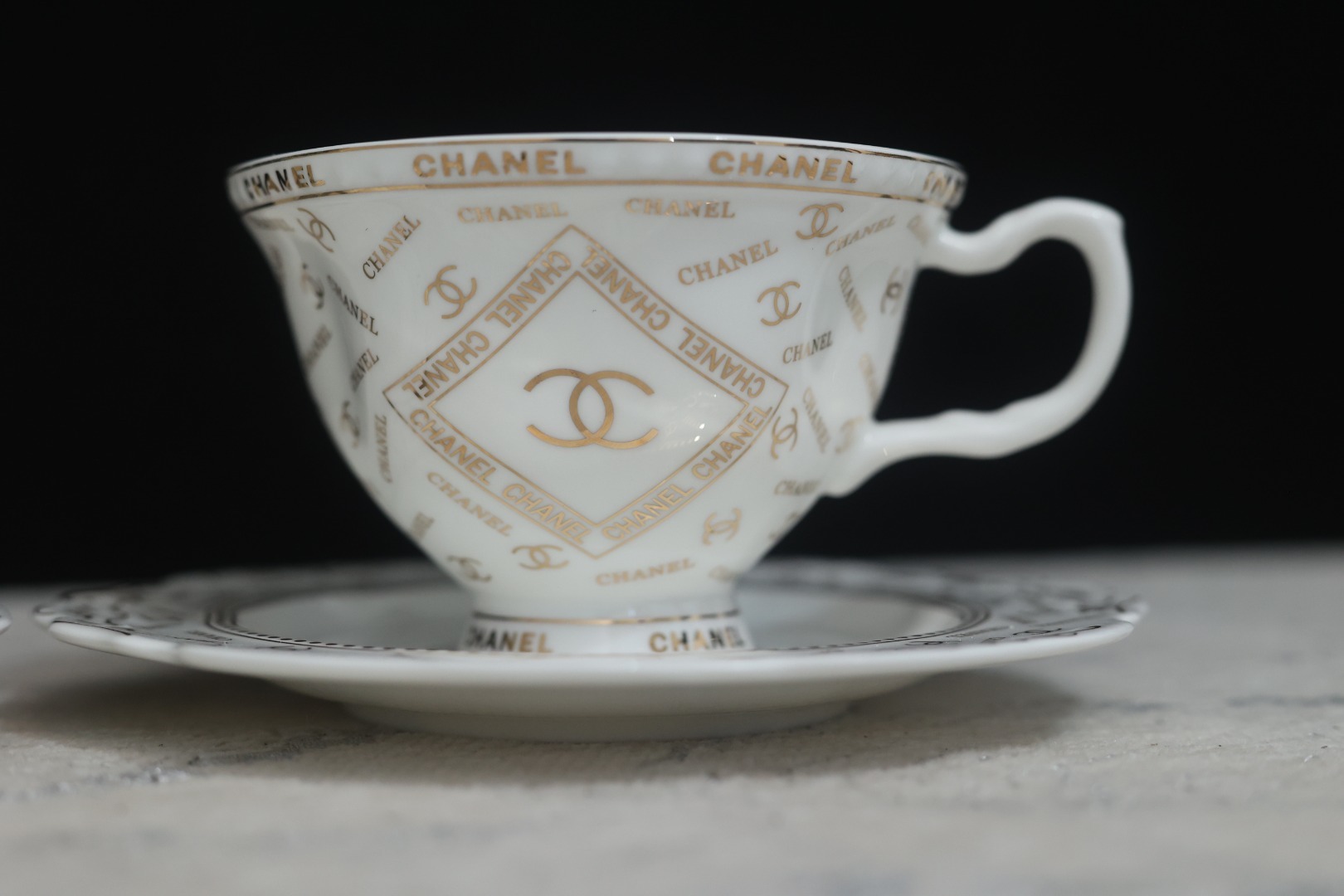 Elevate your tea time with this exquisite Chanel coffee cup and saucer set. Perfect for adding a touch of luxury to your home decor.