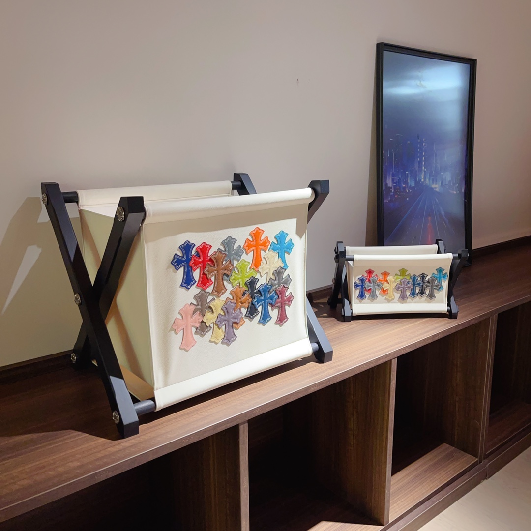 Organize your space with this elegant folding wooden storage rack, featuring a durable oak frame and stylish Chrome Hearts design. Ideal for any room!