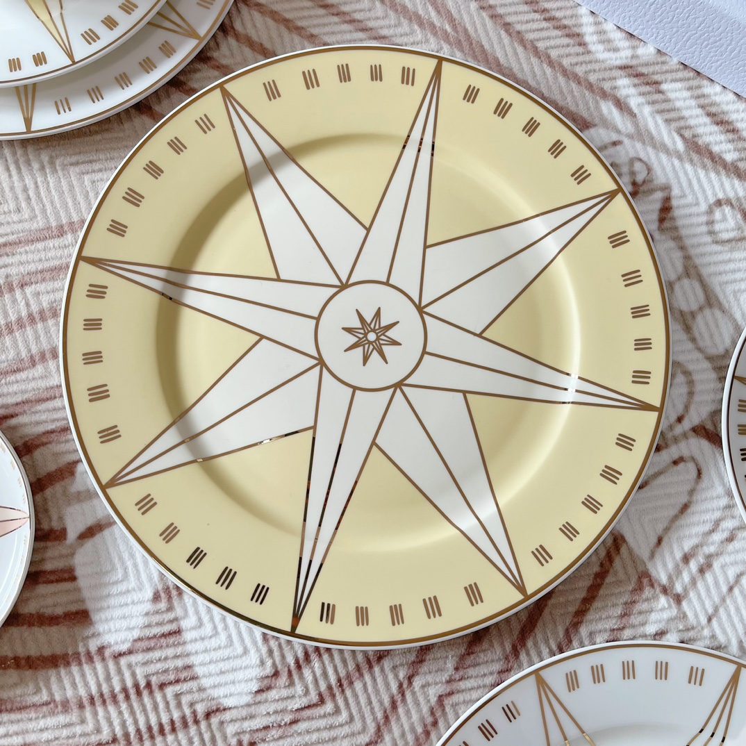 Elevate your dining experience with the Dior Rose Des Vents 41-piece dinnerware set. Exquisite porcelain featuring the iconic wind rose design and refined gold details.