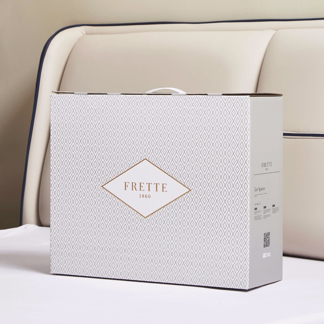 Experience ultimate comfort with FRETTE's goose down comforter. Hotel-quality, breathable cotton, and superior warmth. Perfect for a luxurious sleep experience.