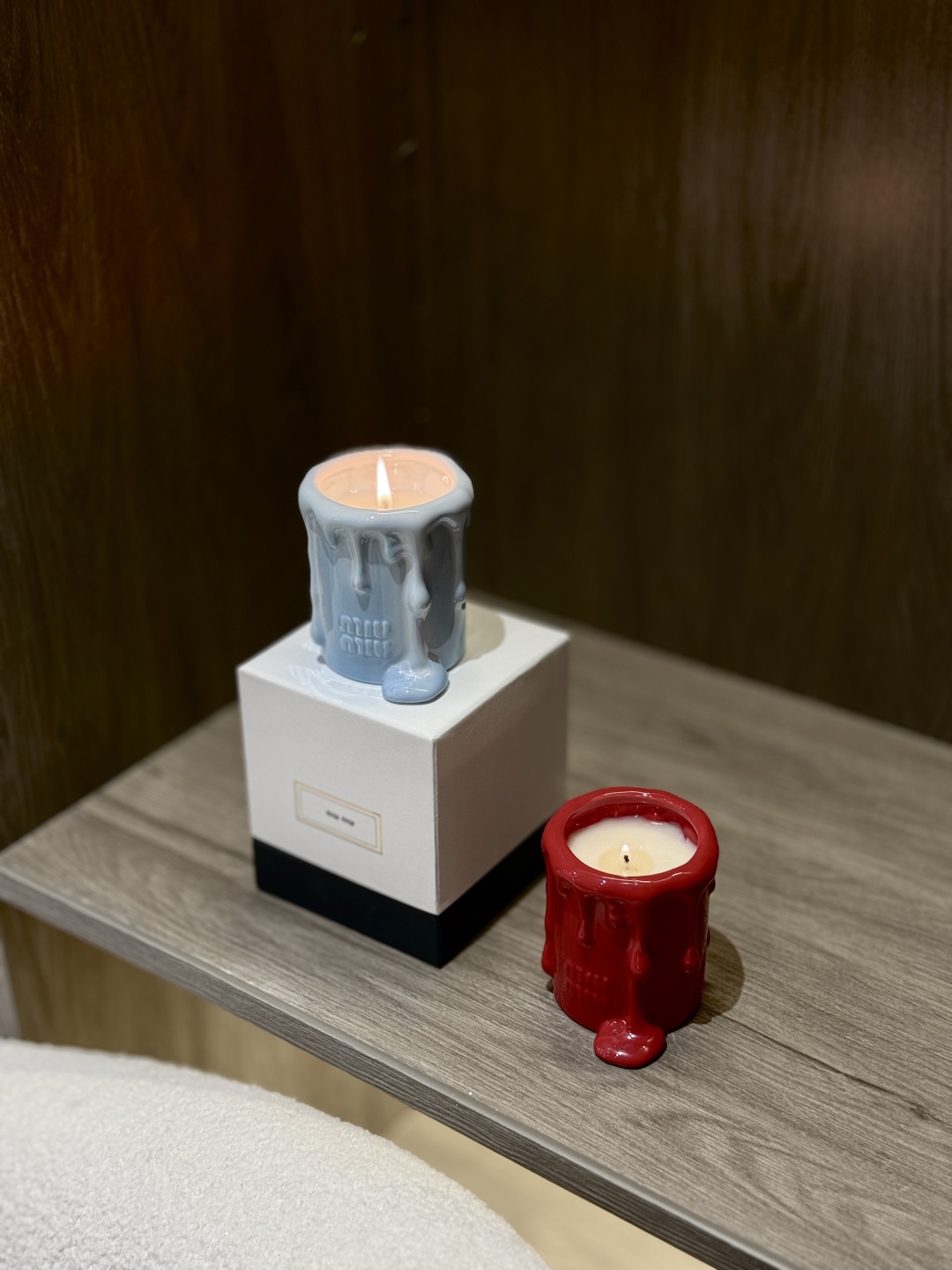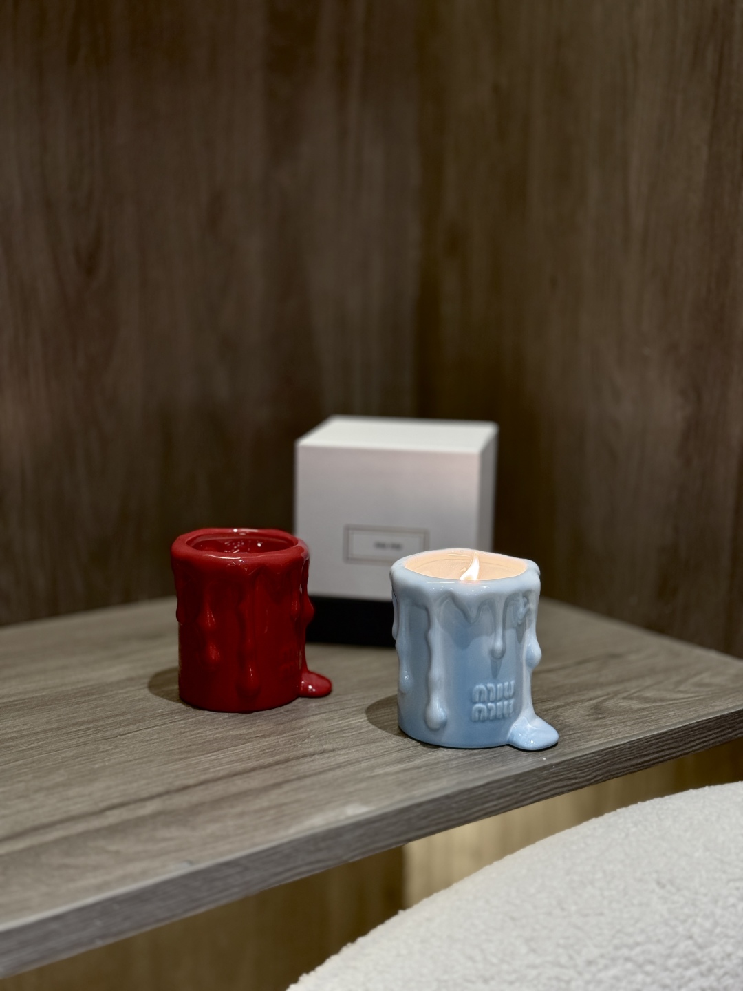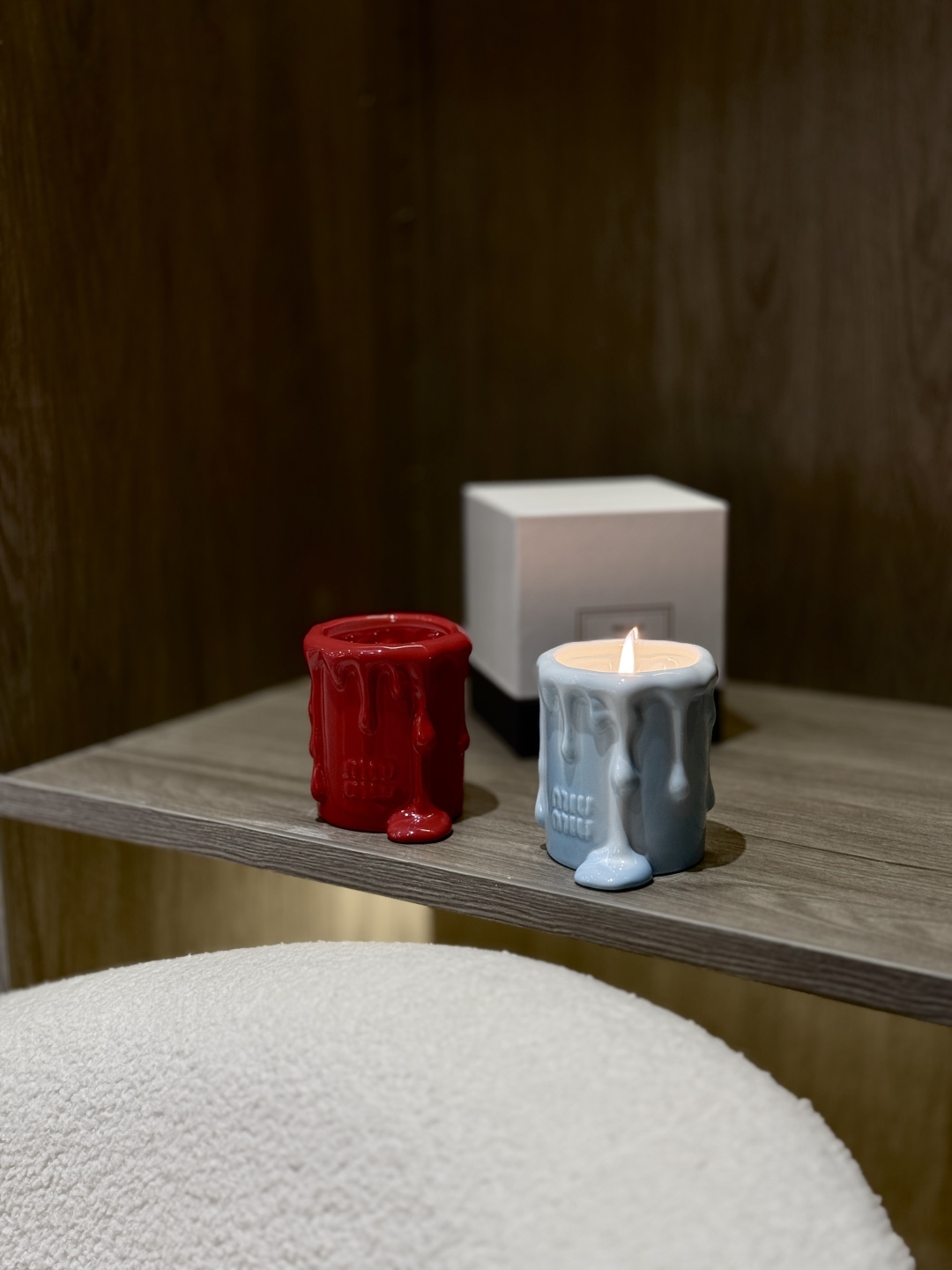 The Miu Miu scented candle is more than just a source of light; it is a statement piece that enhances the ambiance of any room. Infused with a fragrance reminiscent of luxury perfumes, this candle brings a sense of tranquility and sophistication to your home.