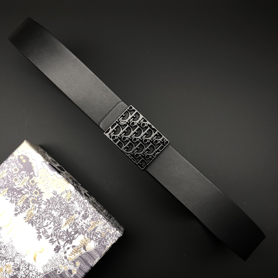 DIOR Belt for Women, Elegant Black Leather Belt with Iconic Logo Buckle