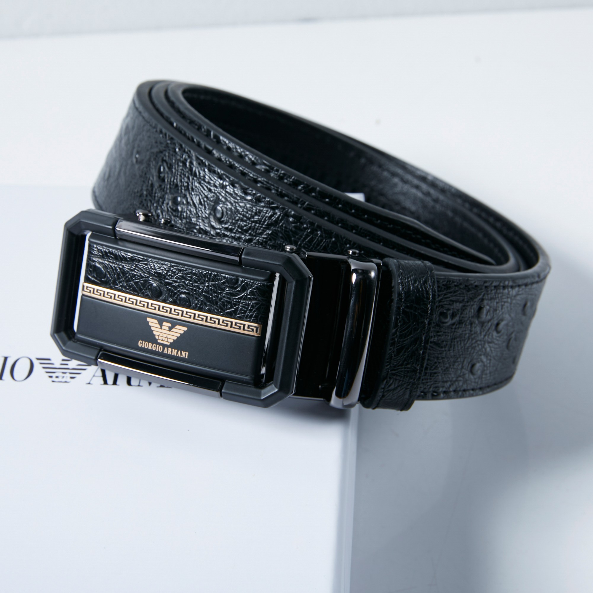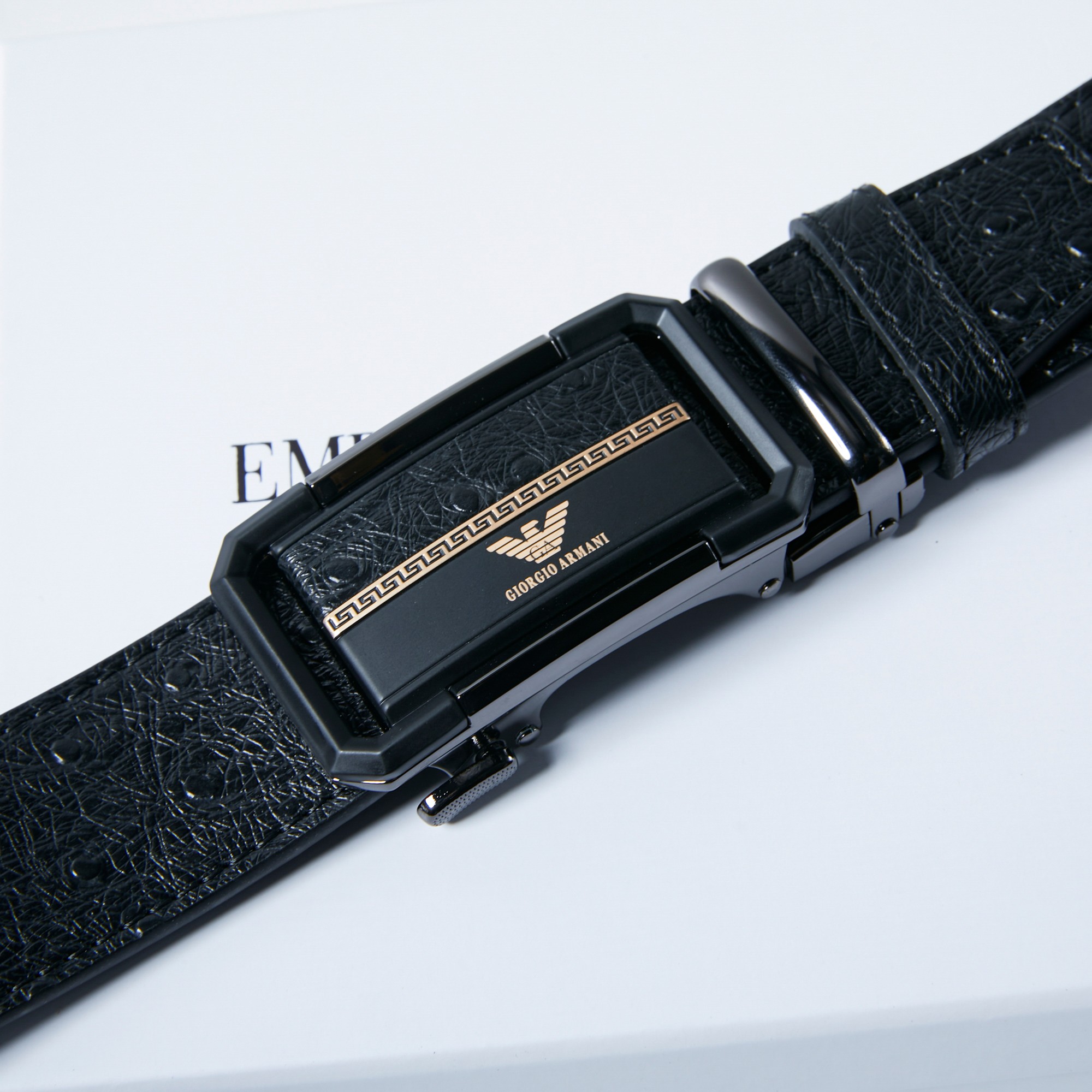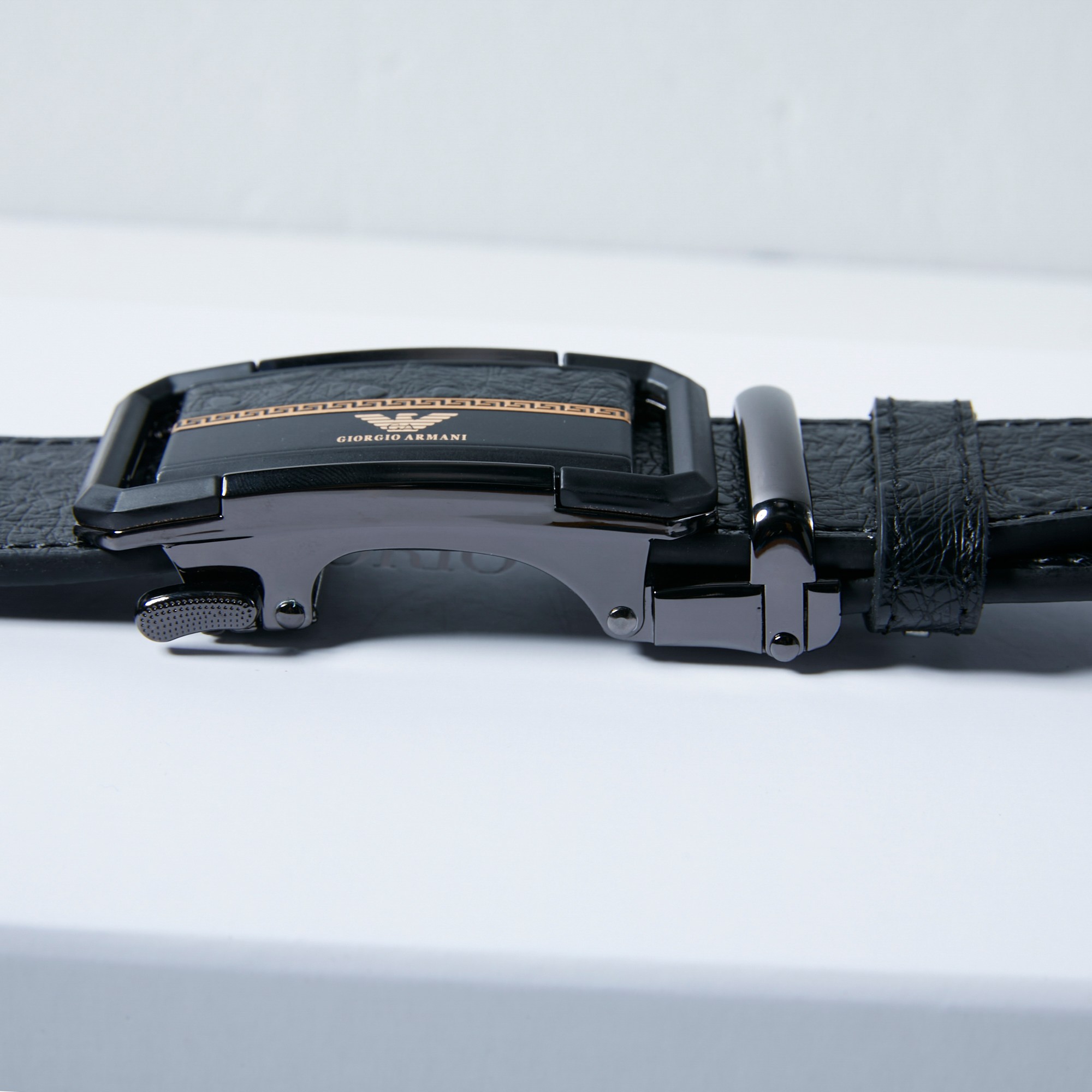Giorgio Armani Men's Ostrich Leather Belt - Black Designer Belt