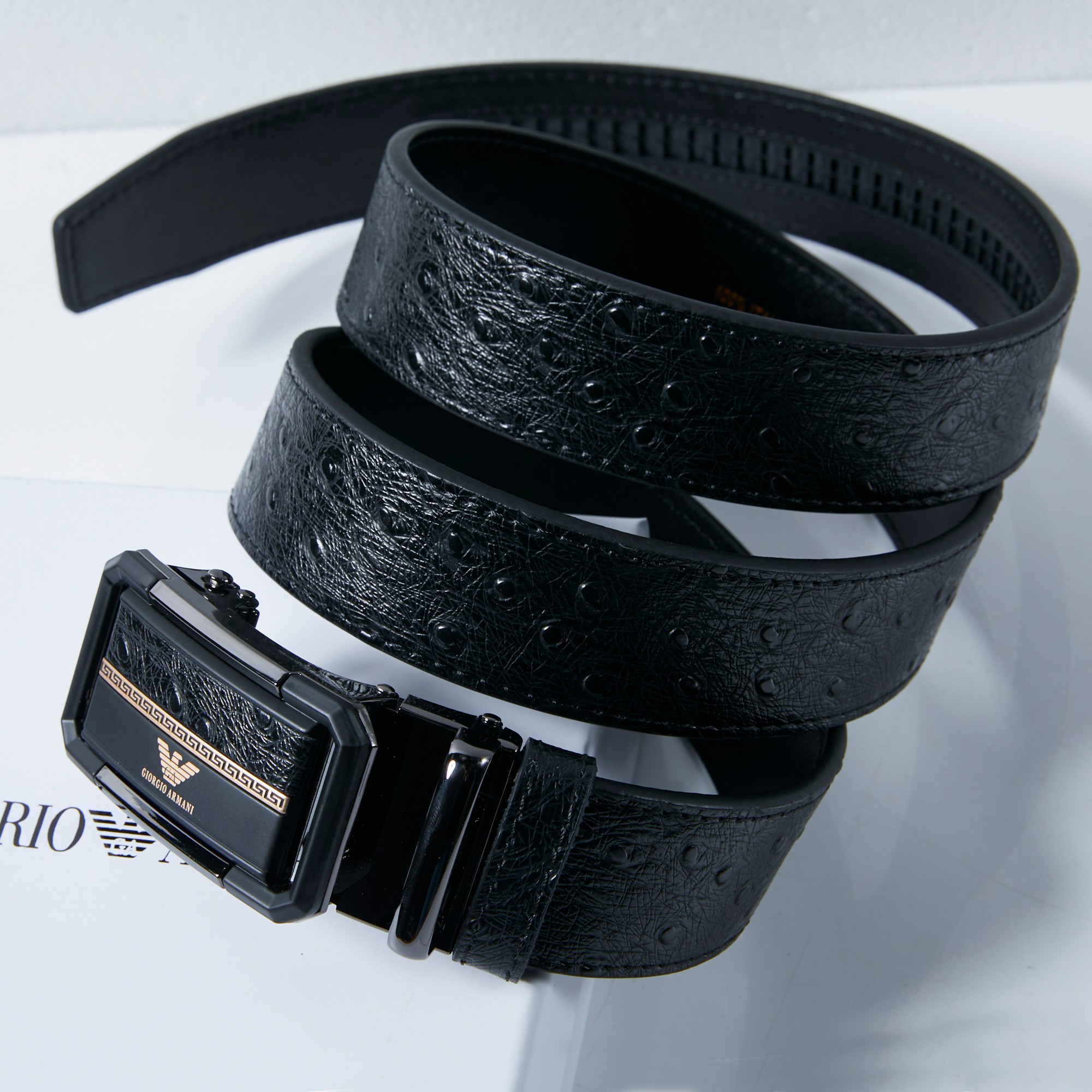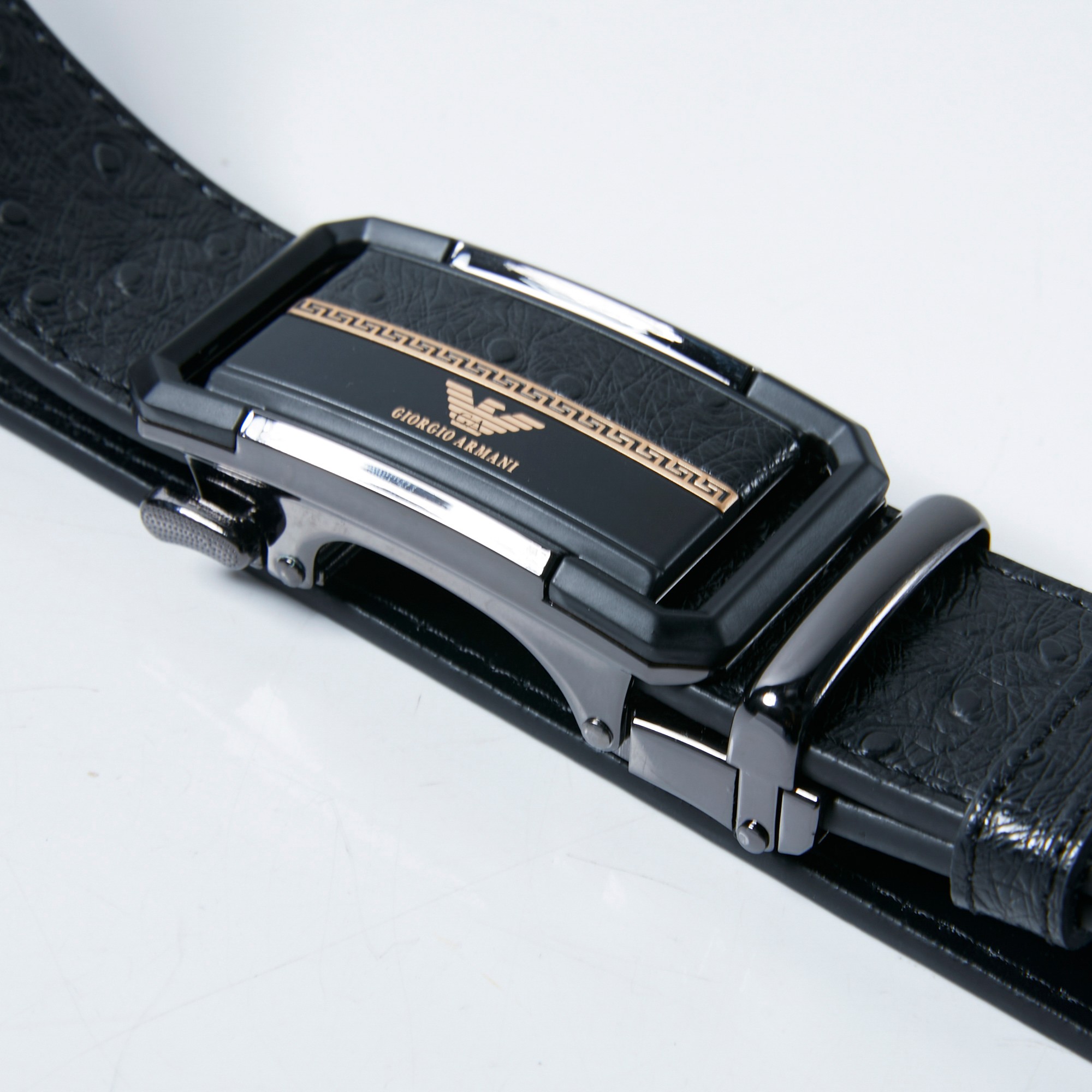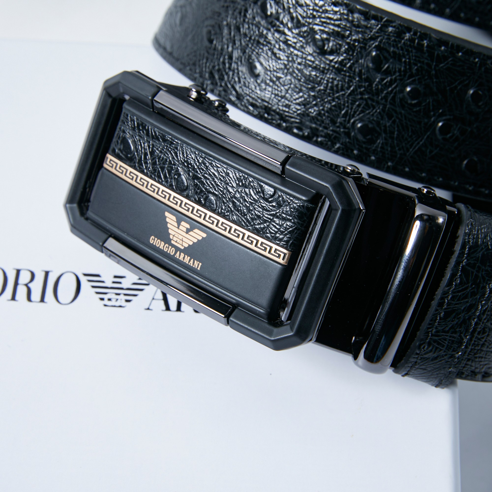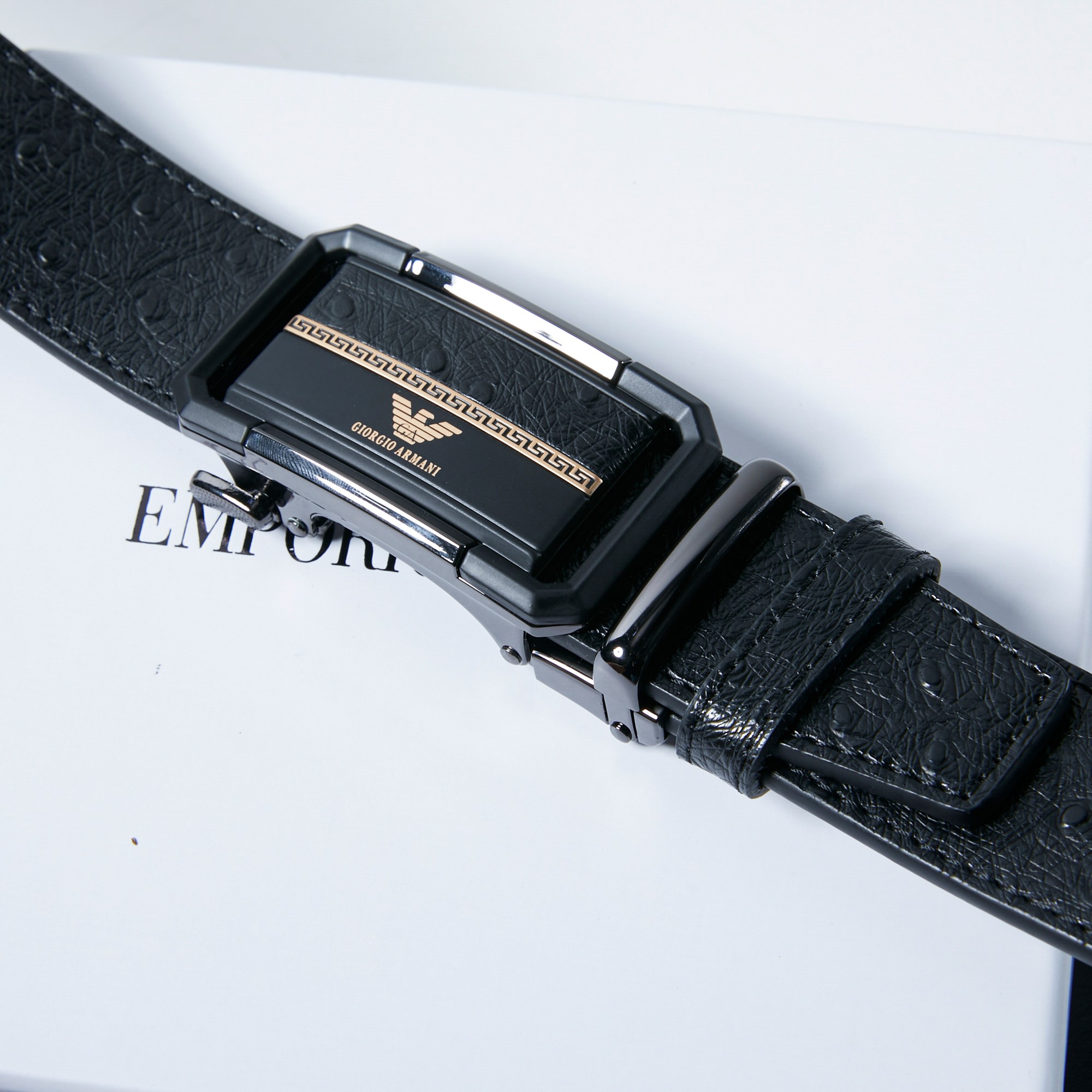 Giorgio Armani Men's Ostrich Leather Belt - Black Designer Belt