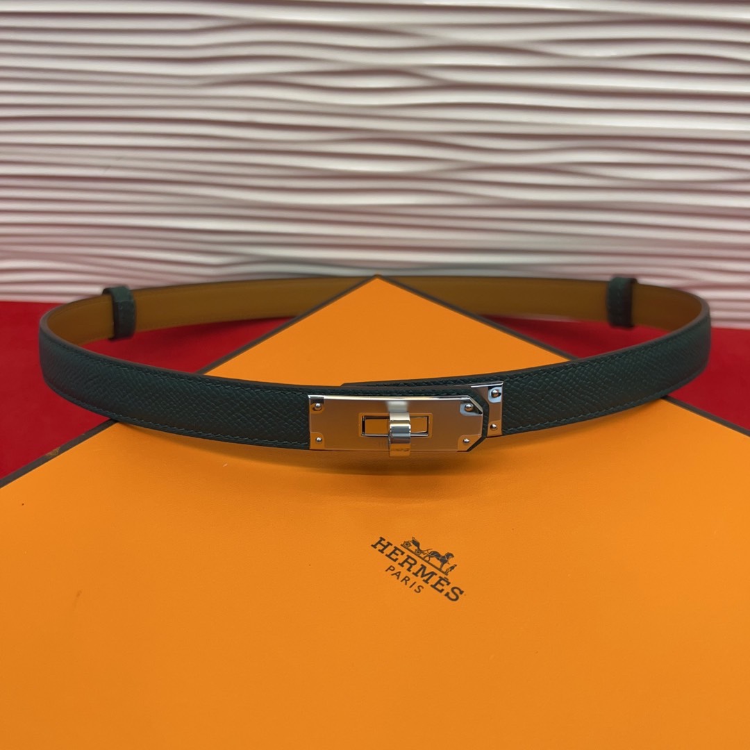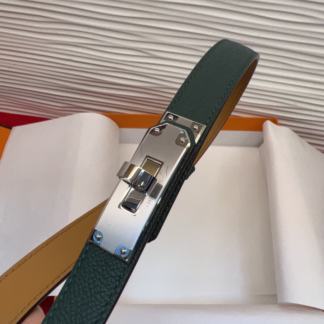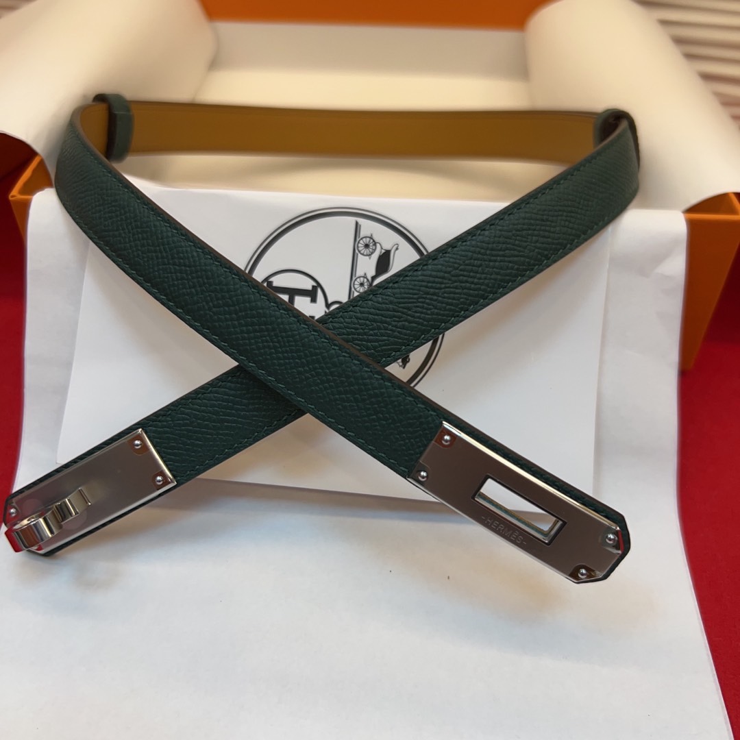 Hermès Kelly Belt Hunter Leather with Palladium-Plated Buckle, 18 mm