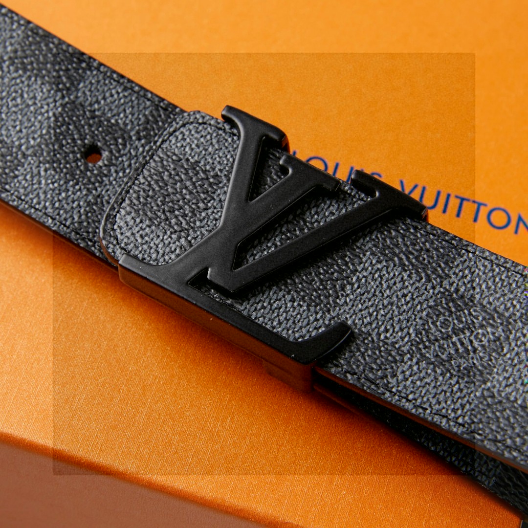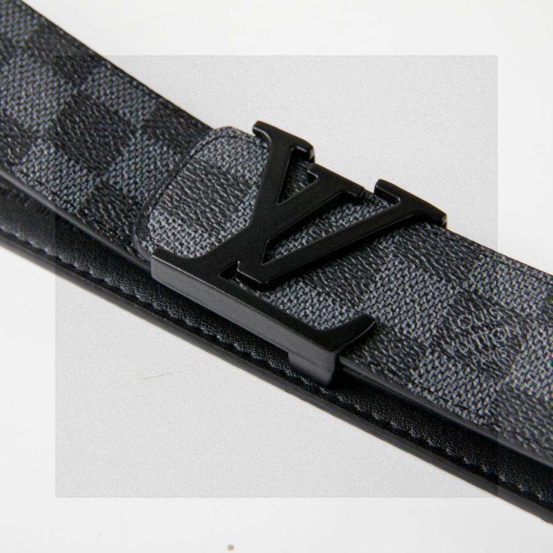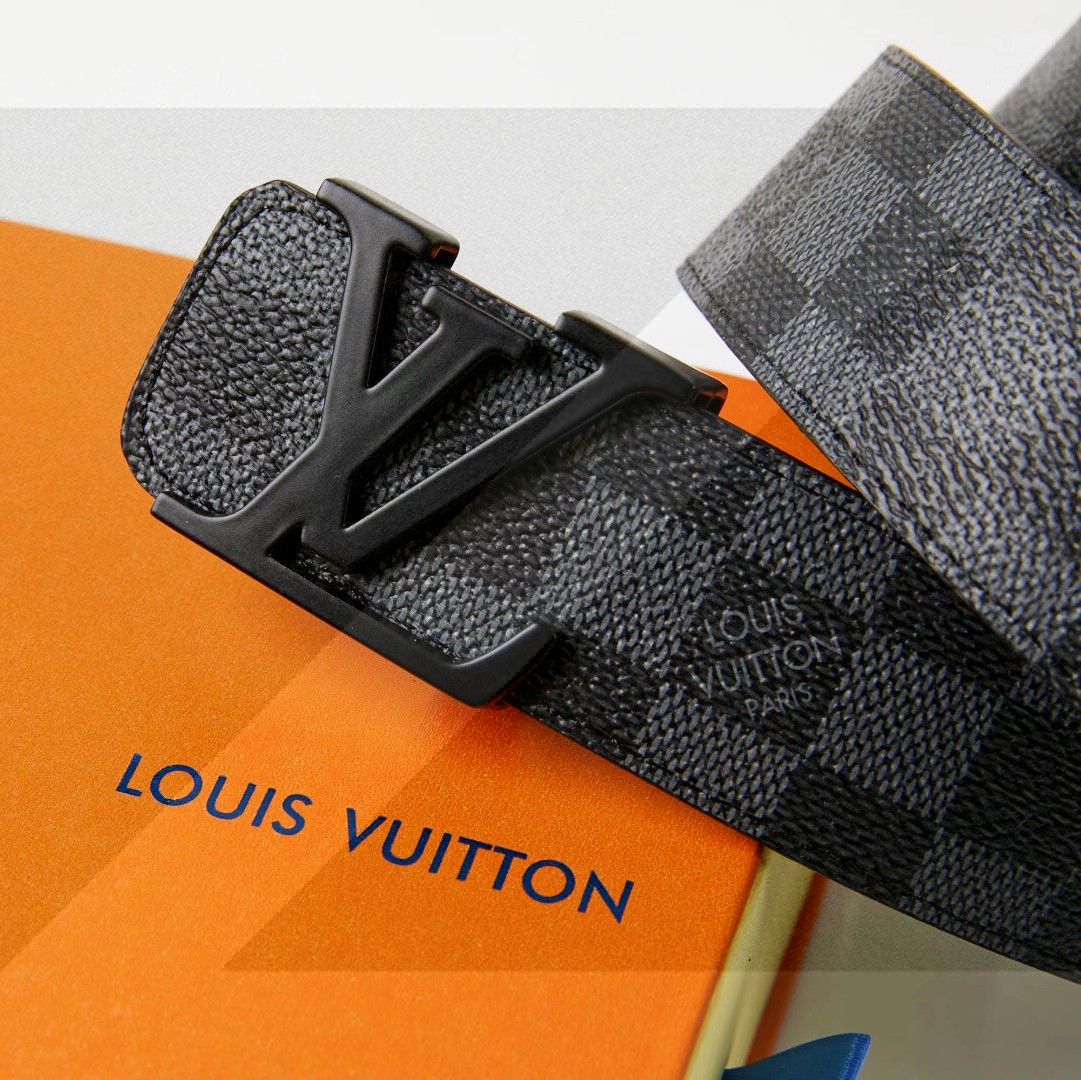 Elevate your style with this Louis Vuitton belt. Features Damier Graphite pattern, black buckle, and full packaging. Perfect gift!