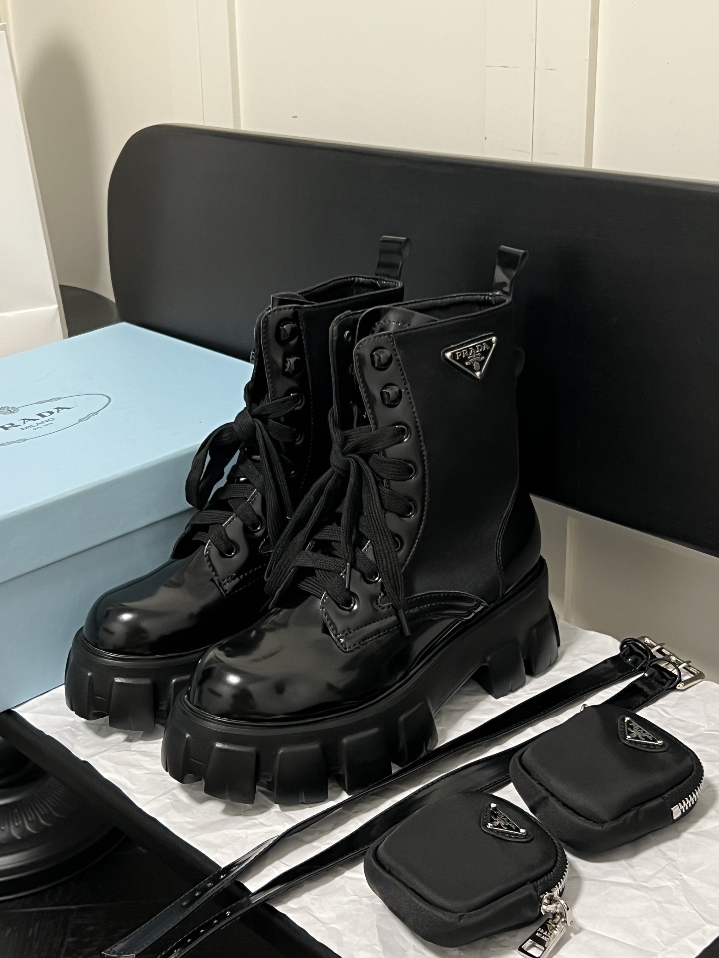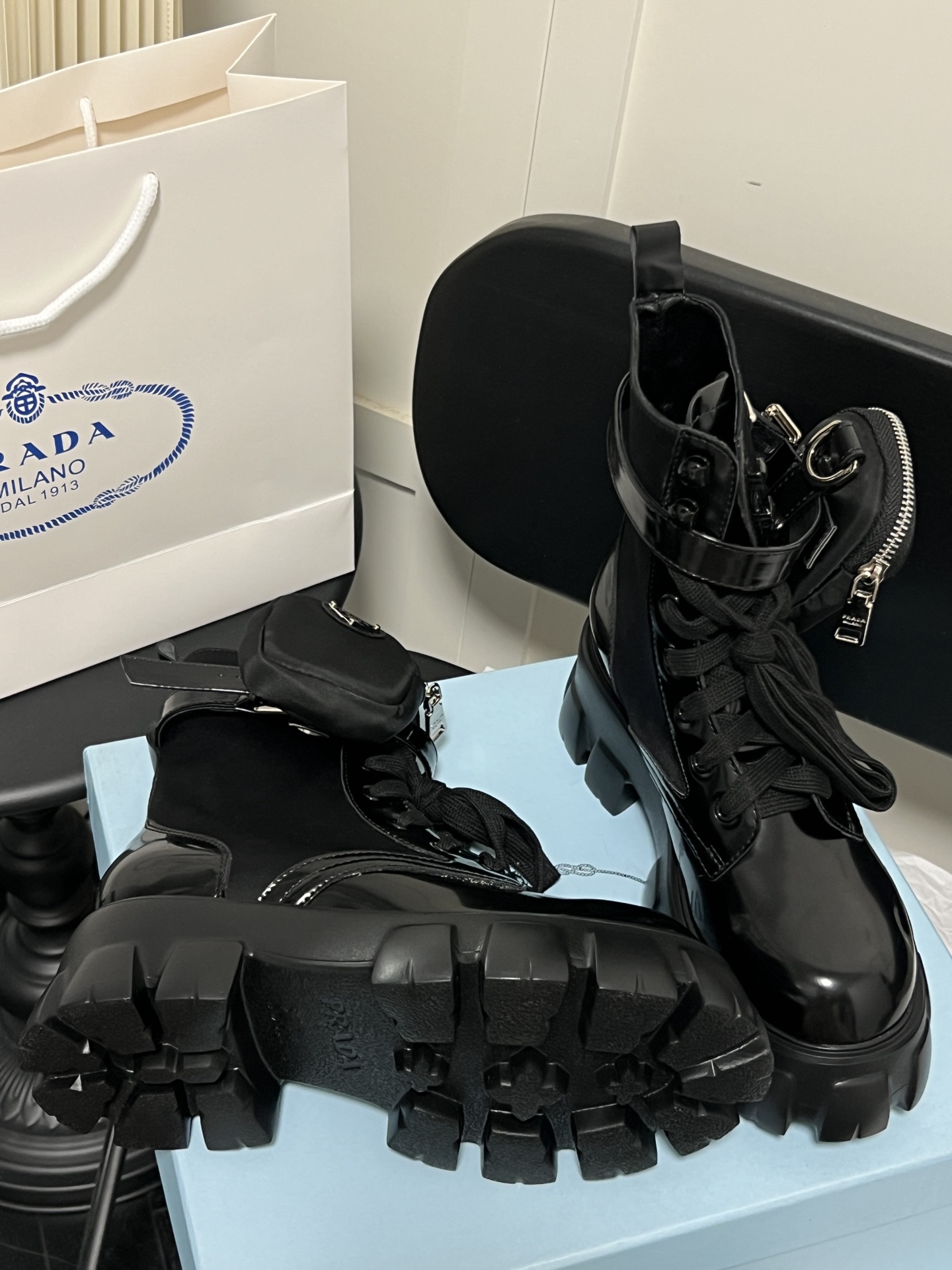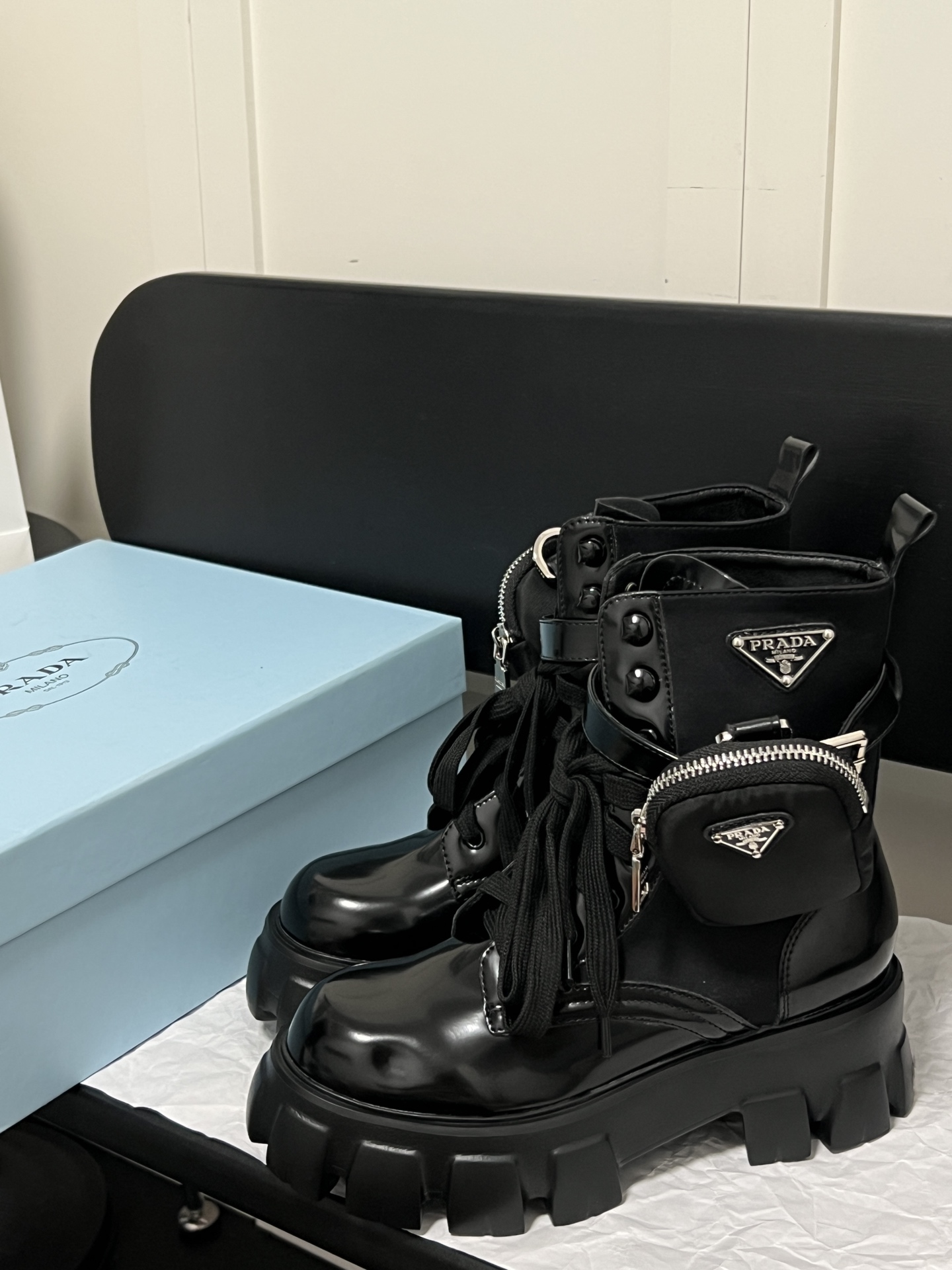 These Prada combat boots are the perfect blend of luxury and edge. Crafted with high-quality materials and attention to detail, these boots are sure to make a statement.