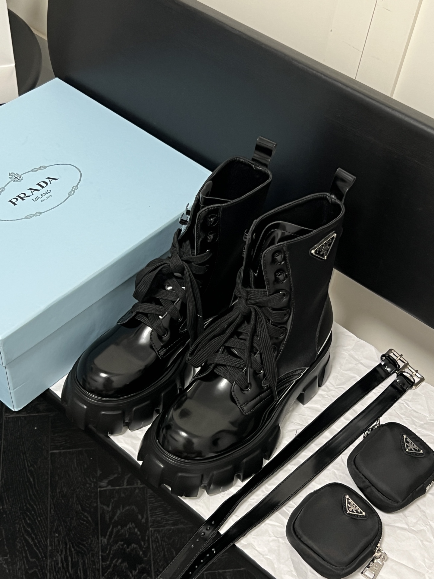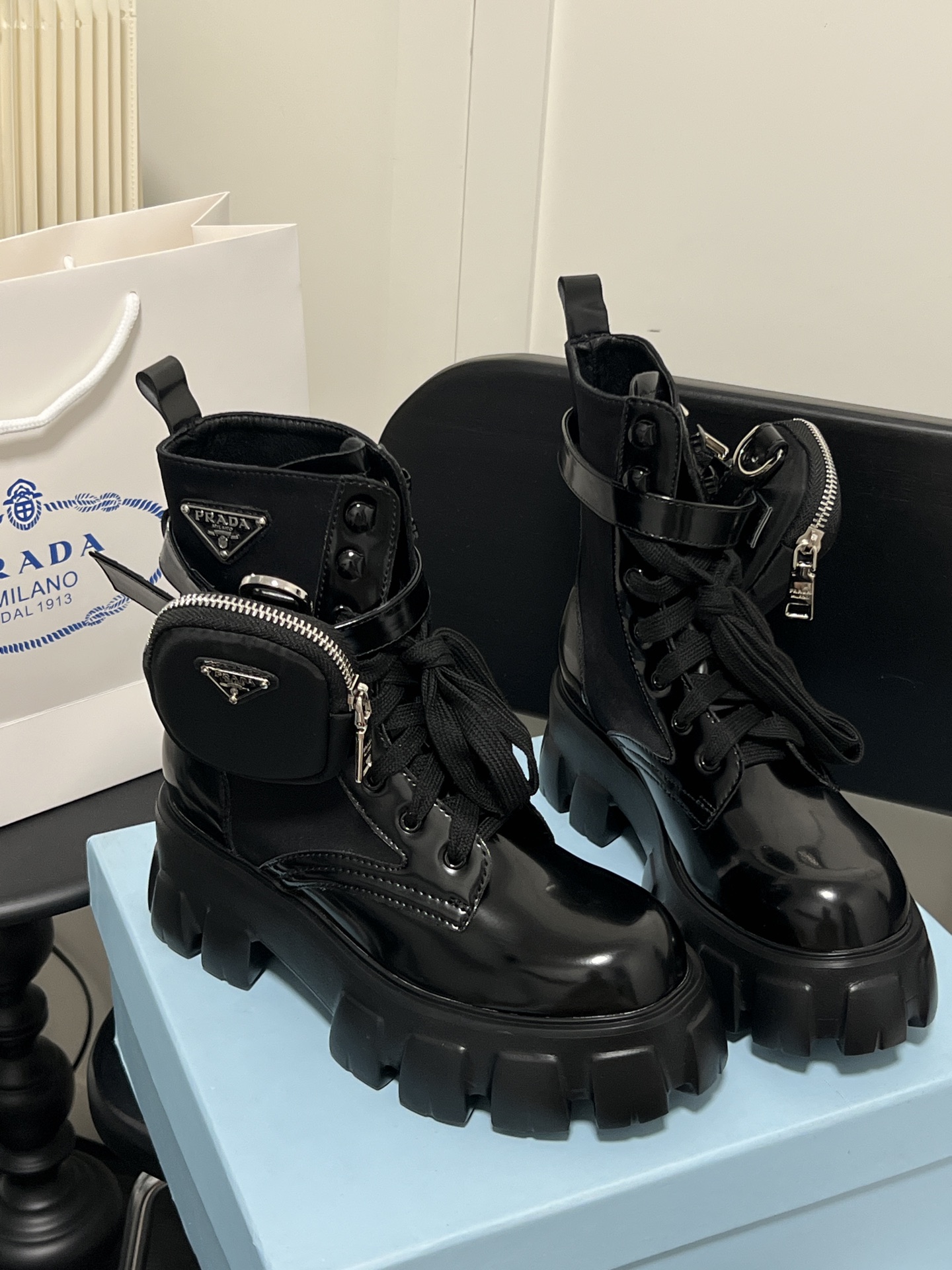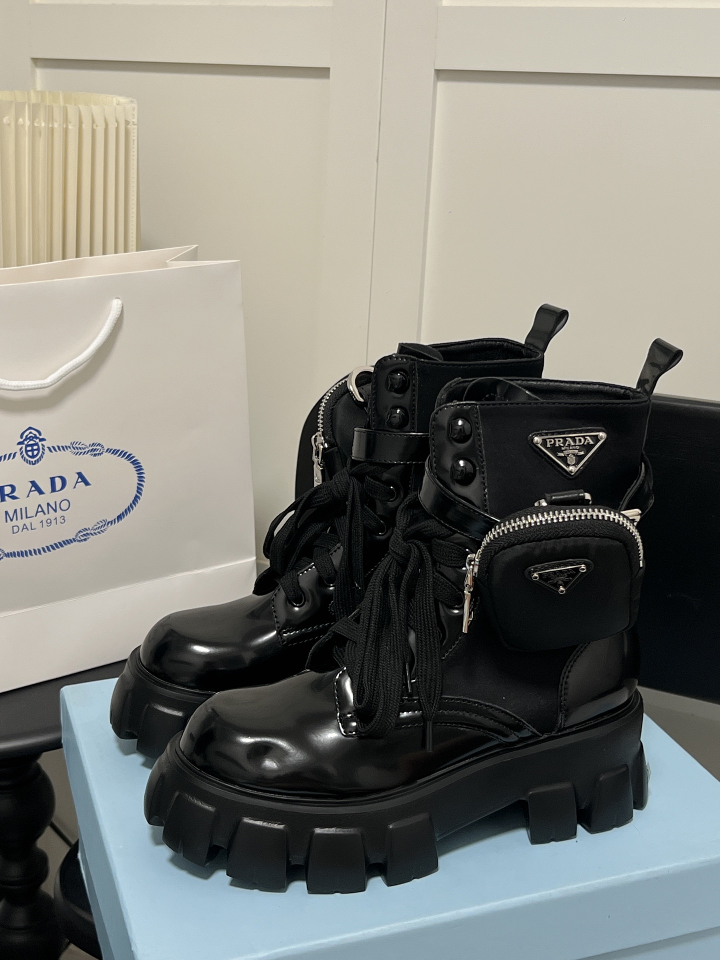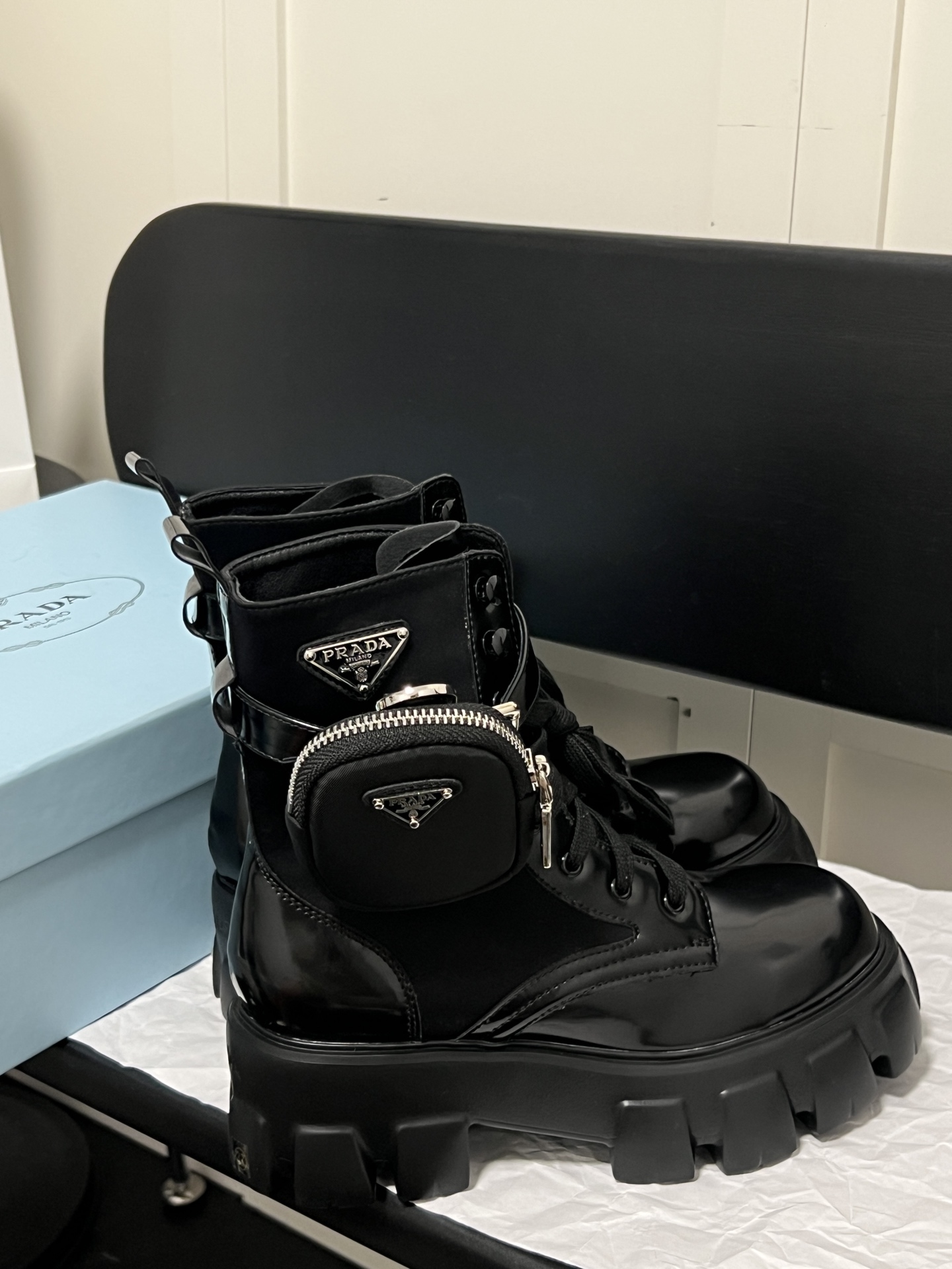 These Prada combat boots are the perfect blend of luxury and edge. Crafted with high-quality materials and attention to detail, these boots are sure to make a statement.