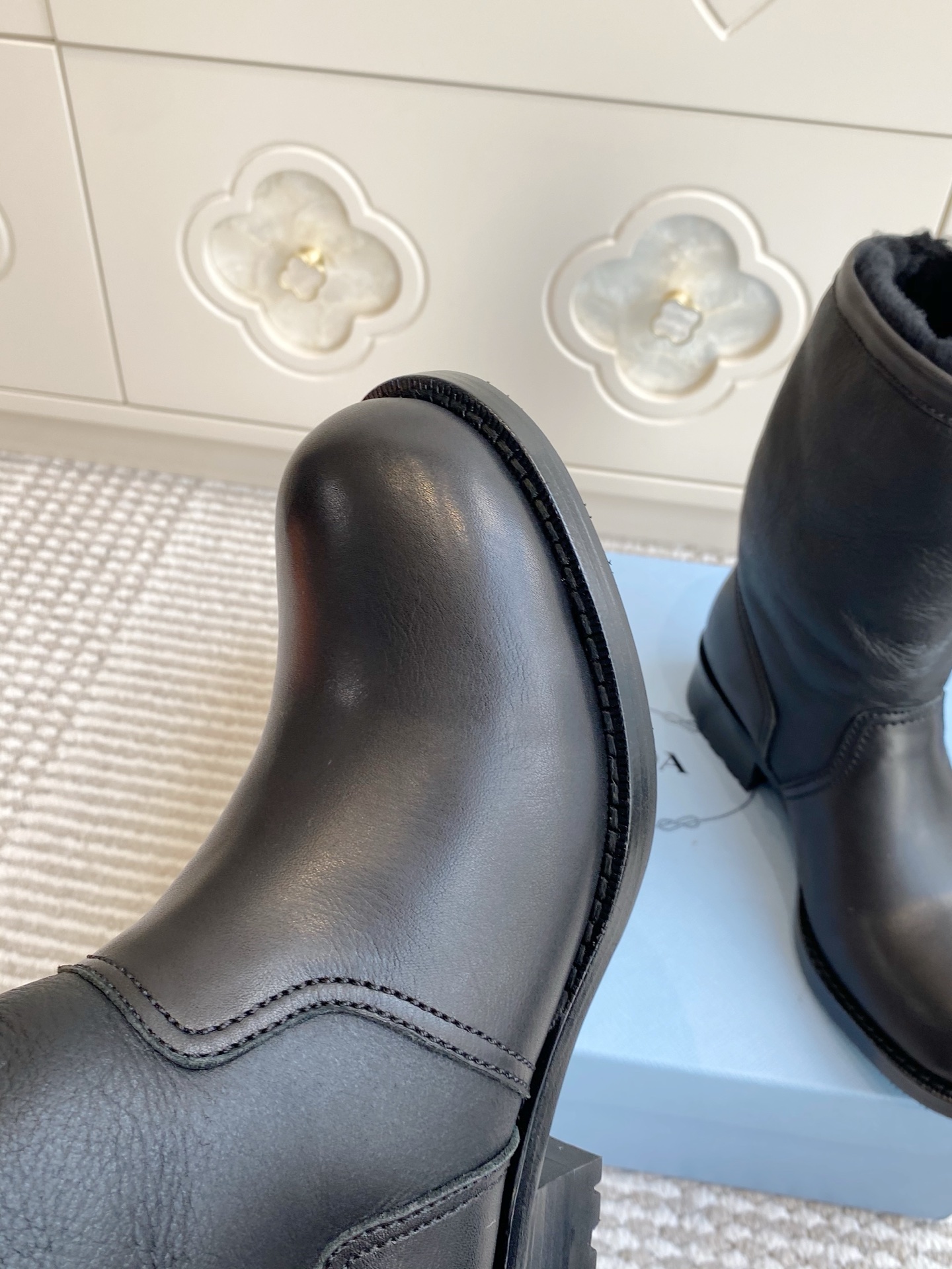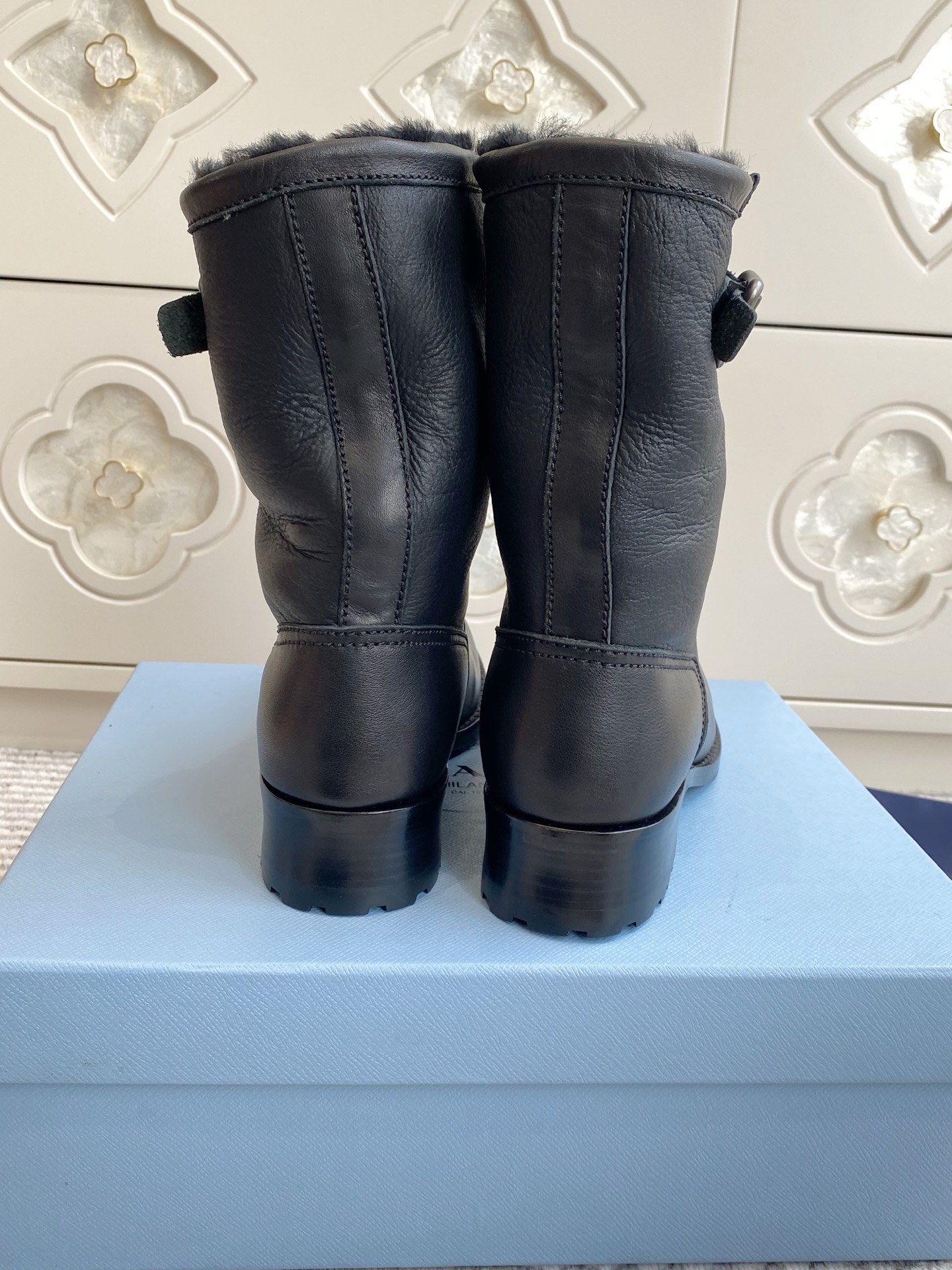 These Prada biker boots embody a blend of luxury and rebellious style, perfect for making a bold statement.