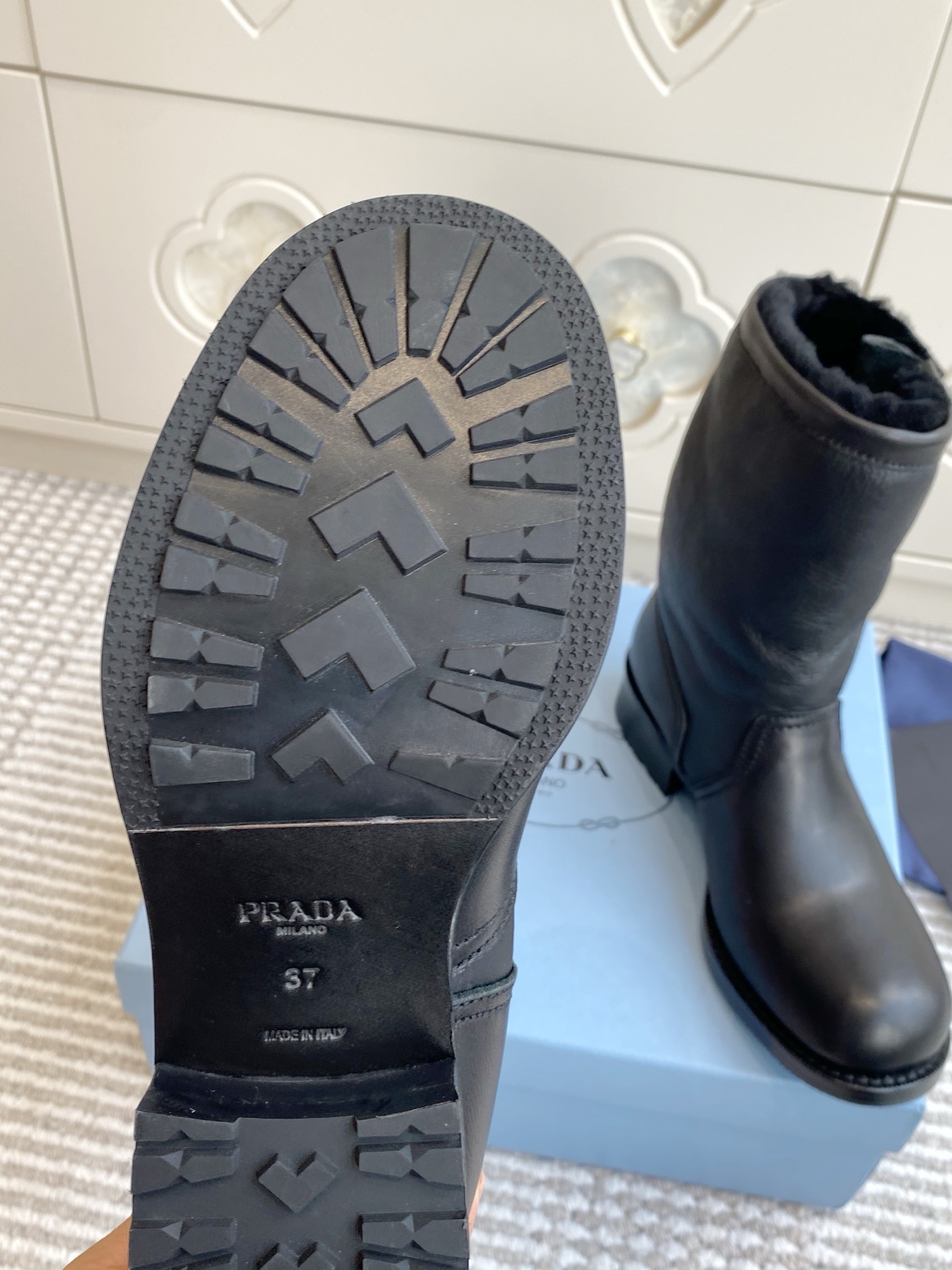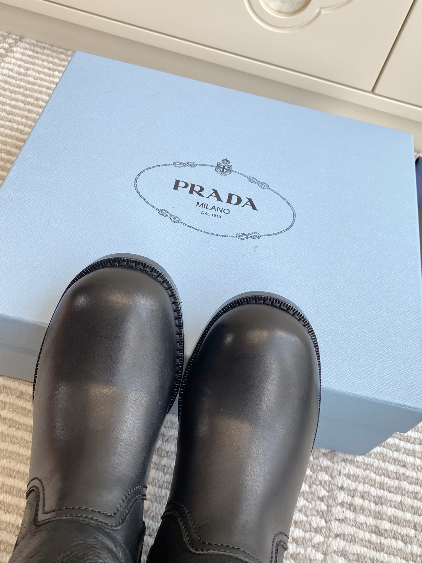 Step out in style with these Prada biker boots, a perfect blend of luxury and rebellious fashion.