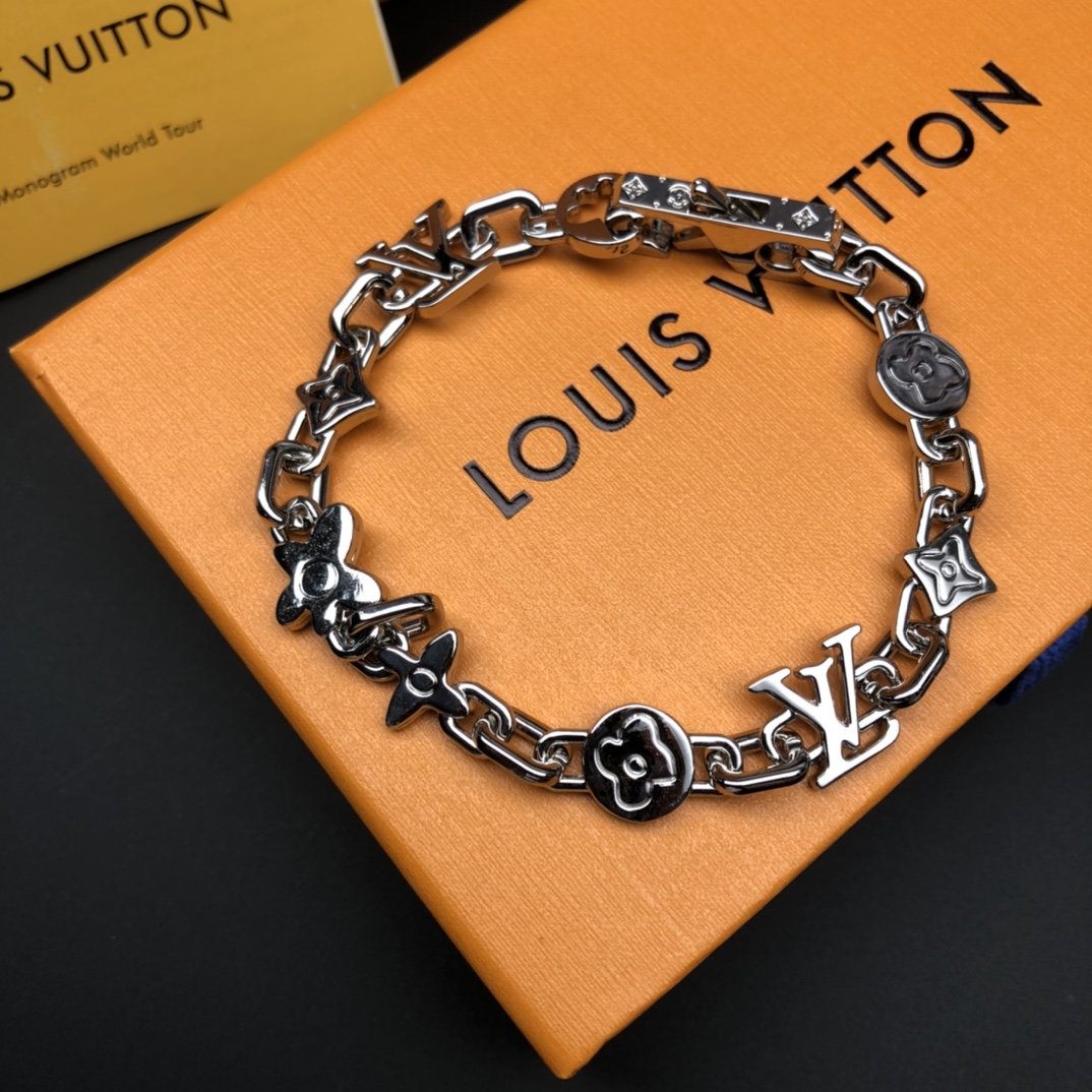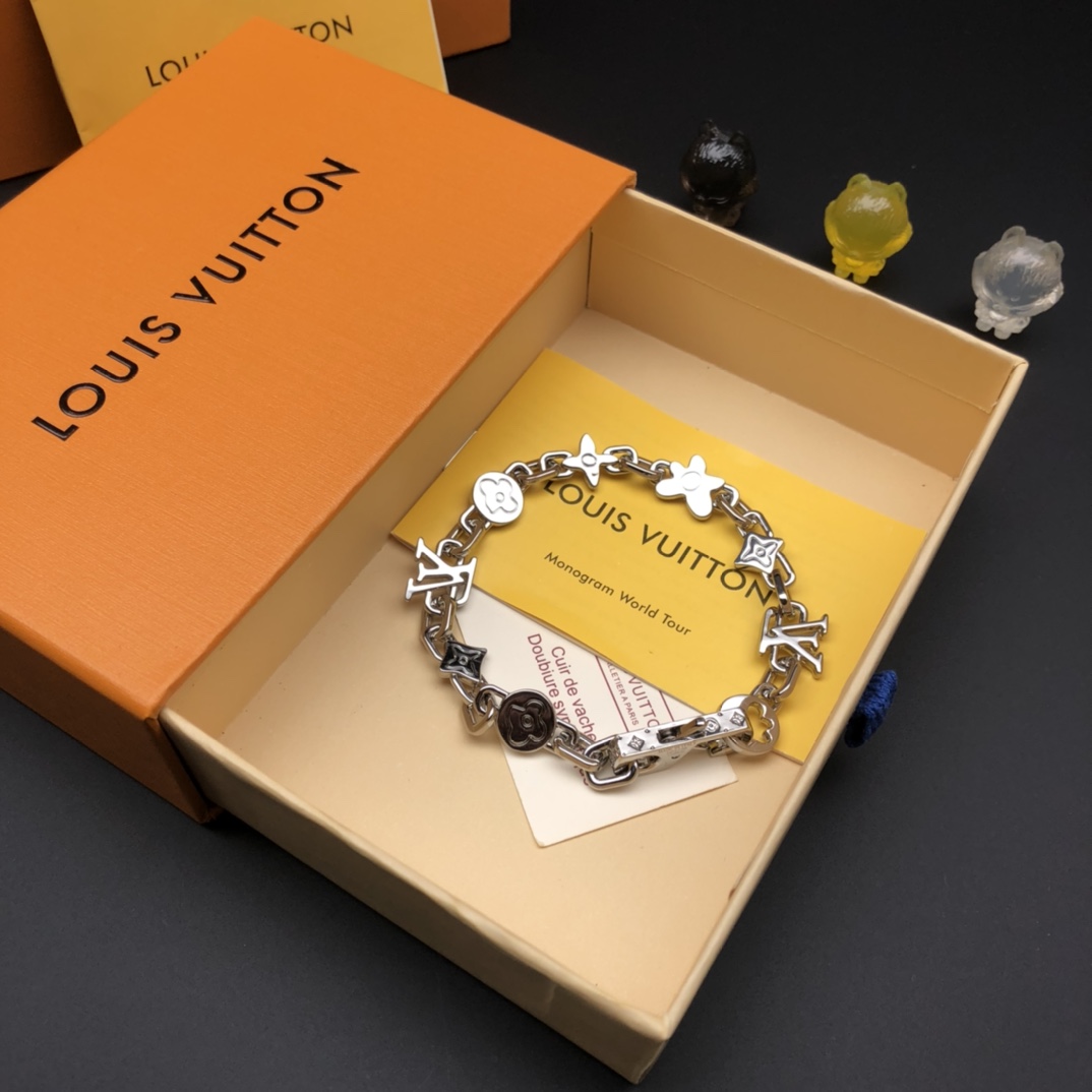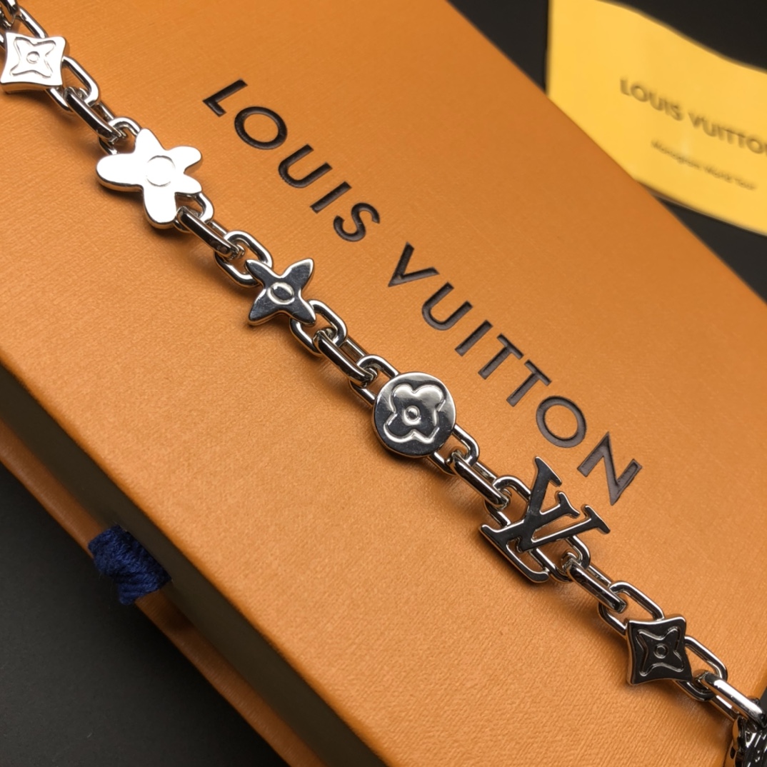 Louis Vuitton Monogram Craggy Silver Bracelet with Brass Hardware, 21cm