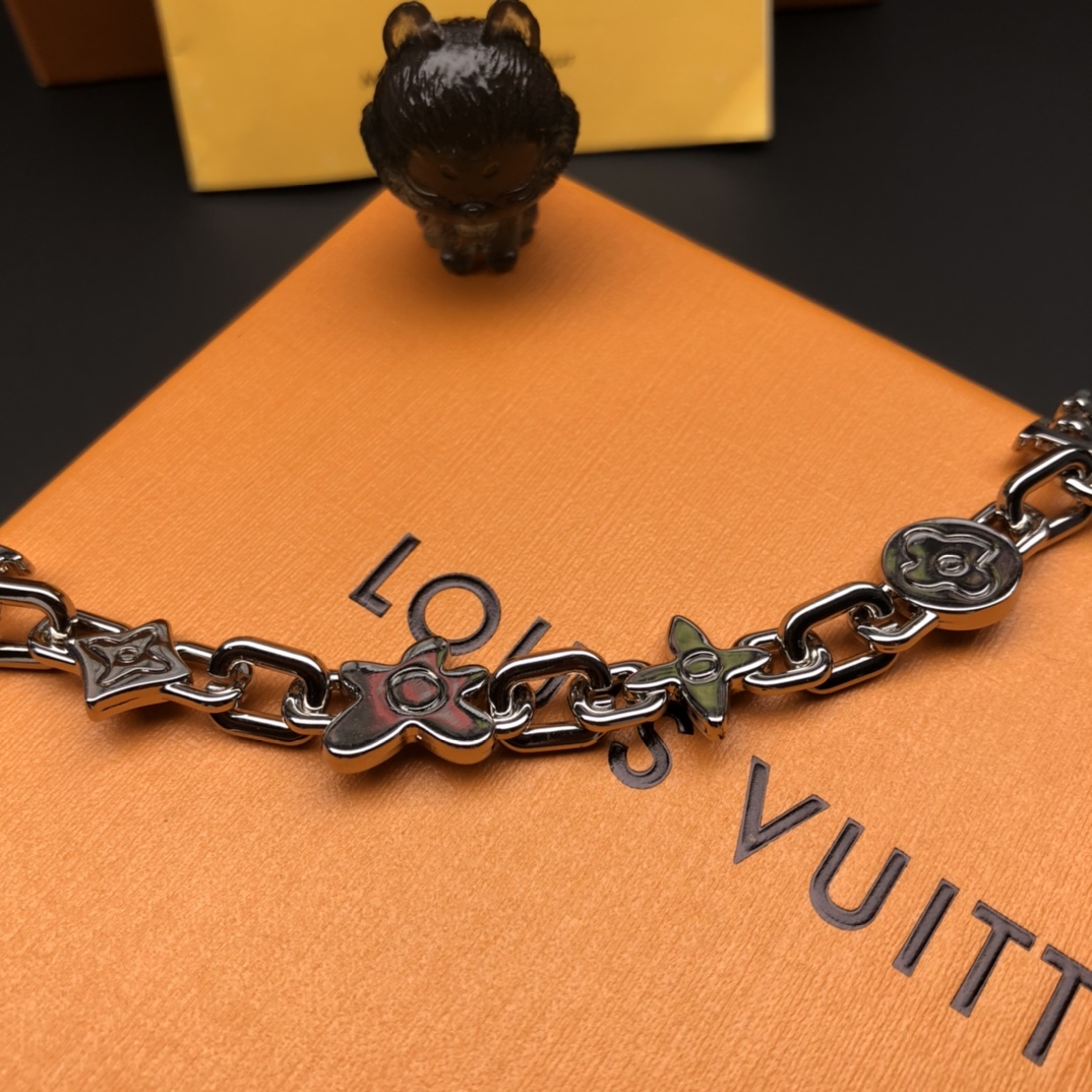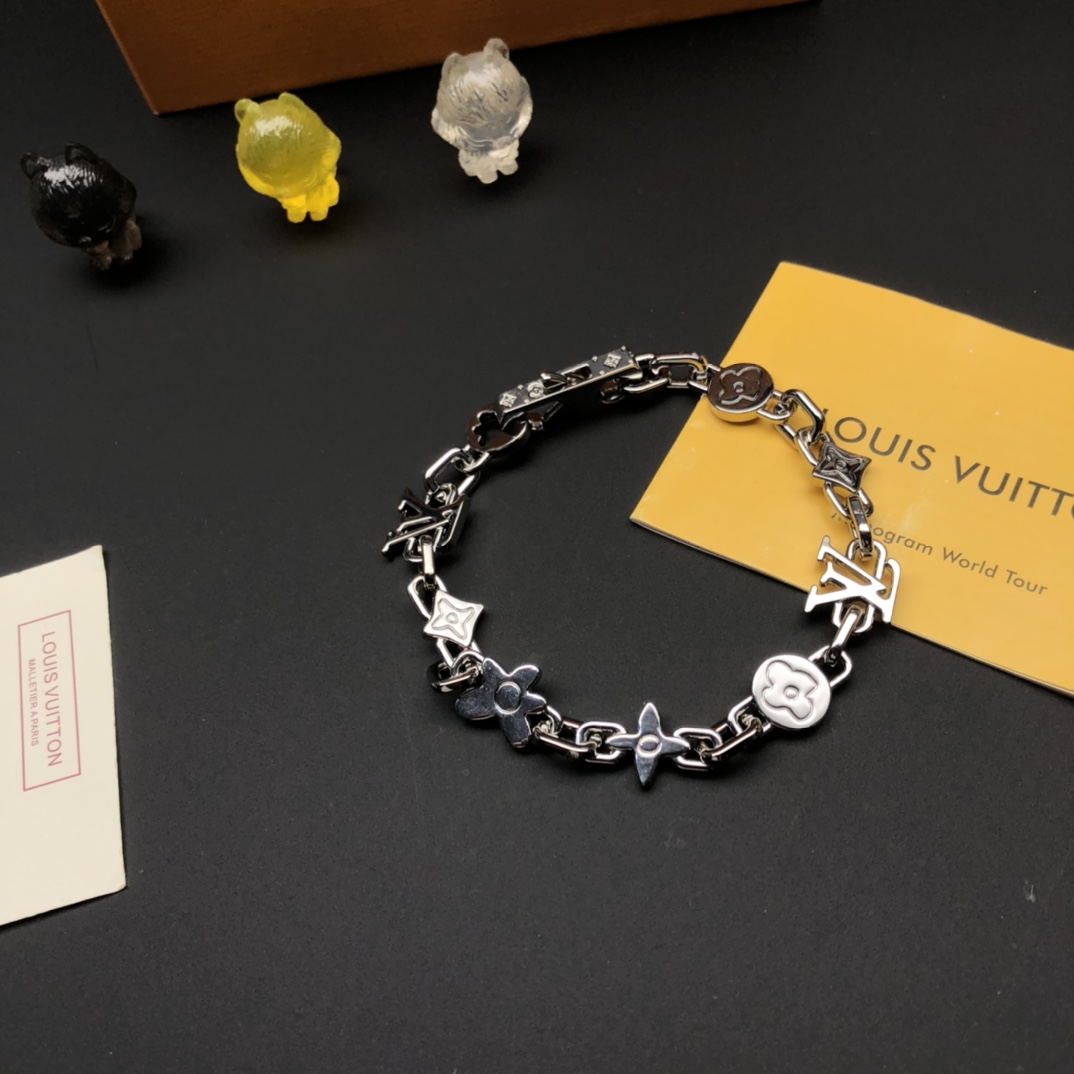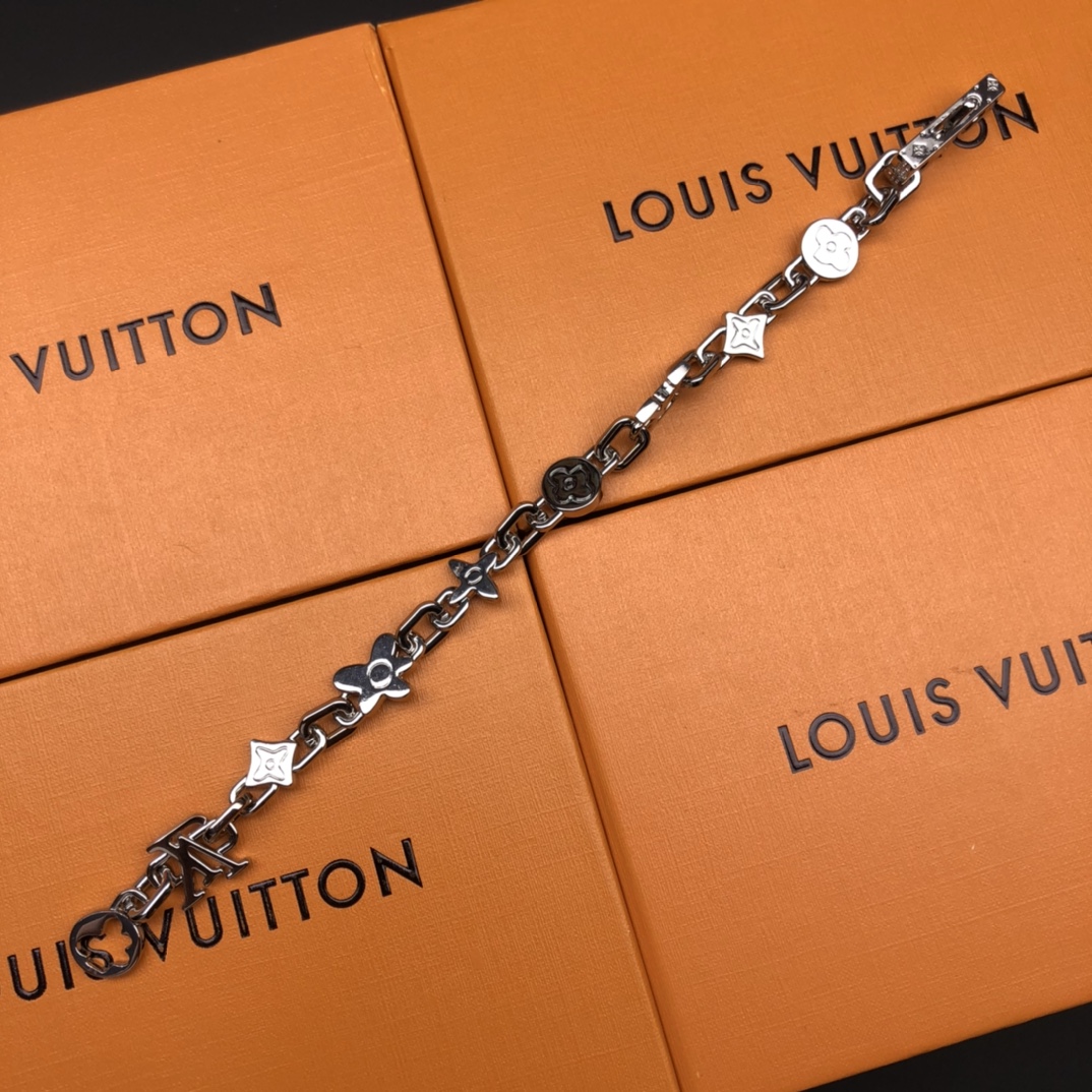 Louis Vuitton Monogram Craggy Silver Bracelet with Brass Hardware, 21cm