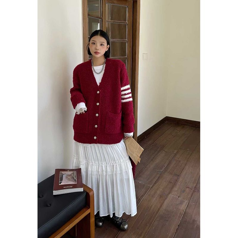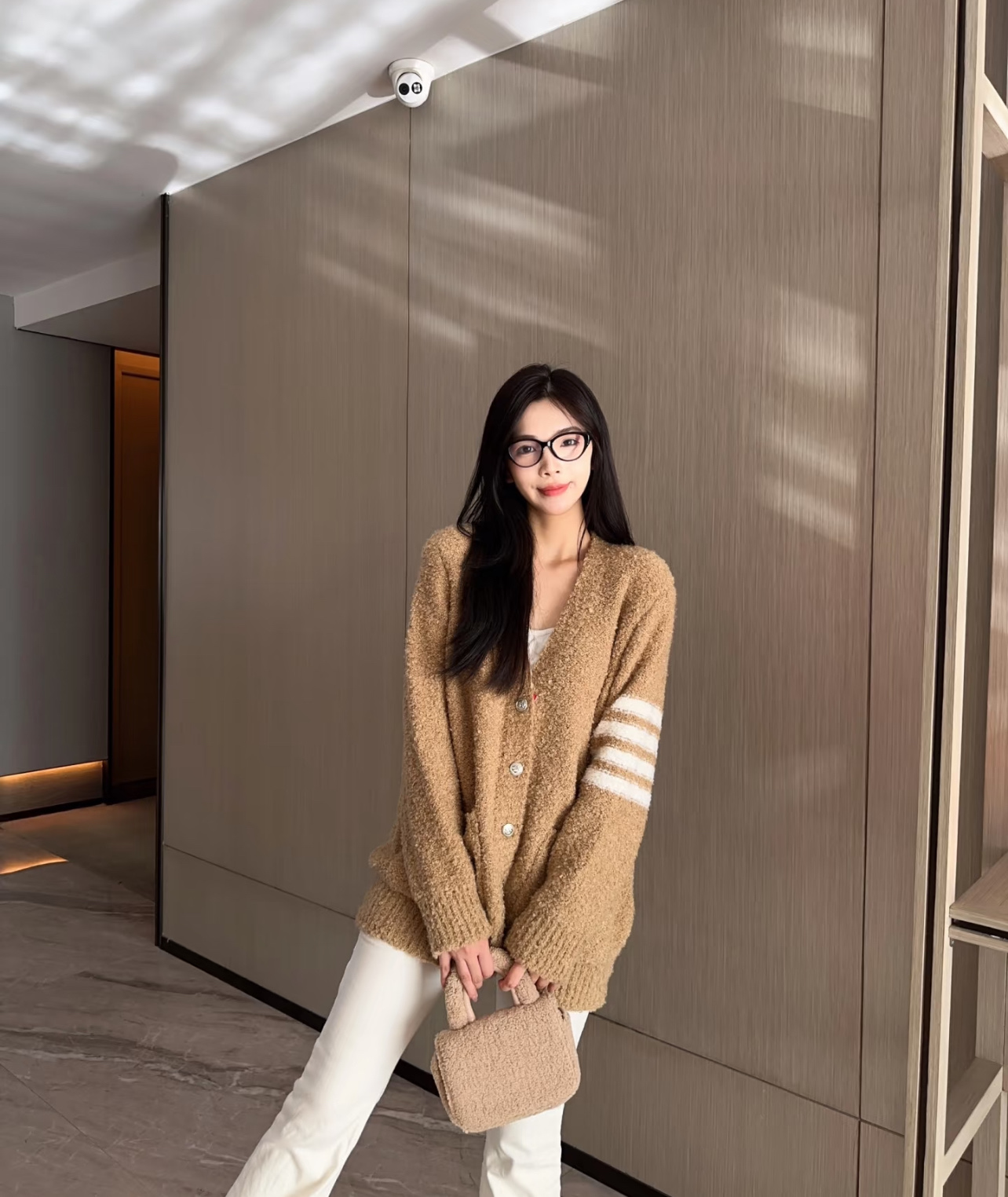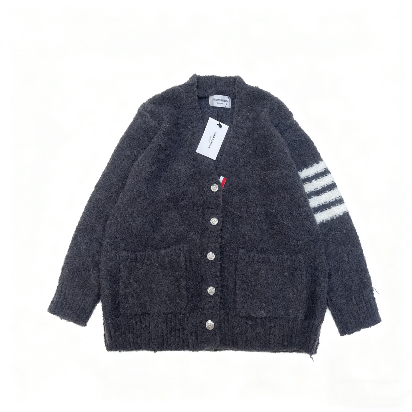 I absolutely love this cardigan! The loop yarn is so soft and cozy, and the four-bar design is classic Thom Browne. It fits perfectly and looks great with everything.