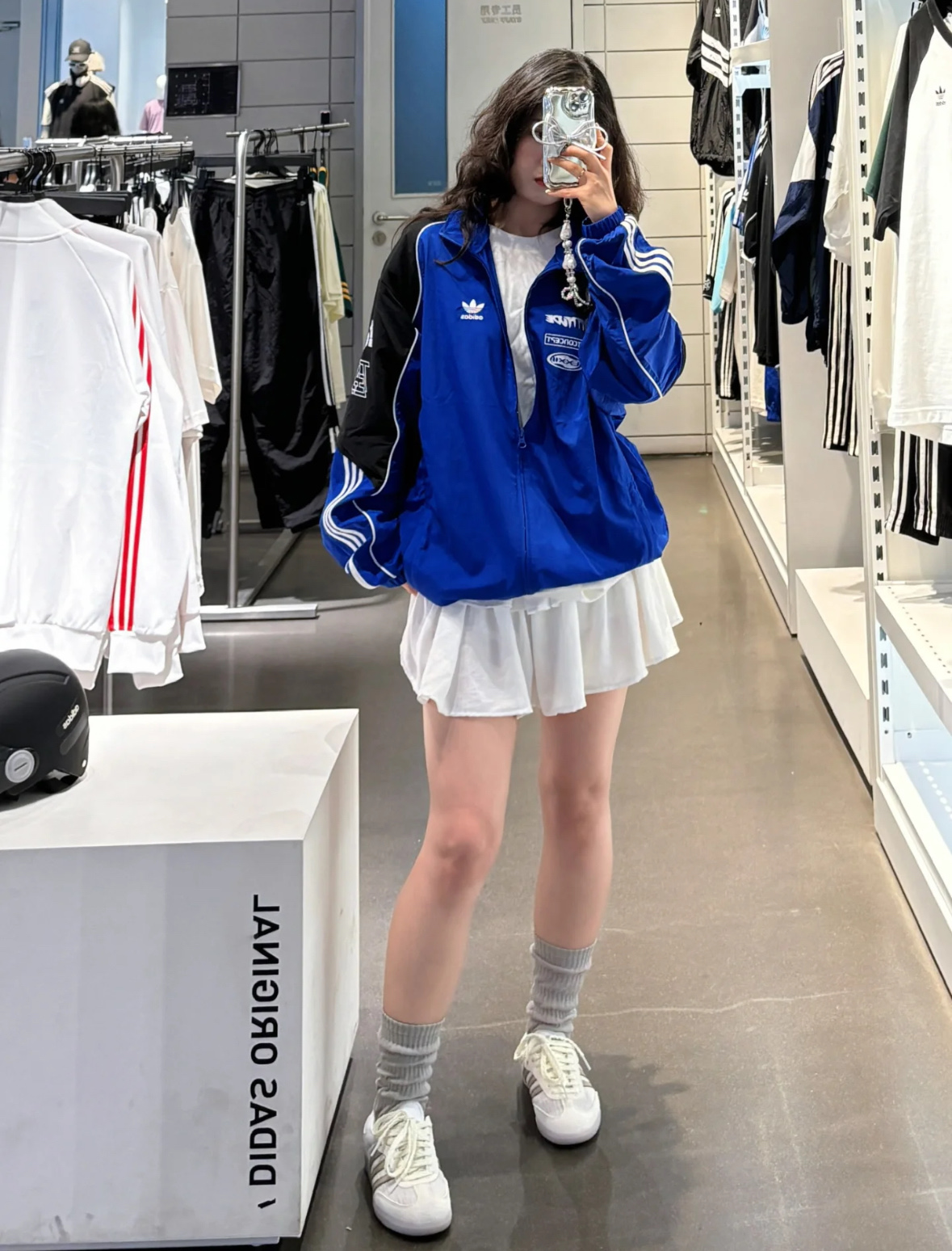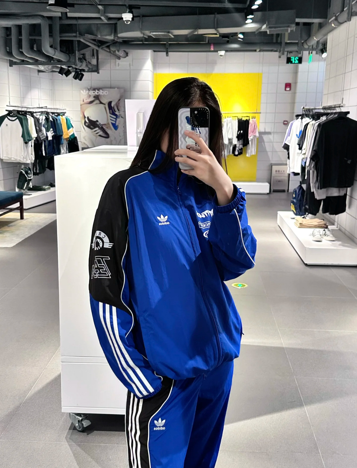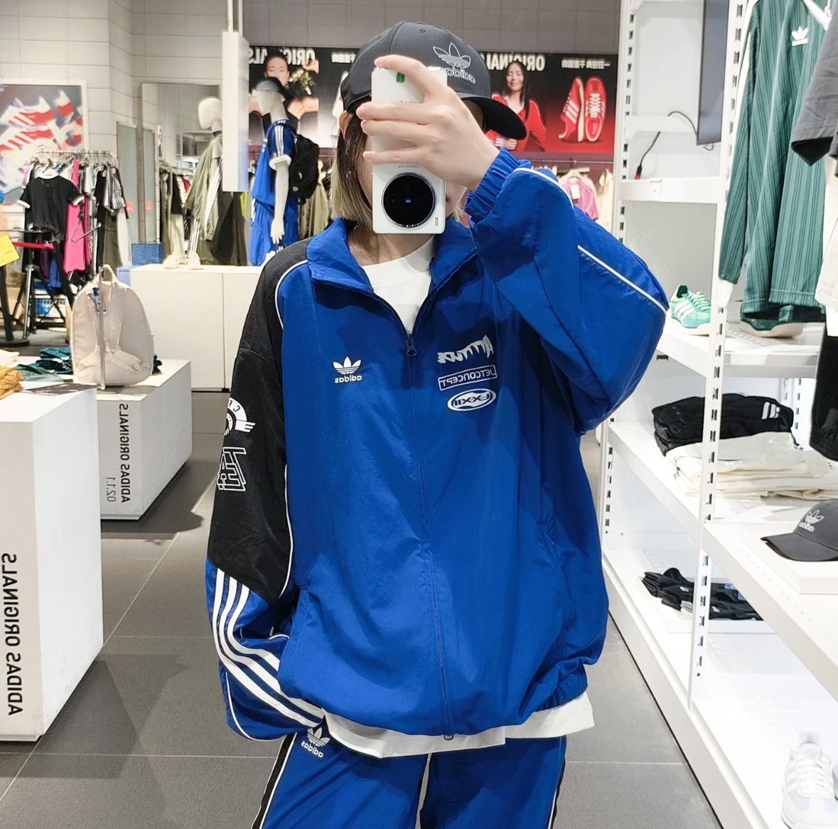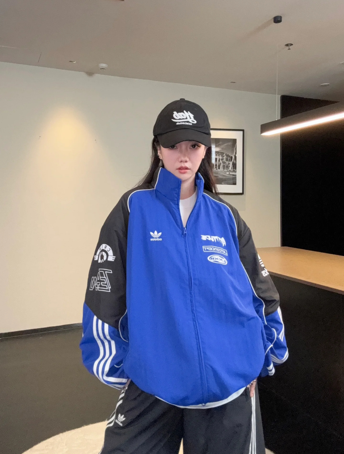 This Adidas windbreaker jacket is designed for those who appreciate motorsport aesthetics and comfortable everyday wear.