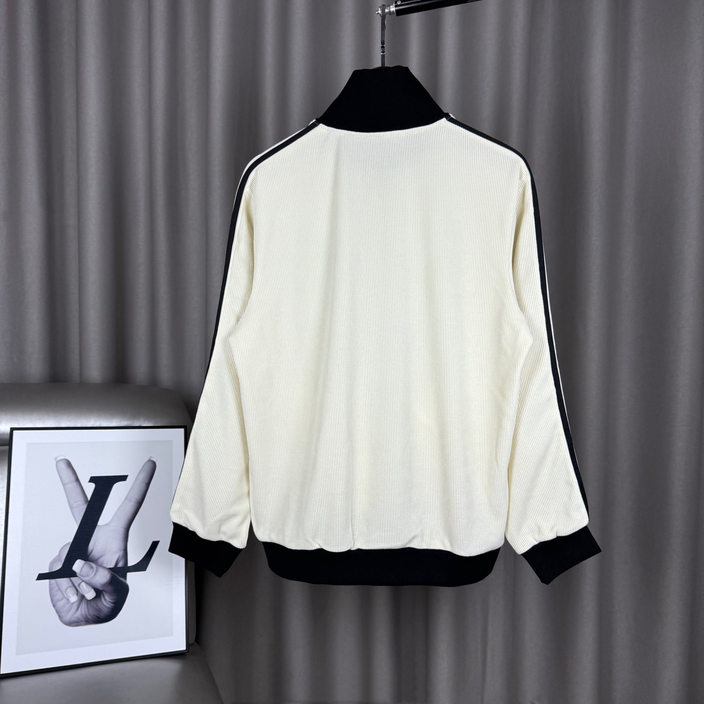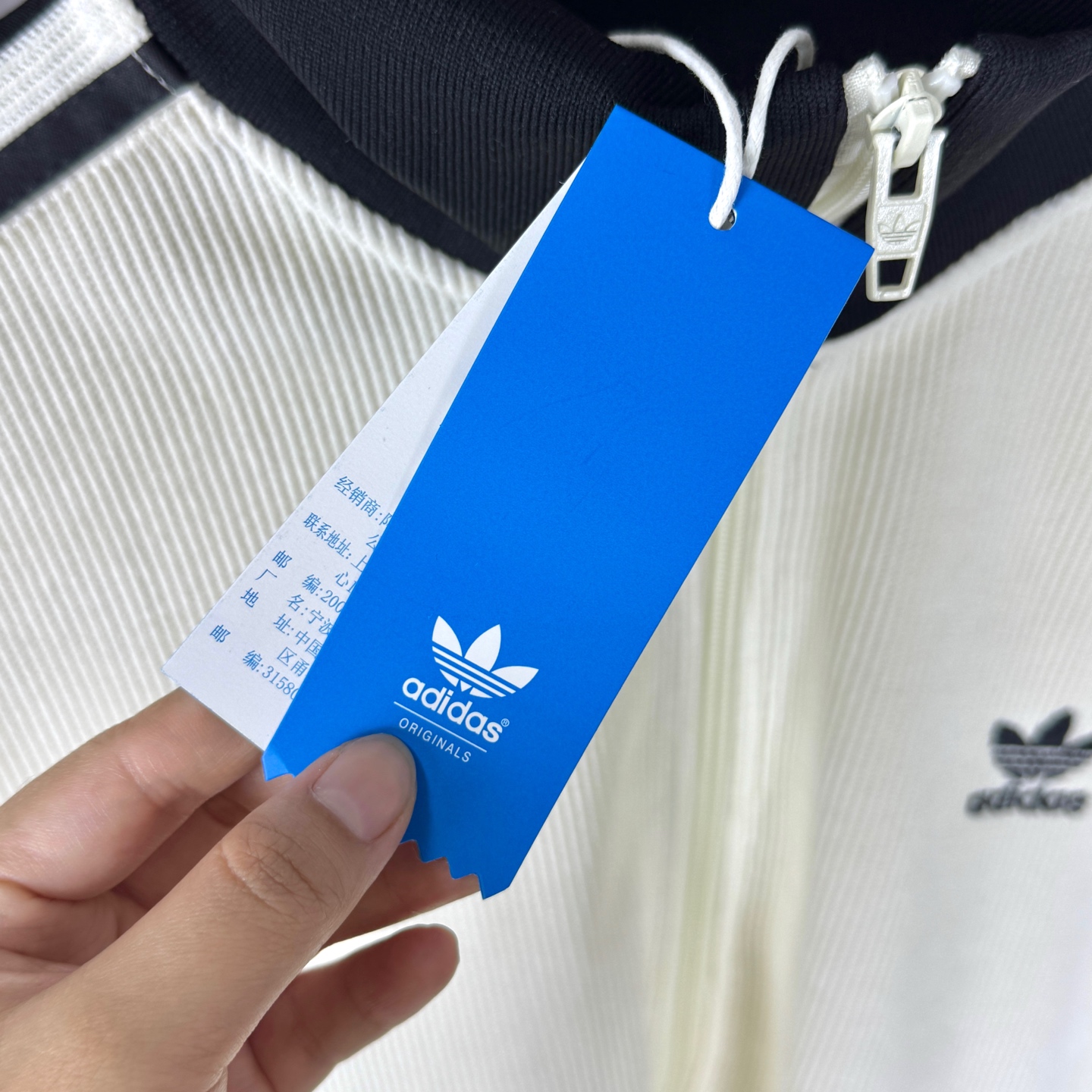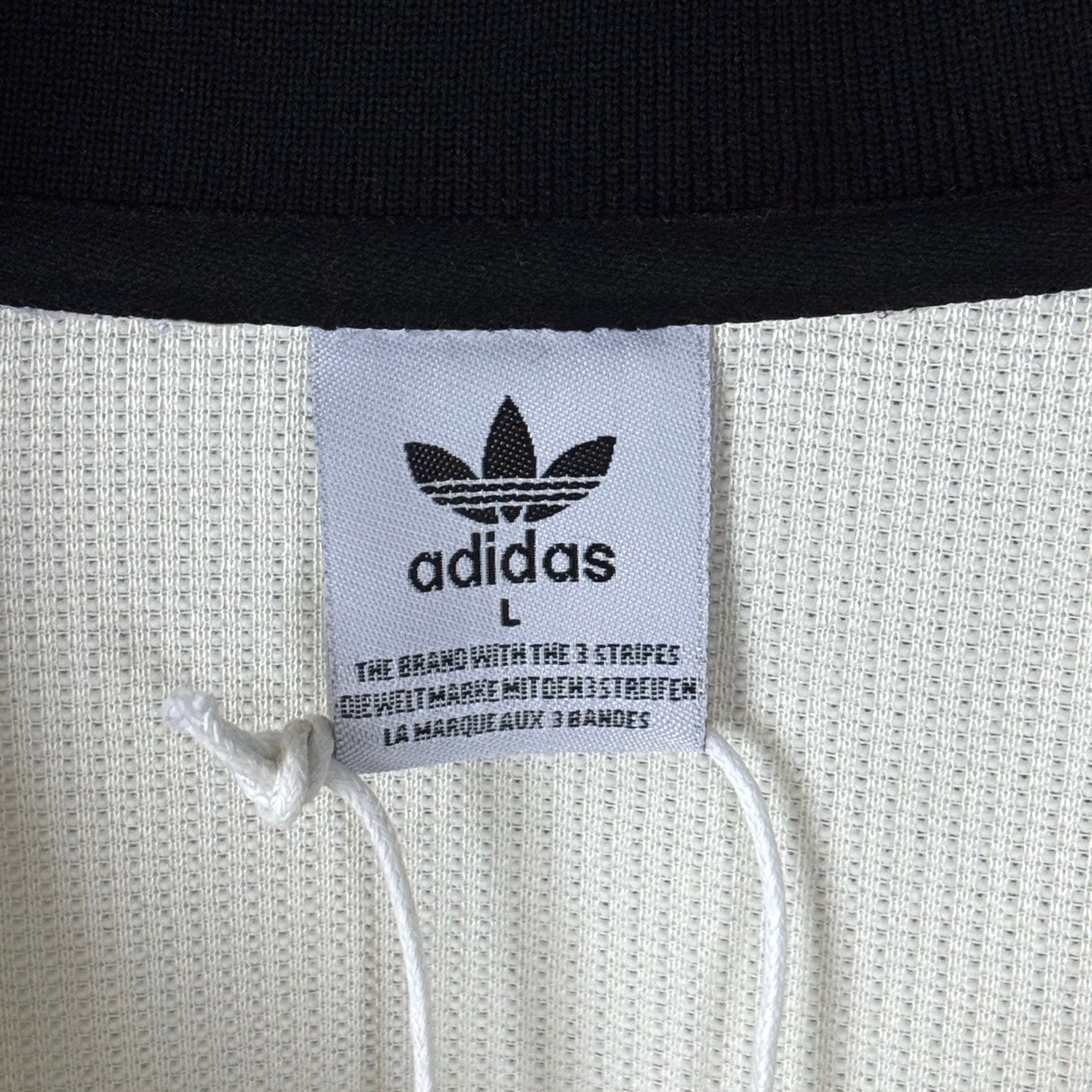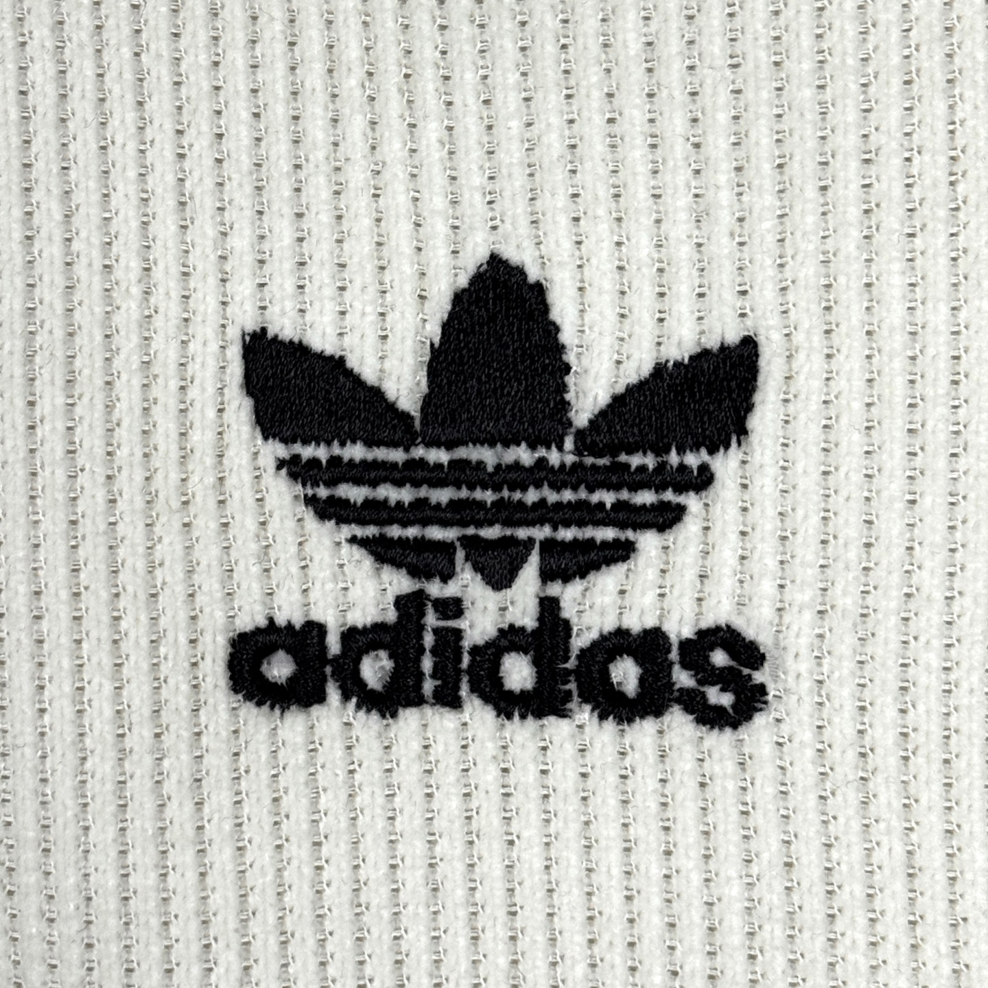 Retro-inspired Adidas track jacket with waffle knit texture, embroidered logo, and classic three-stripe design. Perfect for a relaxed, stylish look.