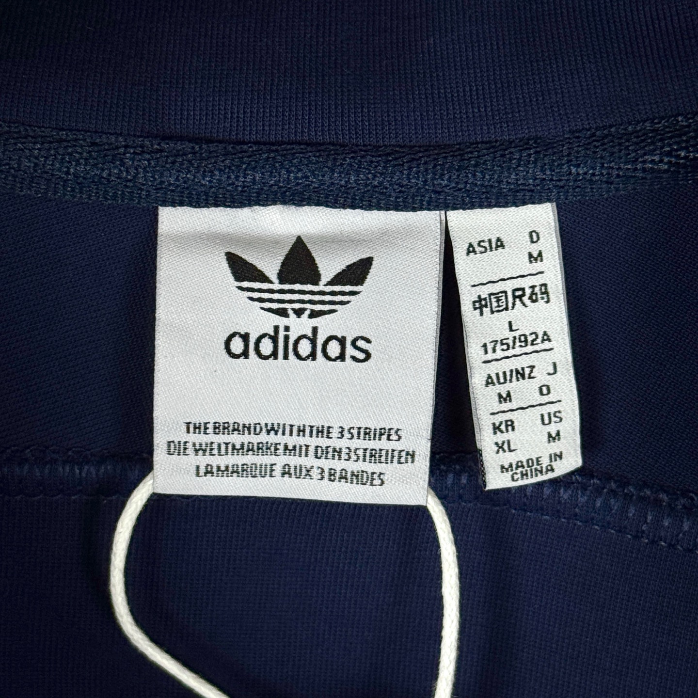 Classic Adidas track jacket with embroidered Trefoil logo, full zip, and iconic three stripes. Comfortable and stylish for any occasion
