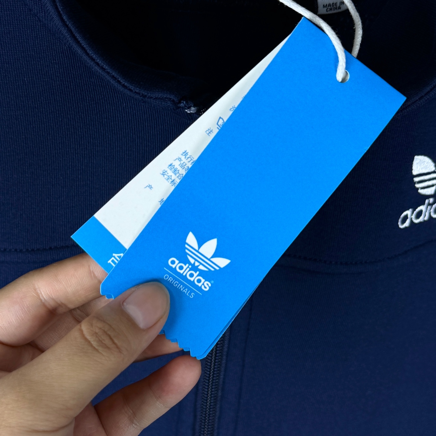 Adidas Trefoil Logo Embroidered Zip-Up Track Jacket - Navy Blue