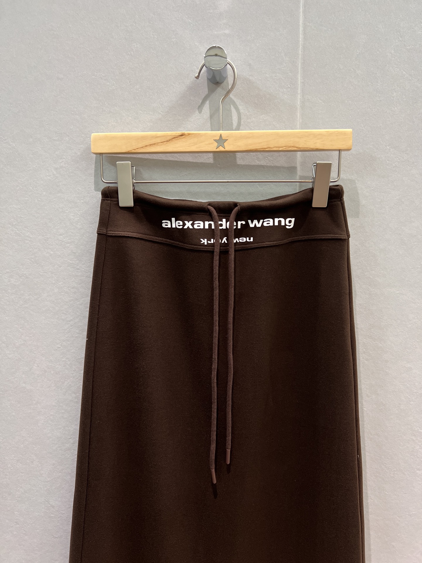 Alexander Wang Logo Print Drawstring Waist A-Line Midi Skirt,Casual Style