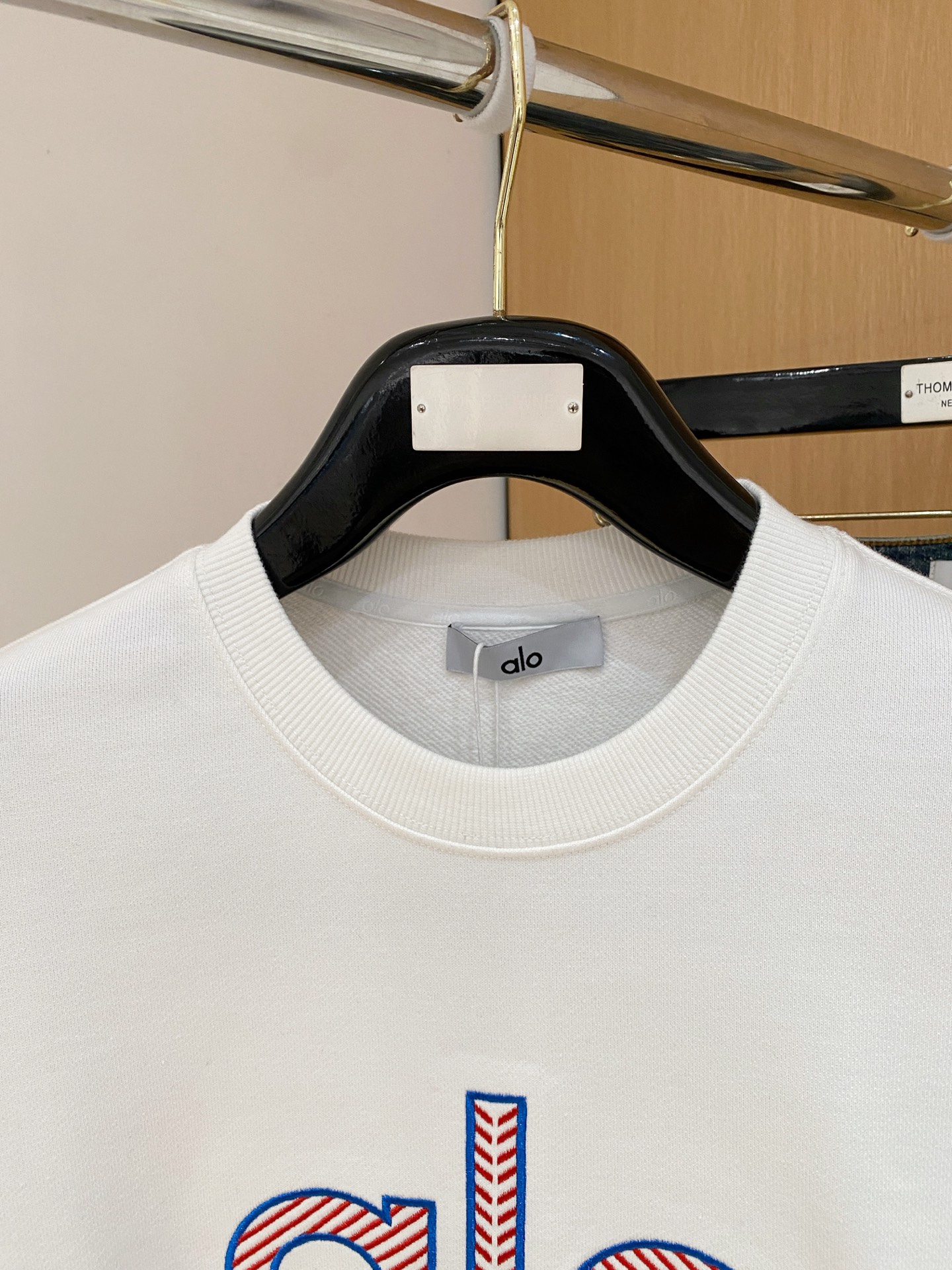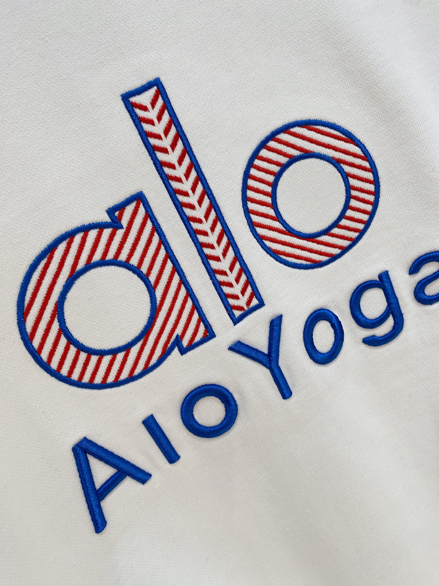 Alo Yoga Embroidered Logo Sweatshirt, Unisex Round Neck Pullover Top