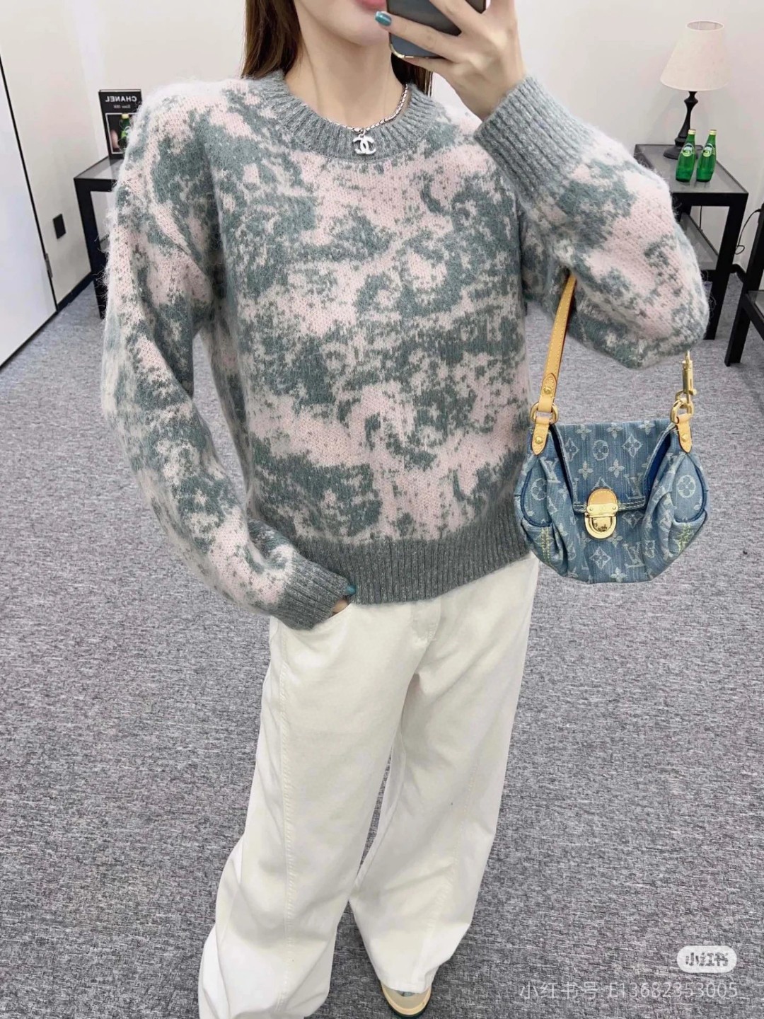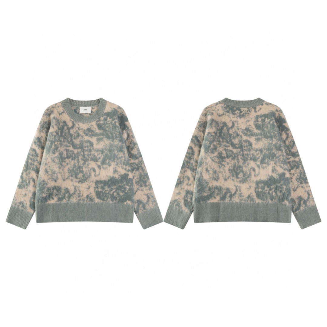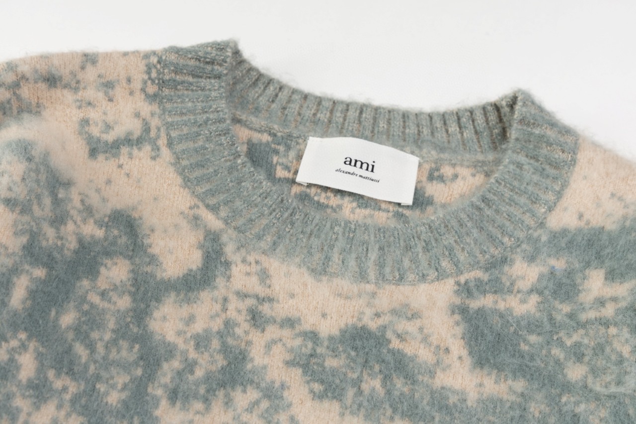 AMI Paris Watercolor Print Crew Neck Sweater, 85% Wool Blend - Soft & Stylish