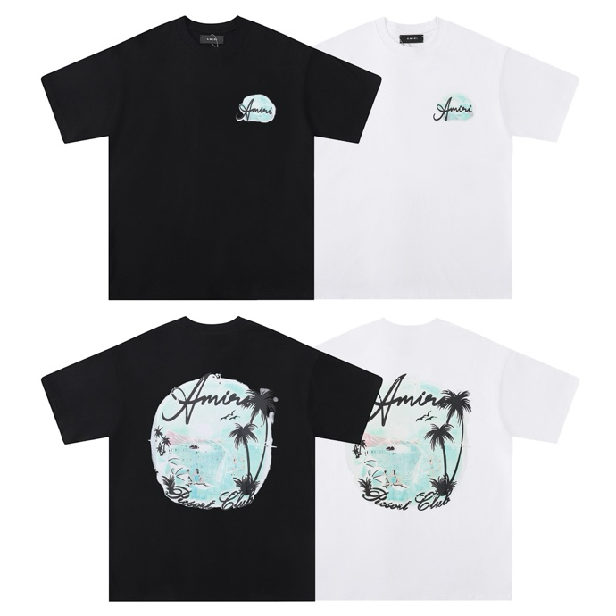 Amiri 2025 Spring/Summer Round Neck T-Shirt High Street Unisex Loose Fit Short Sleeve