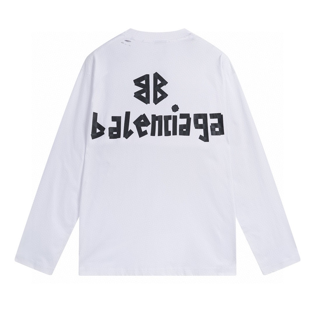 Elevate your casual look with this Balenciaga long sleeve tee featuring a bold logo print and premium cotton fabric.