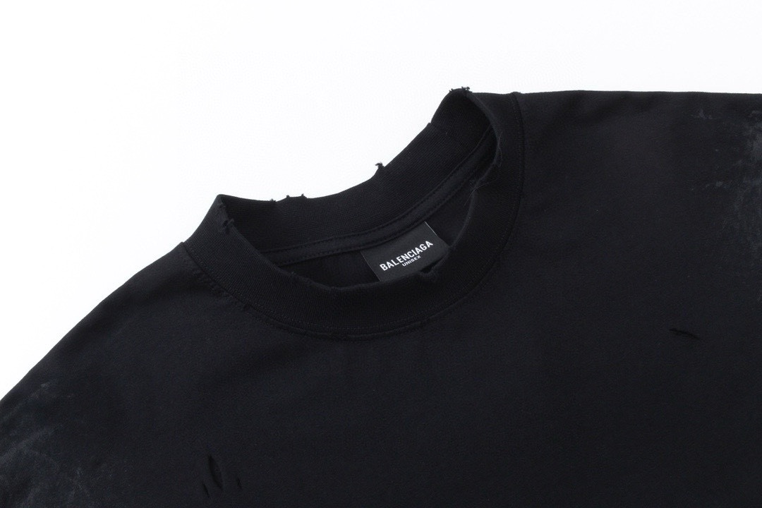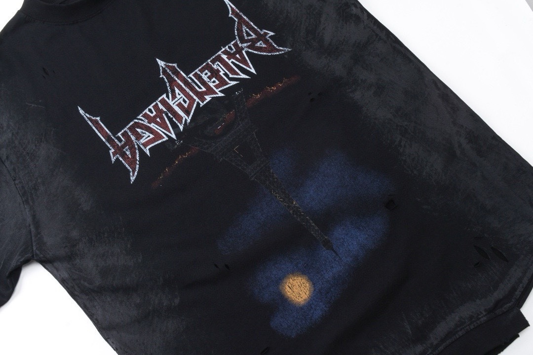 Balenciaga 2025 SS Inverted Eiffel Tower Inkjet Graffiti Distressed T-Shirt