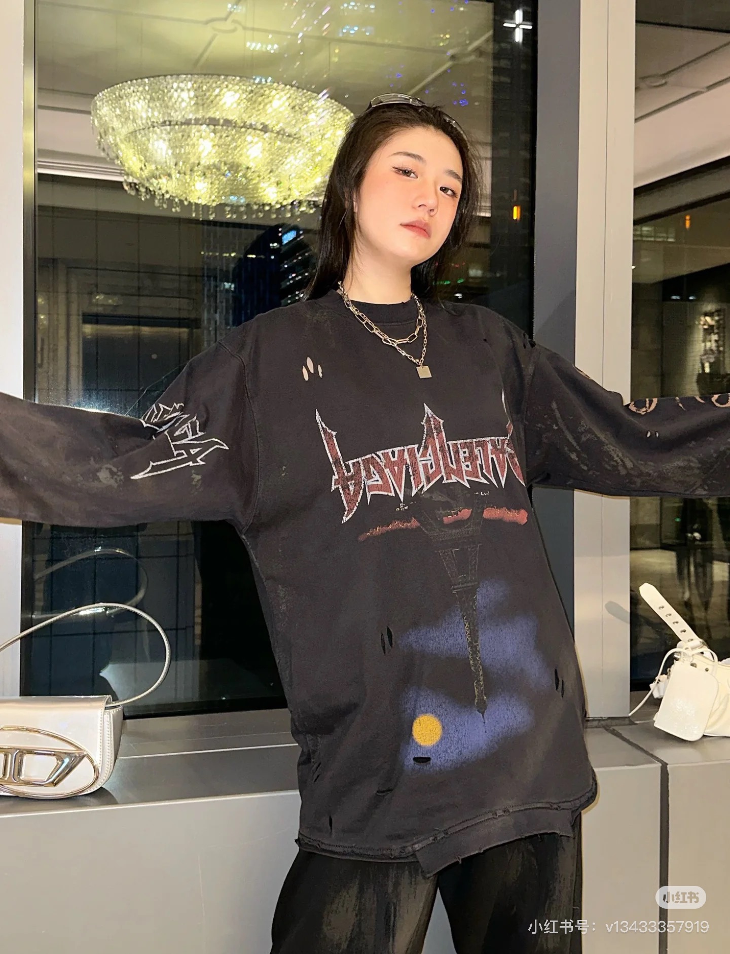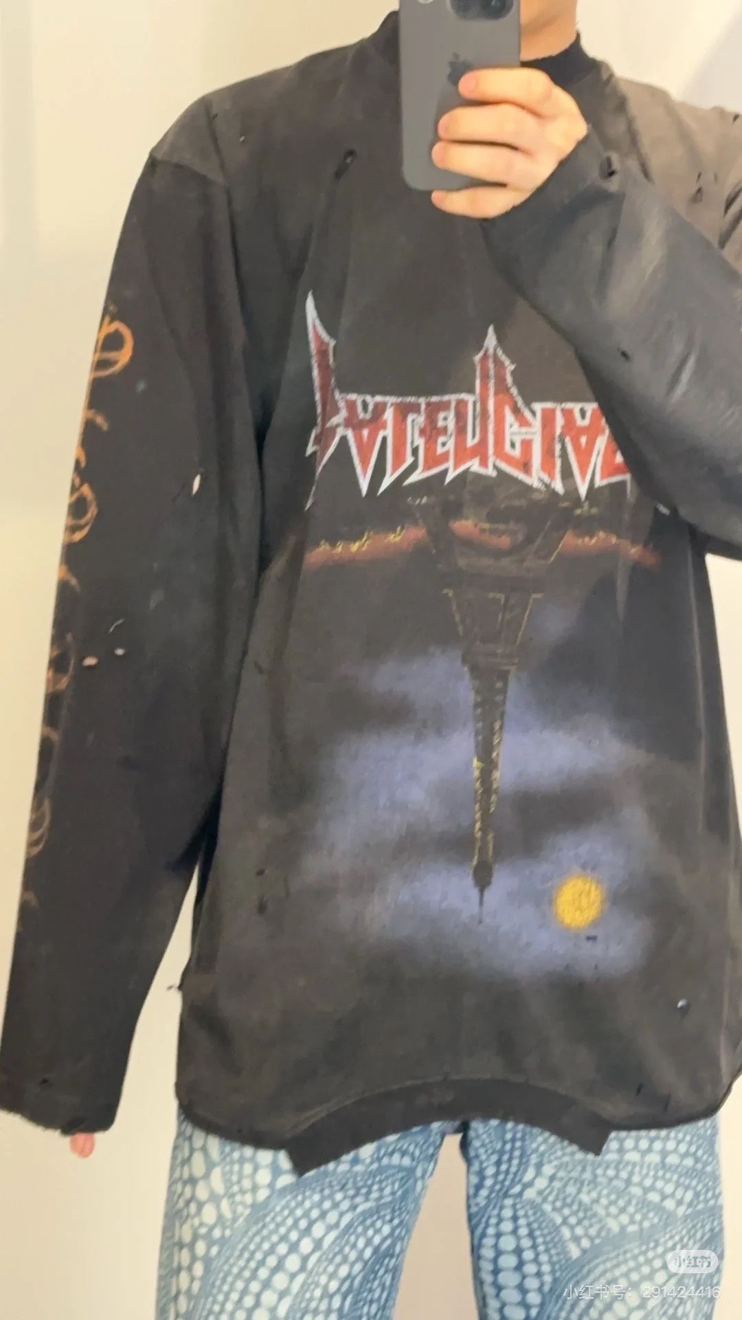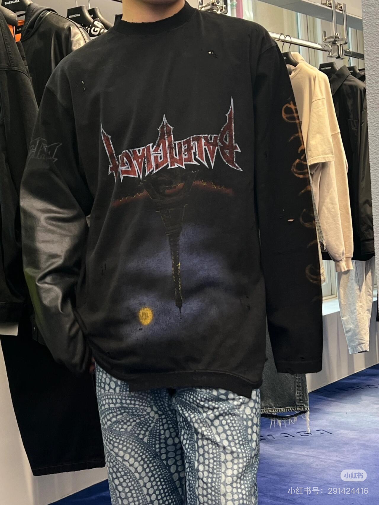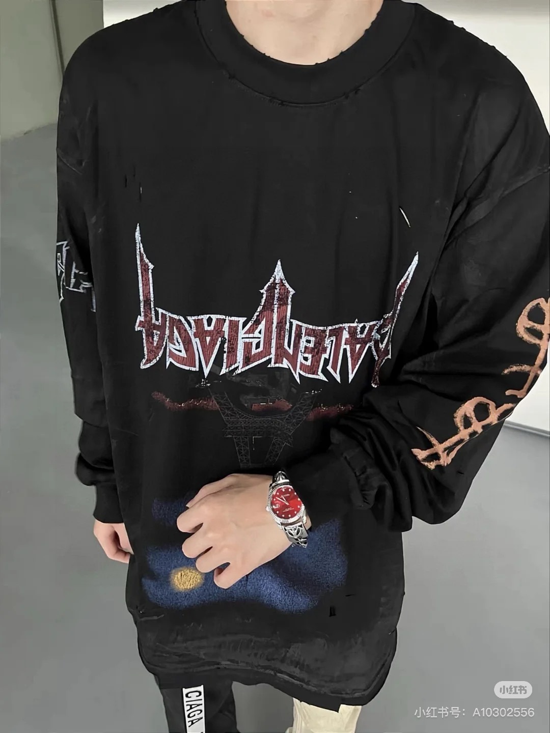 This Balenciaga long sleeve t-shirt is a statement piece that blends high fashion with streetwear aesthetics.
