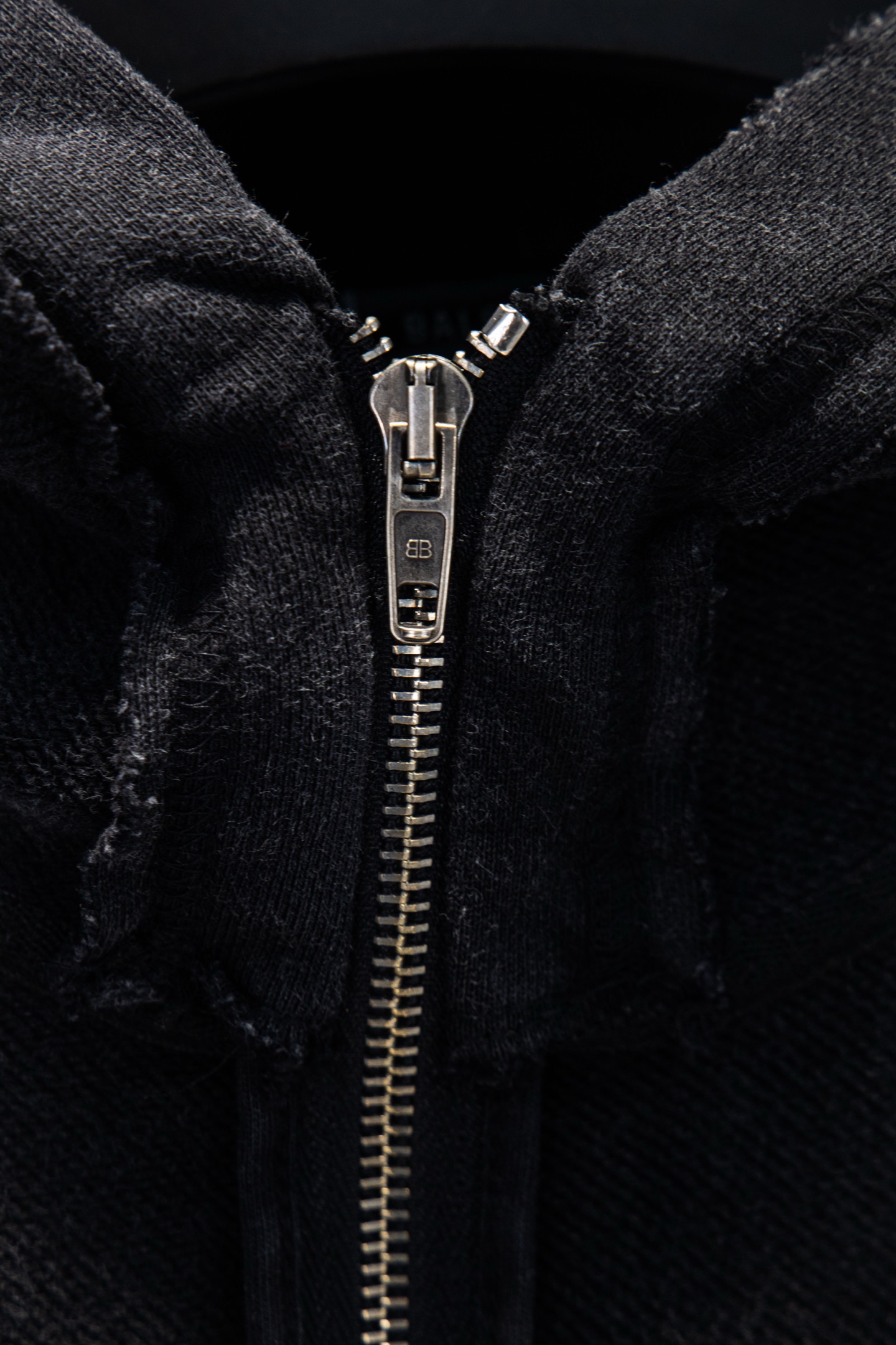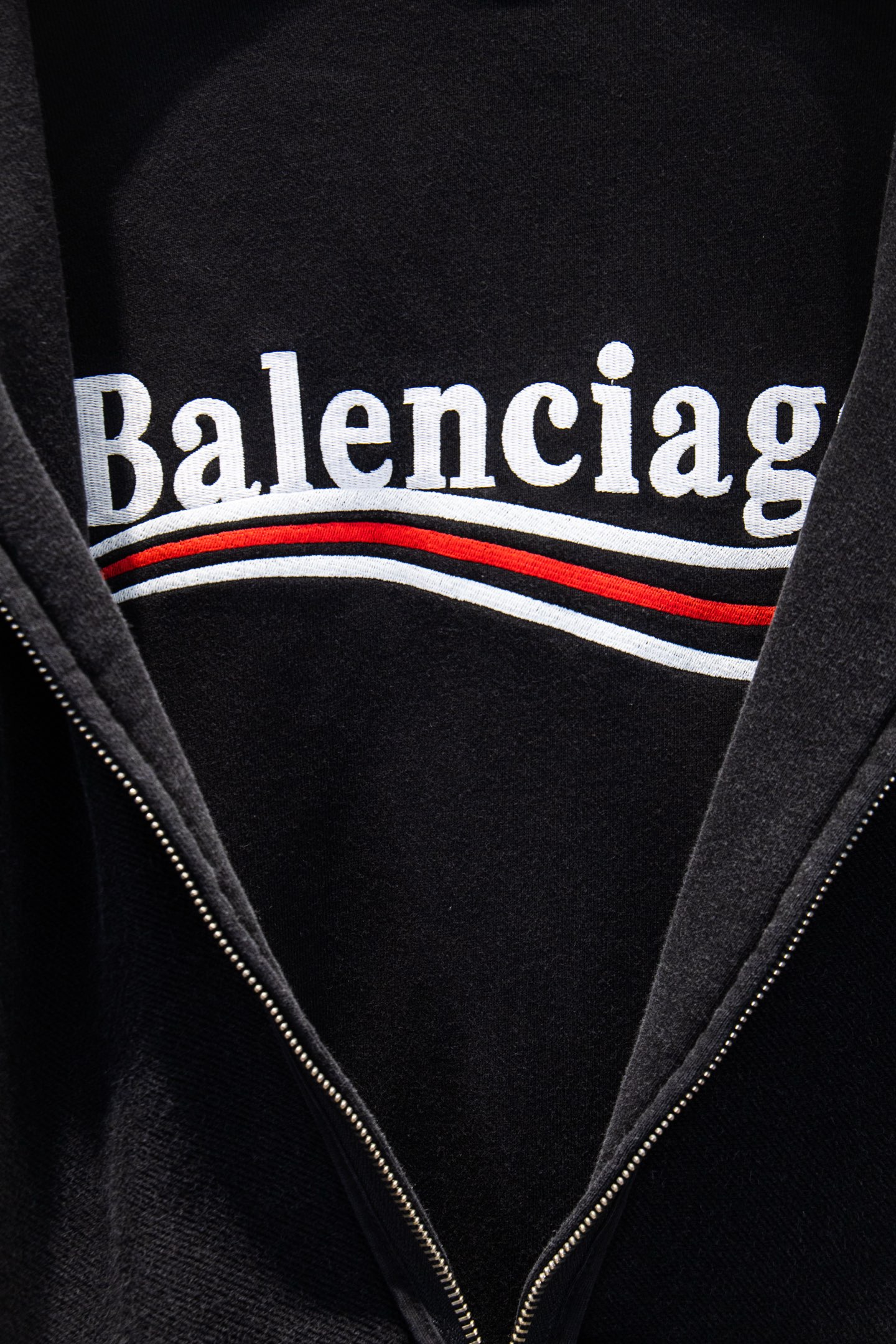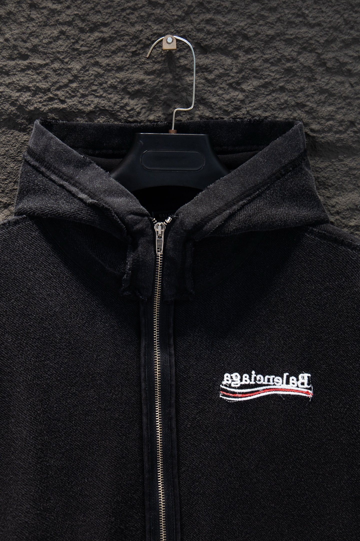 Balenciaga Distressed Embroidered Zip-Up Hoodie Oversized Fit - Washed Black
