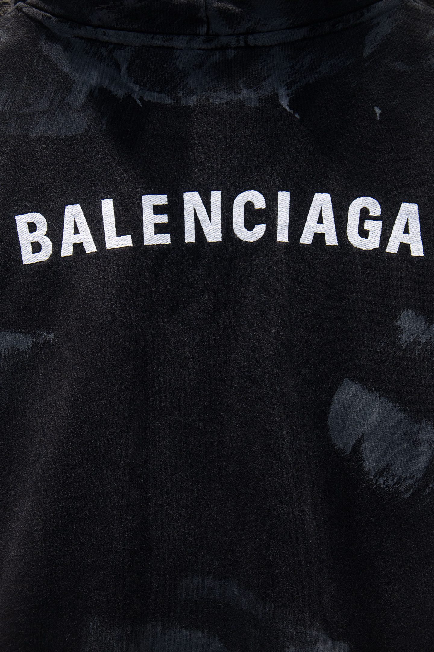 Balenciaga Distressed Graffiti Print Hoodie, Oversized Fit, Black