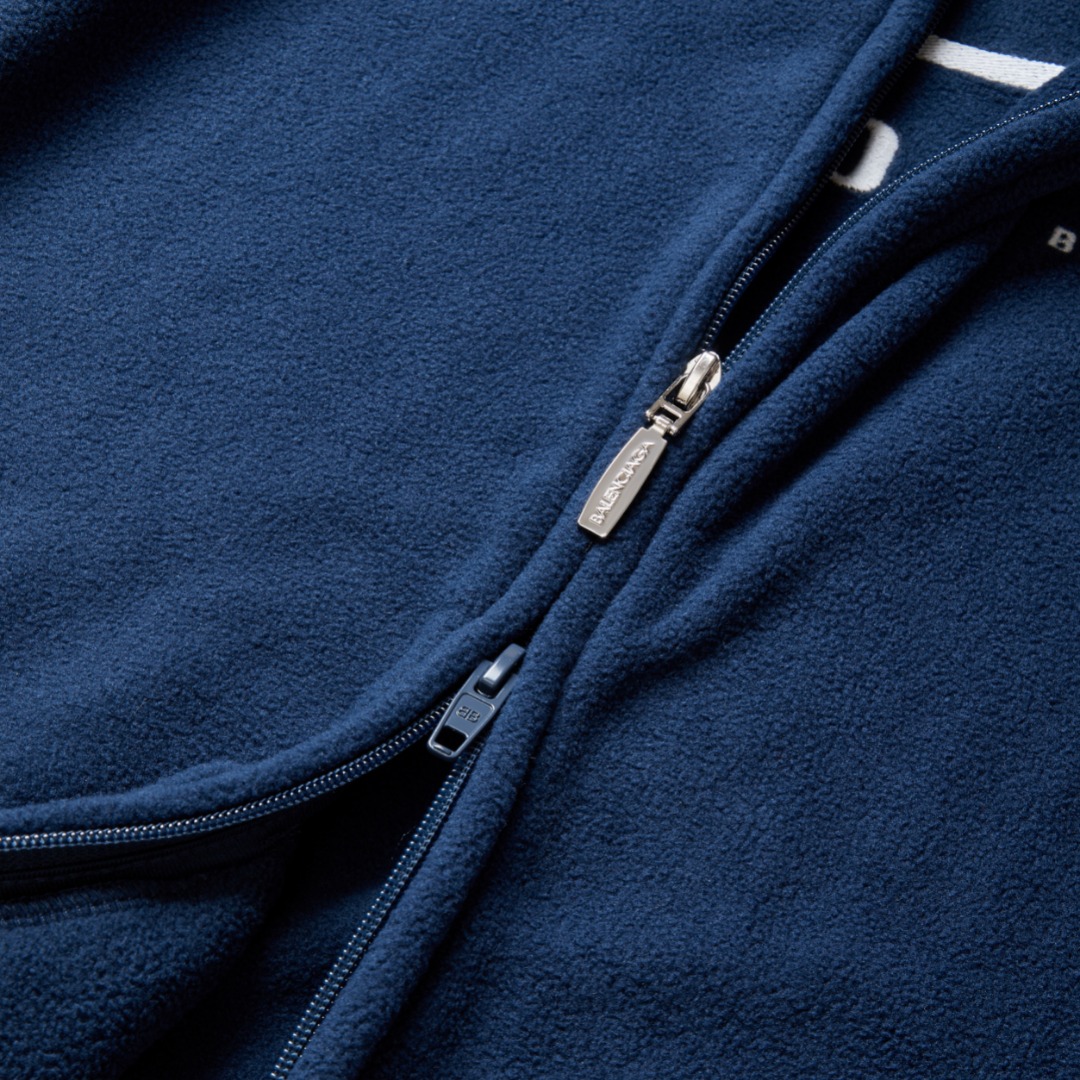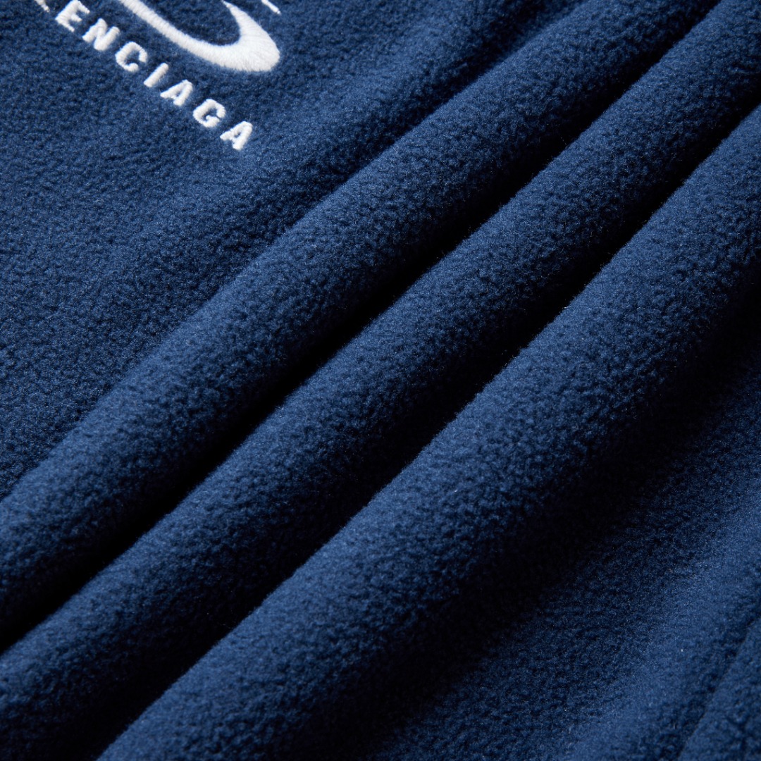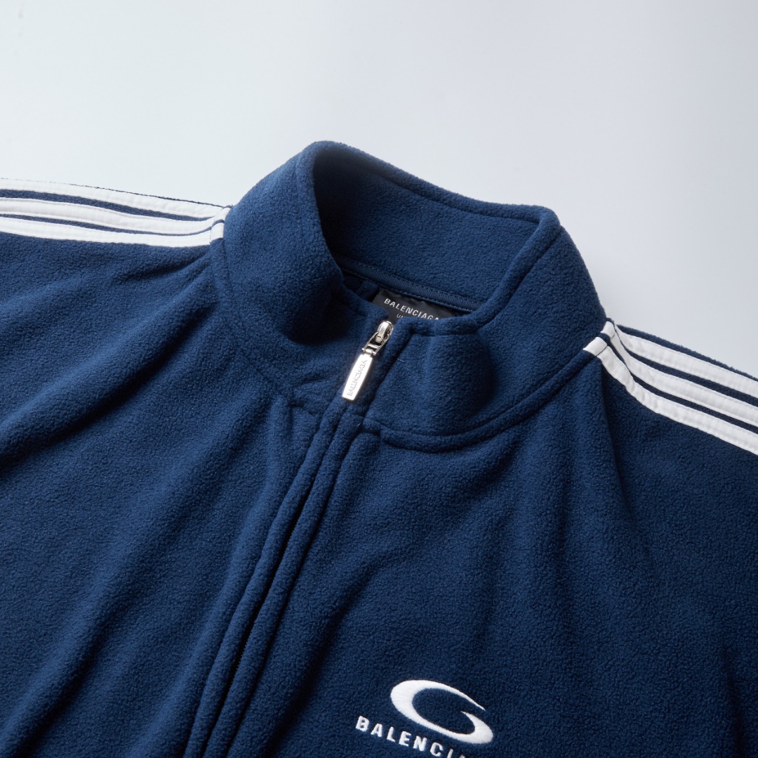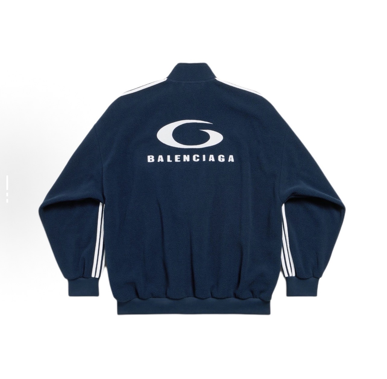 Balenciaga FW25 stand collar fleece jacket with signature five-bar design. Comfortable, stylish, and unisex. Perfect for a trendy, oversized fit.