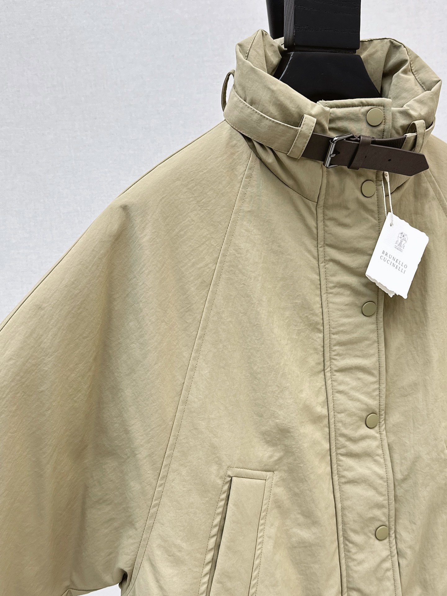 Brunello Cucinelli Stand Collar Goose Down Padded Jacket Buckle Details