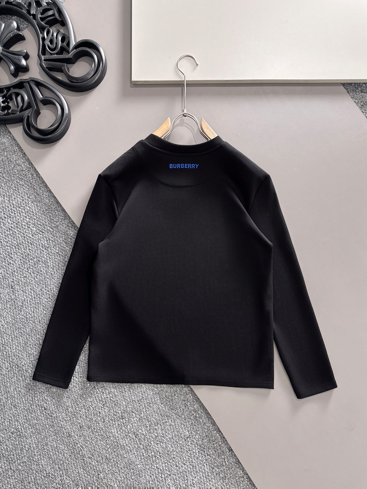 Burberry Men's Black Long Sleeve T-Shirt with Blue Logo - Casual & Stylish