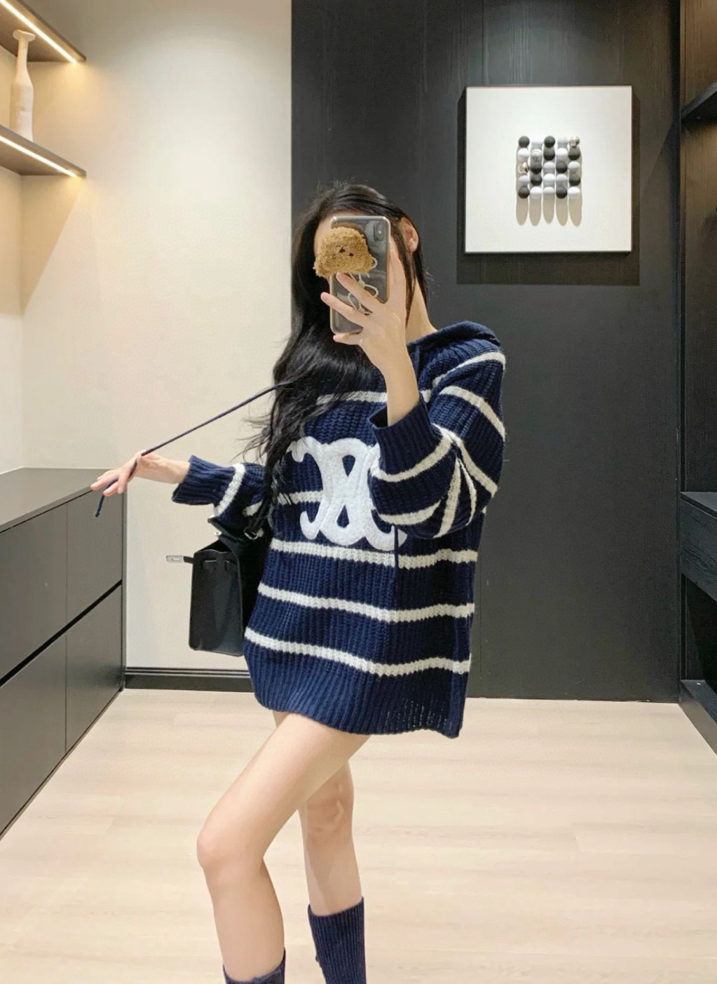 This hoodie is exactly what I was looking for! The quality is fantastic, and the knit is so soft. The stripes are classic and chic, and the oversized fit is perfect for layering. I highly recommend it!