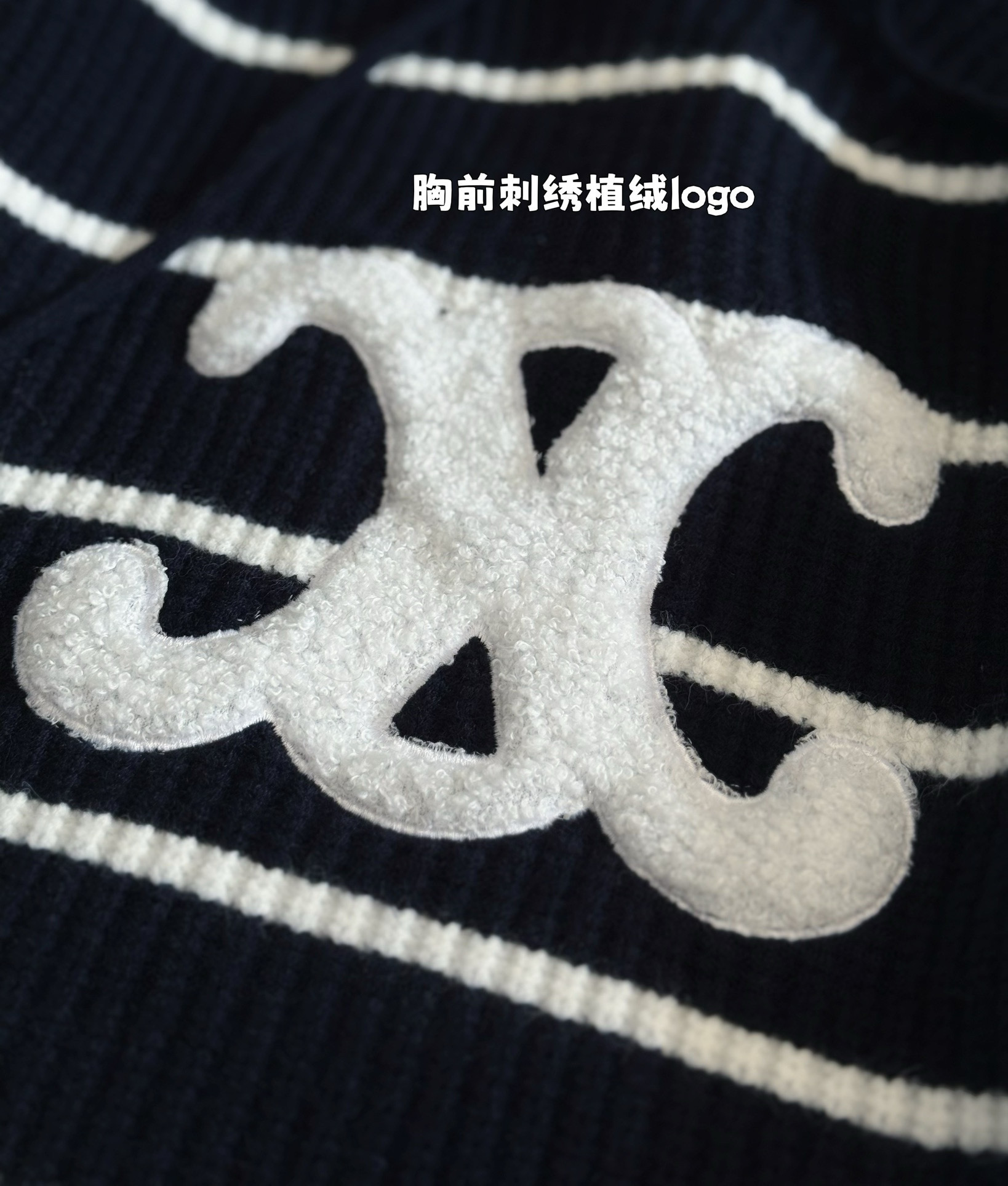 - Classic navy and white striped pattern