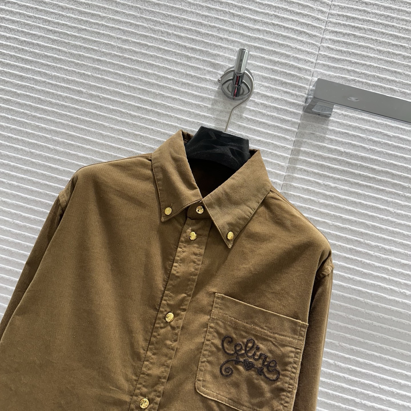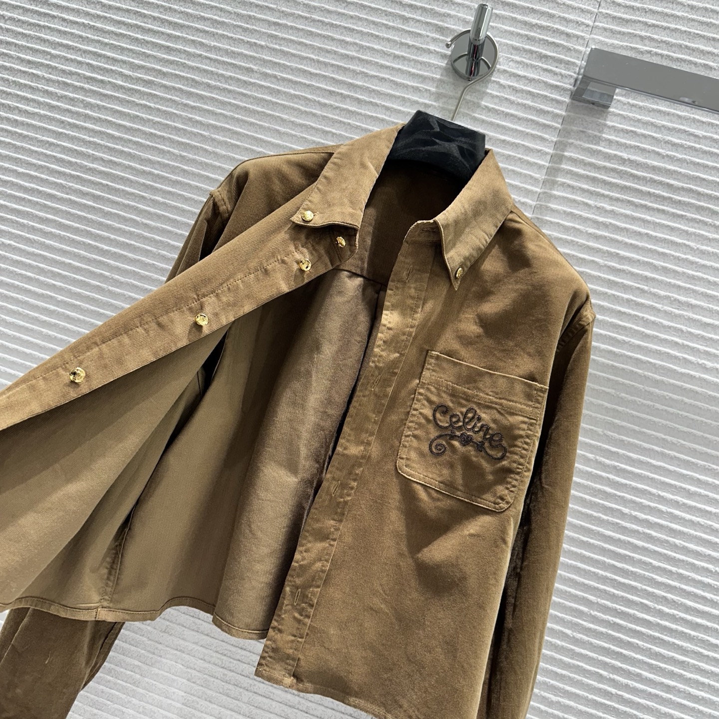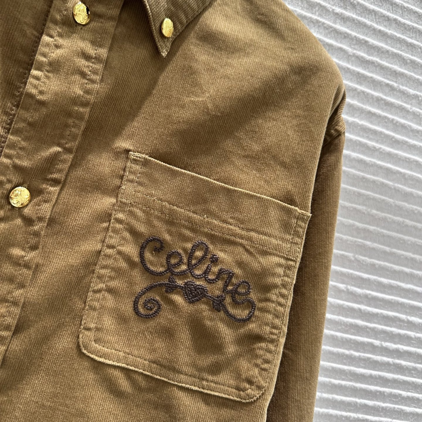 Elevate your style with this Celine corduroy crop shirt. Featuring a modern, cropped silhouette and luxurious corduroy fabric.