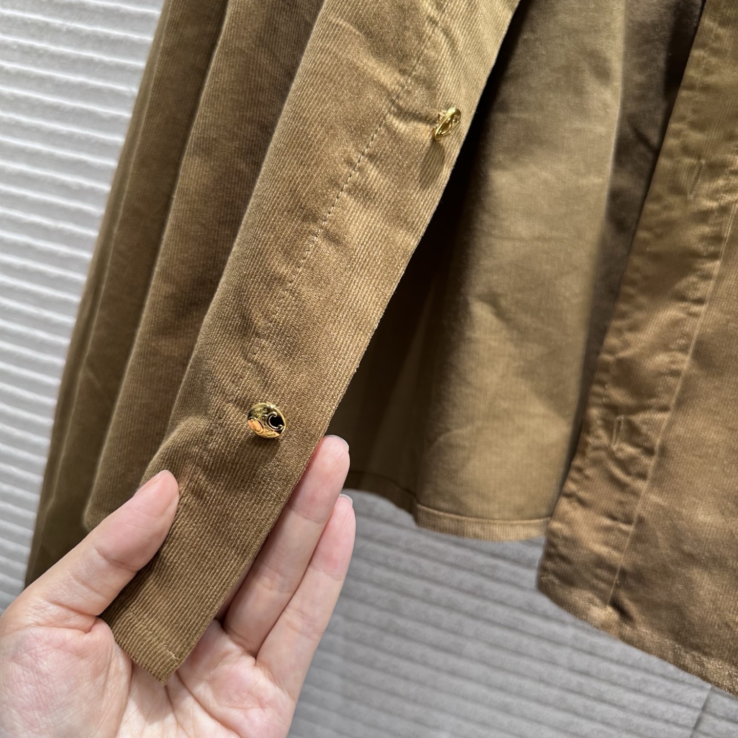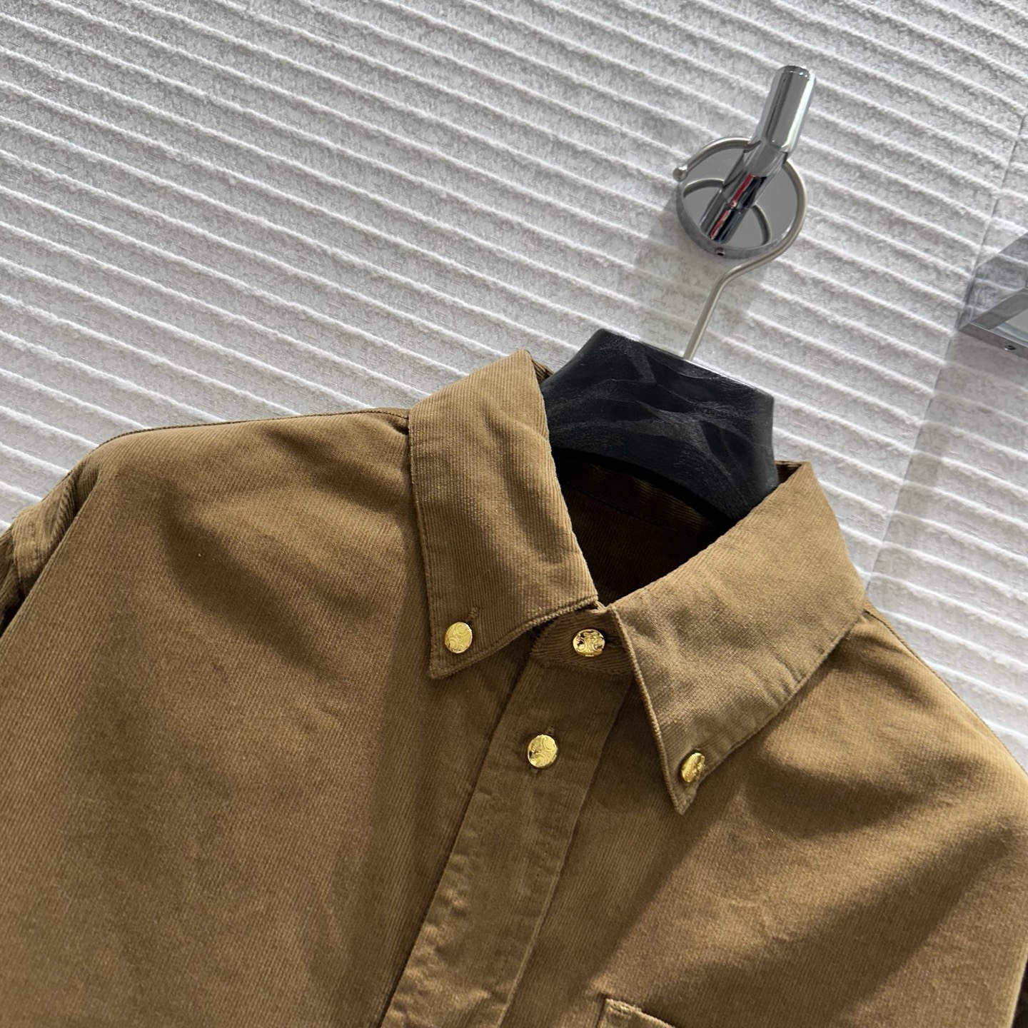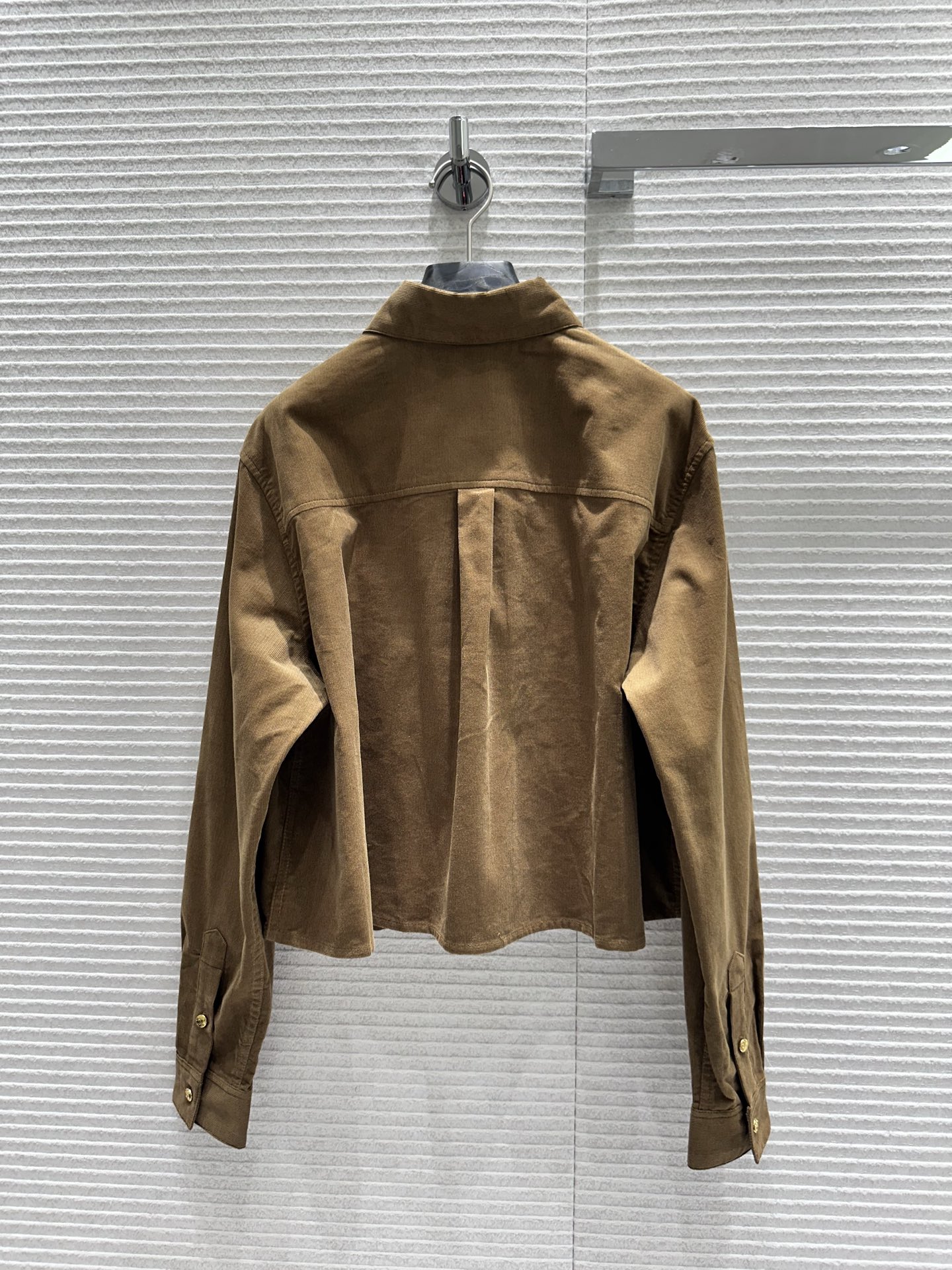 I adore this Celine crop shirt! The corduroy is so soft and the brown color is just gorgeous. It's perfect for layering and adds a touch of vintage chic to any outfit.