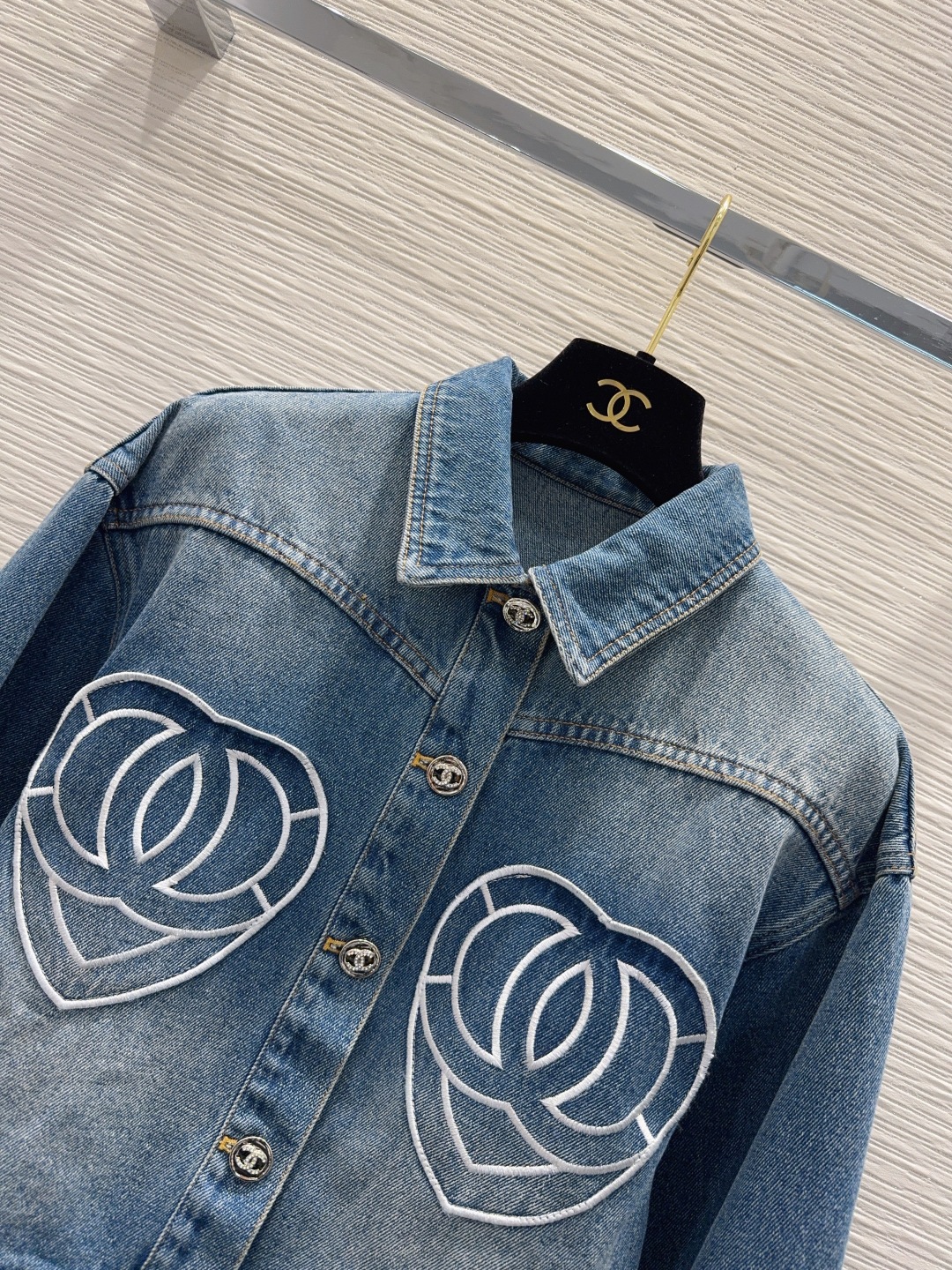 Introducing the Chanel 2025FW denim jacket, a perfect blend of classic style and modern fashion. This high-quality piece is designed to elevate your wardrobe with its unique details and superior craftsmanship.