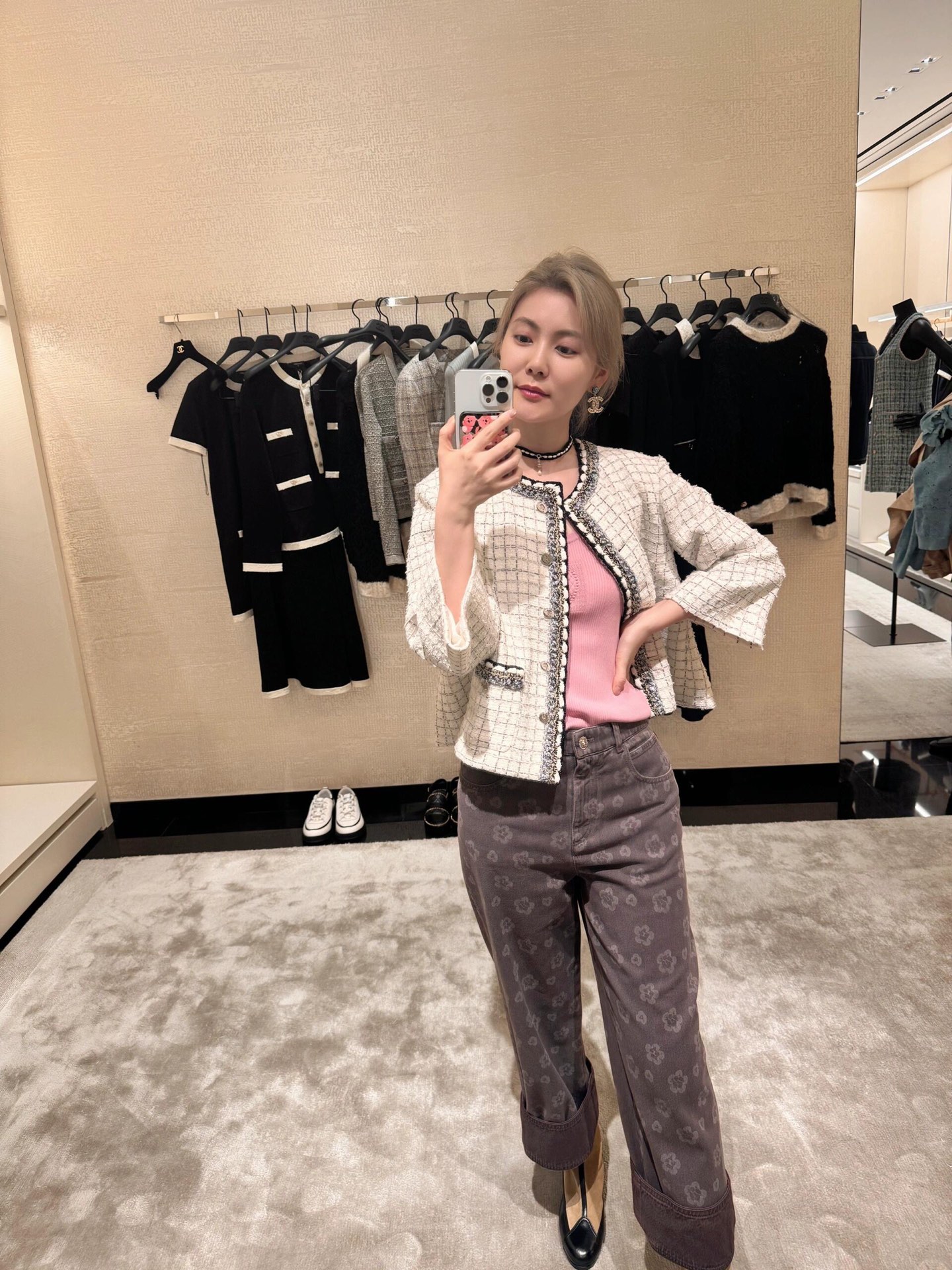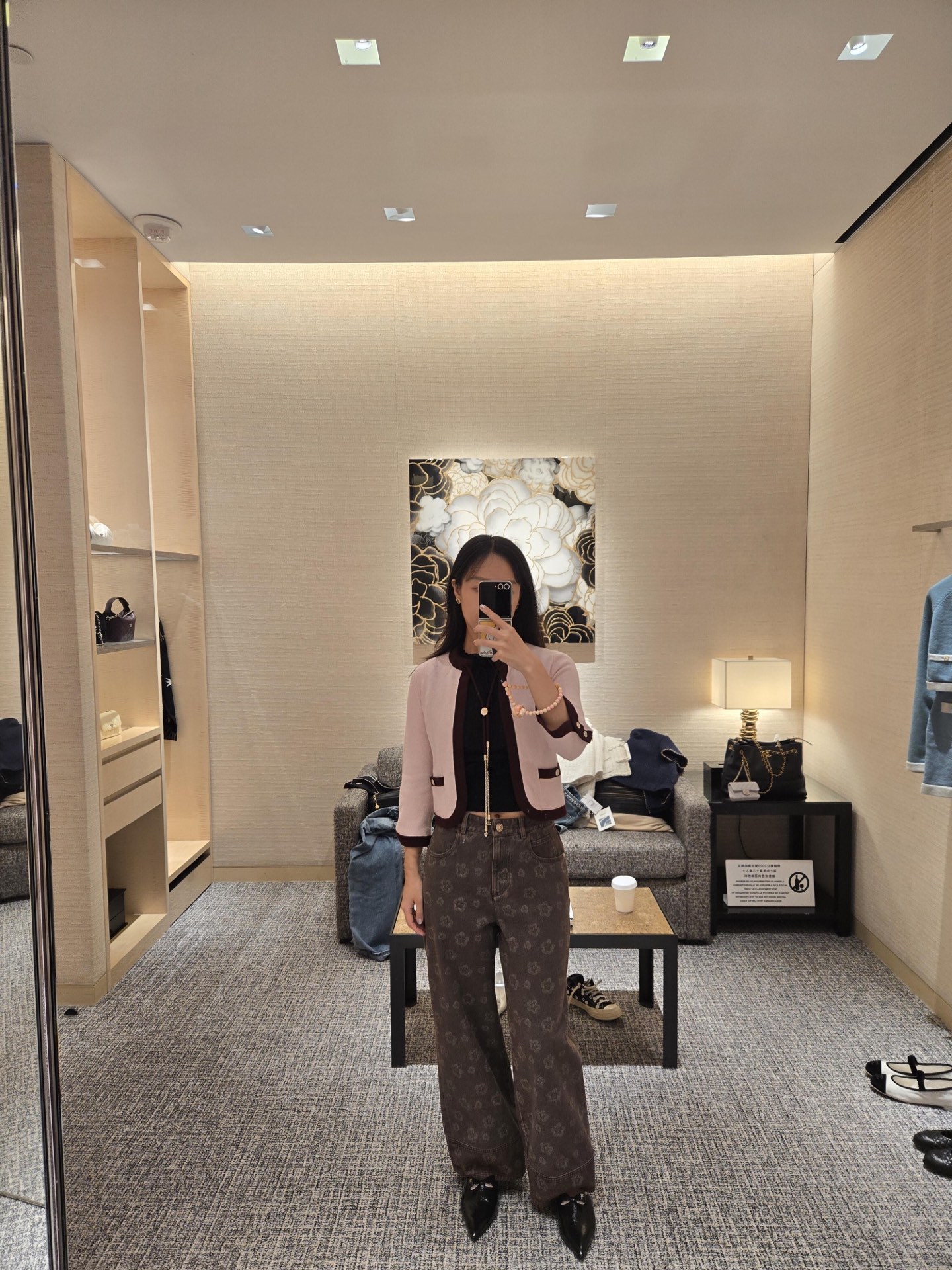 Elevate your wardrobe with these Chanel vintage floral print jeans. Straight leg design offers a flattering fit for any body type. Available in S, M, L.