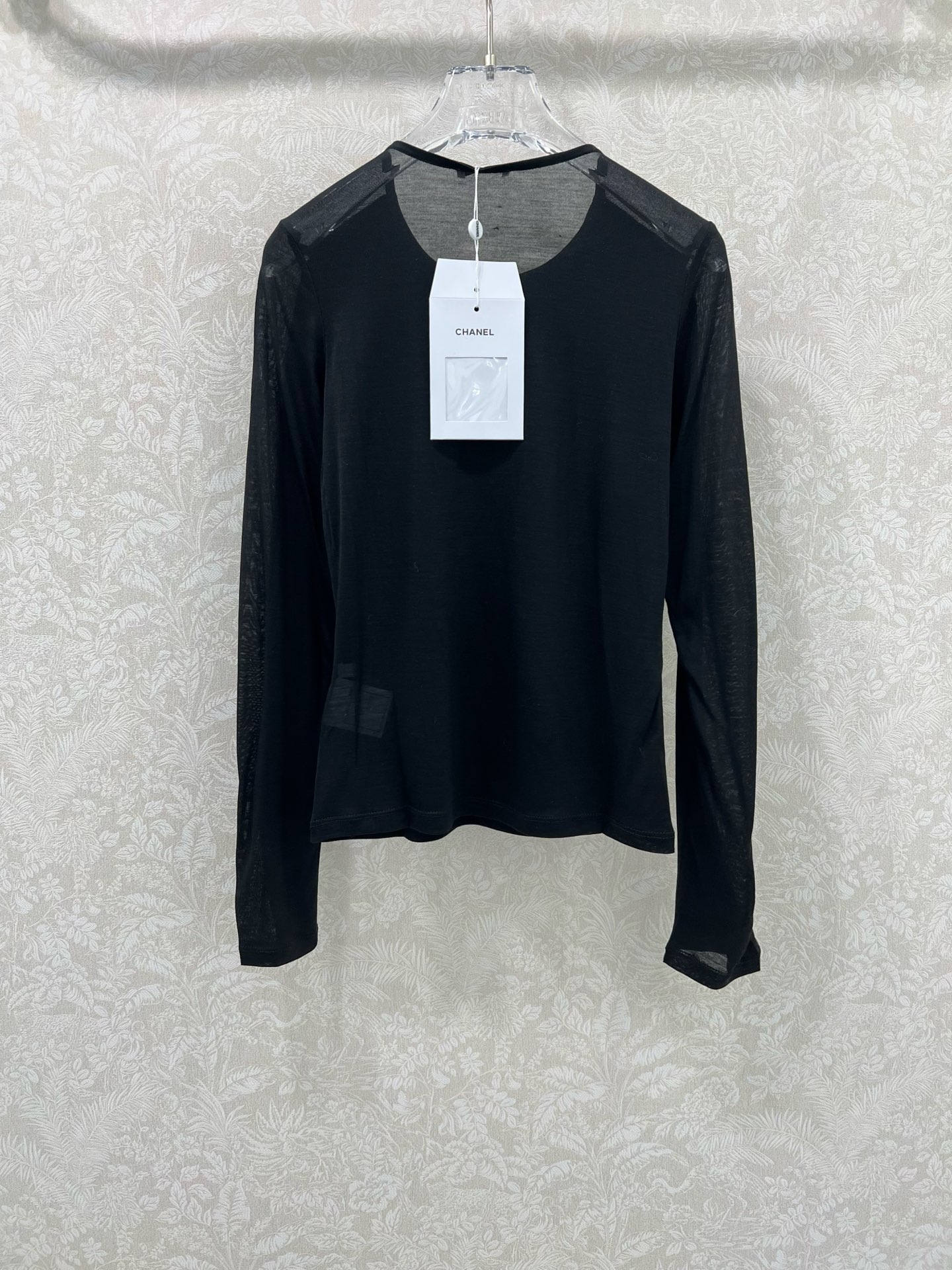 This Chanel long-sleeve top offers a perfect blend of style and comfort, ideal for creating a chic and sophisticated look.